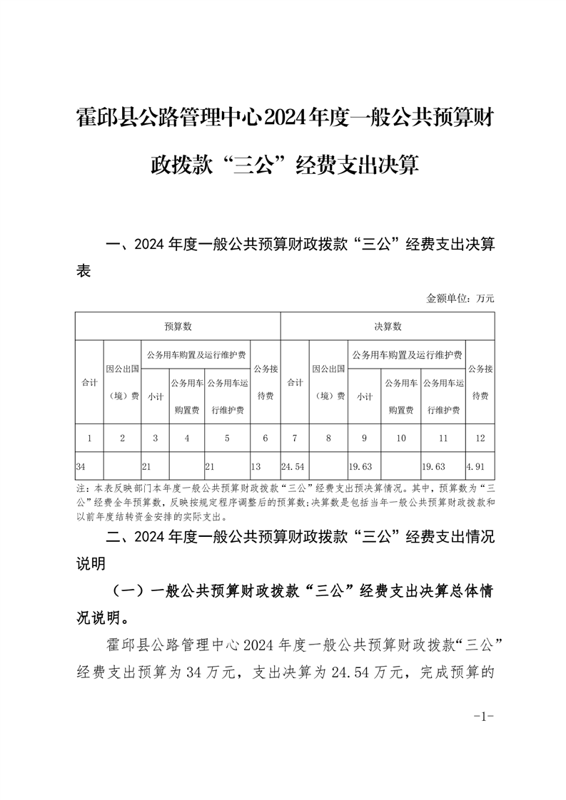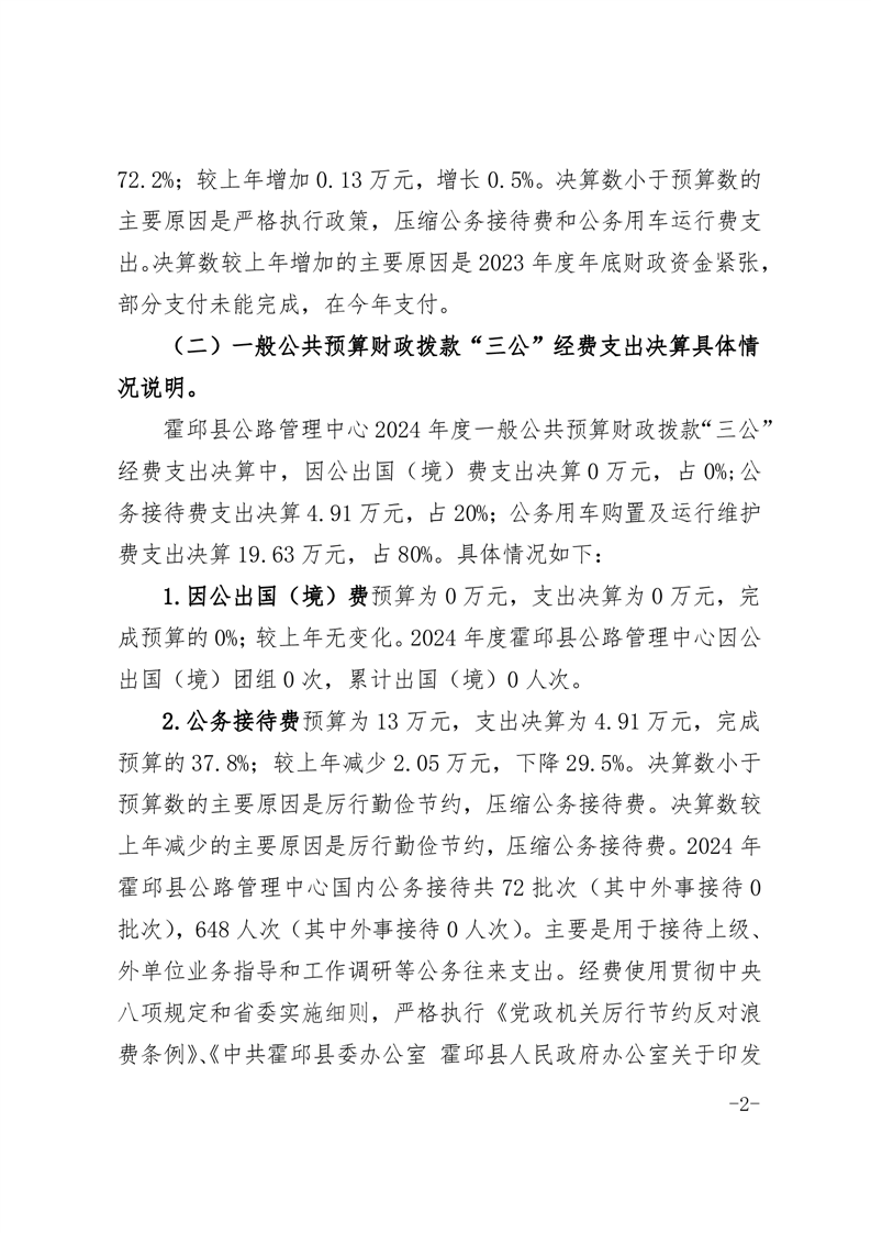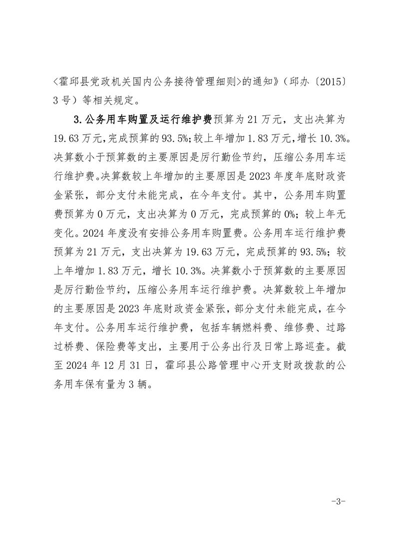 霍邱县公路管理中心2024年度一般公共预算财政拨款“三公”经费支出决算