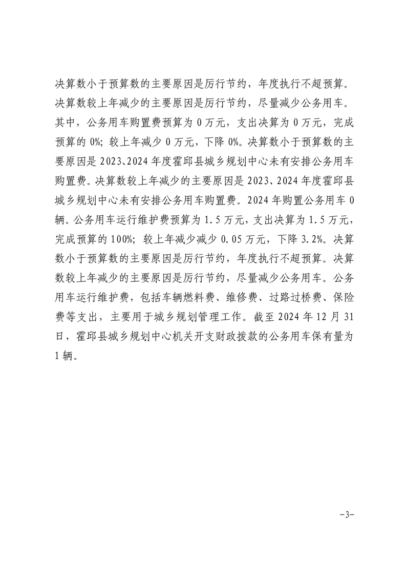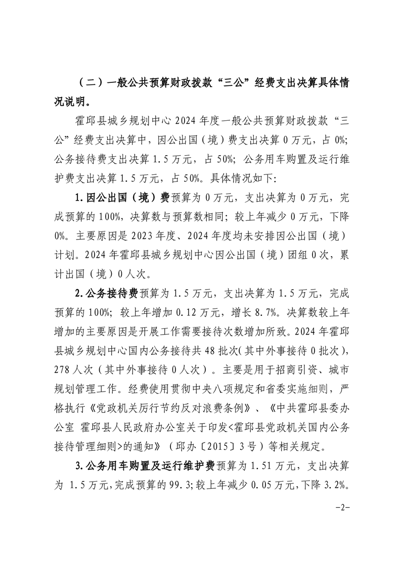 霍邱县城乡规划中心2024年三公经费决算公开