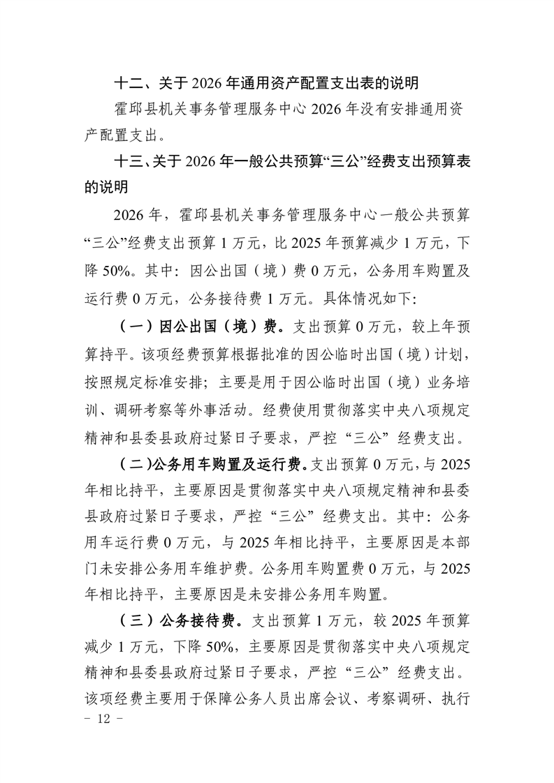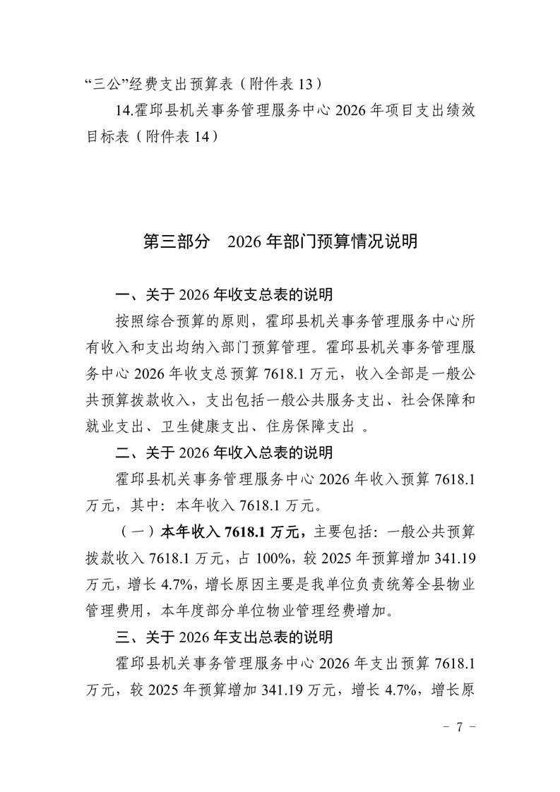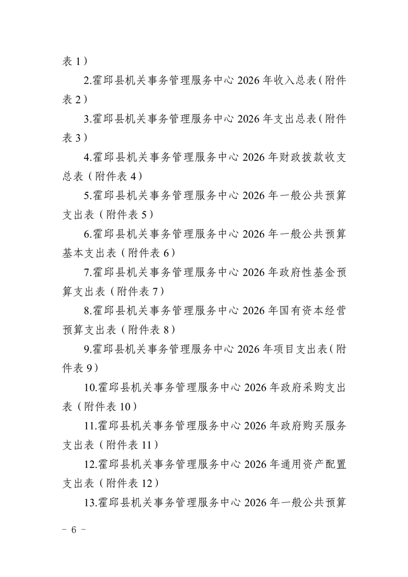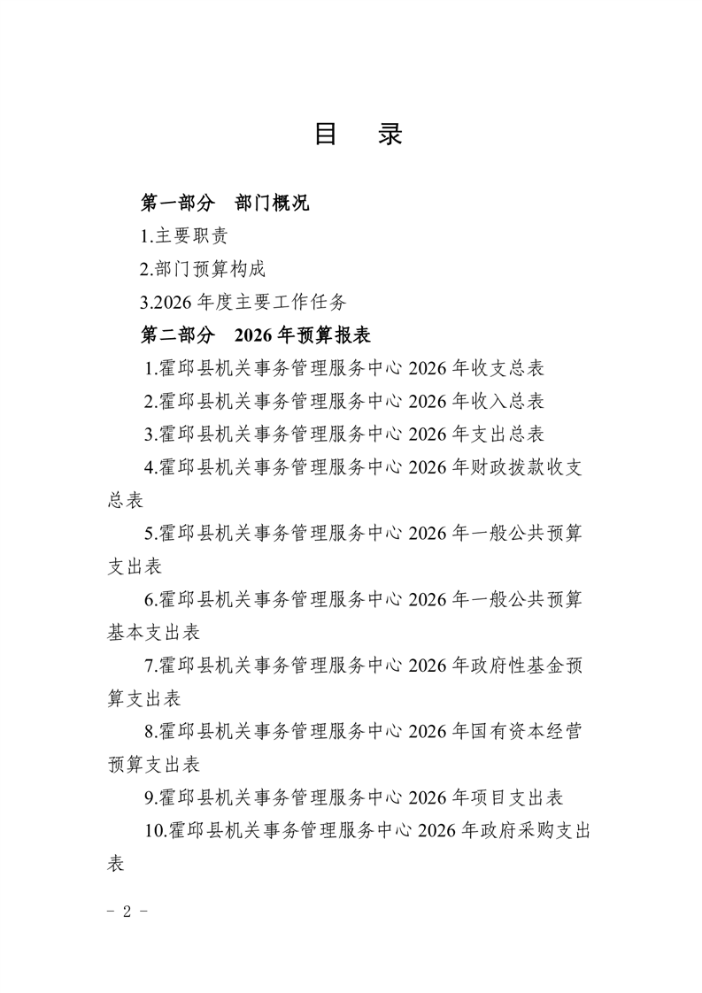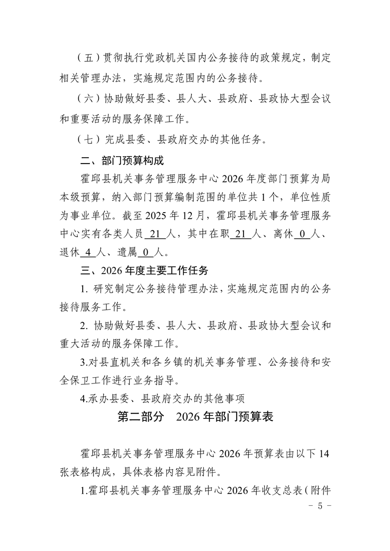 霍邱县机关事务管理服务中心2026年部门预算公开