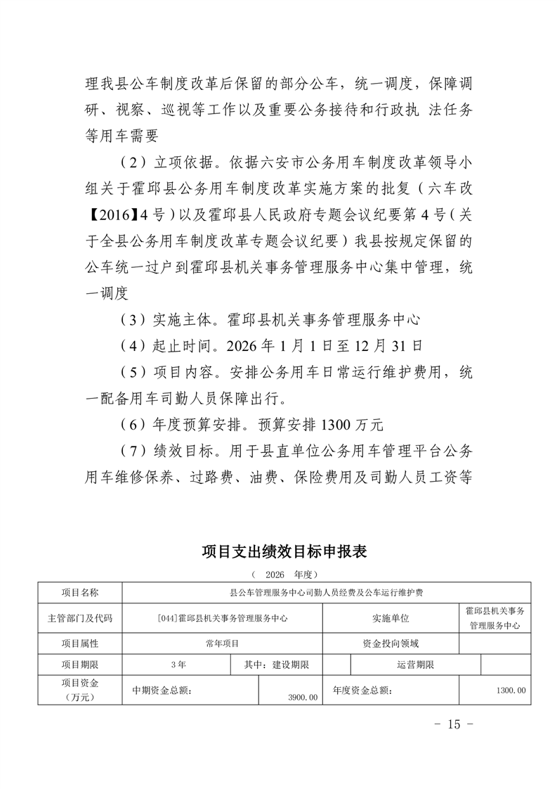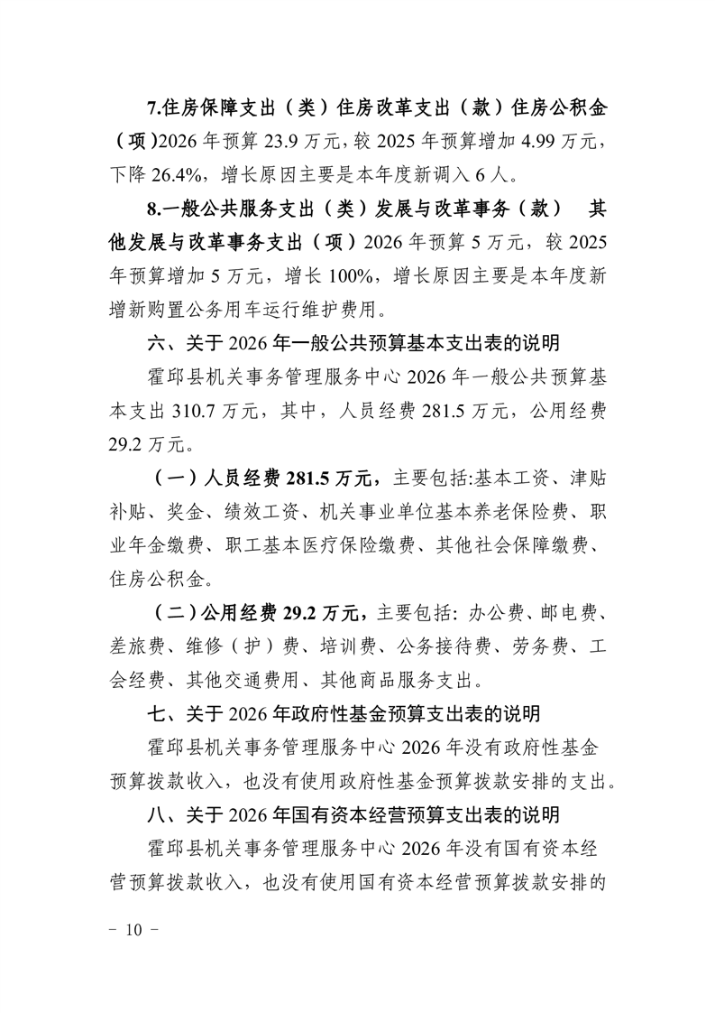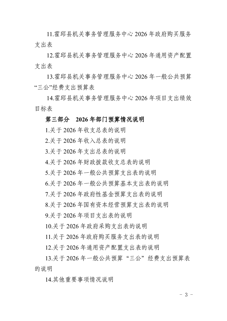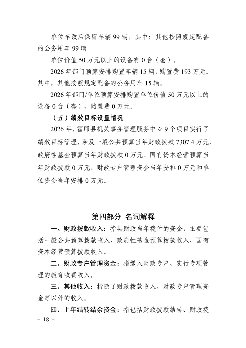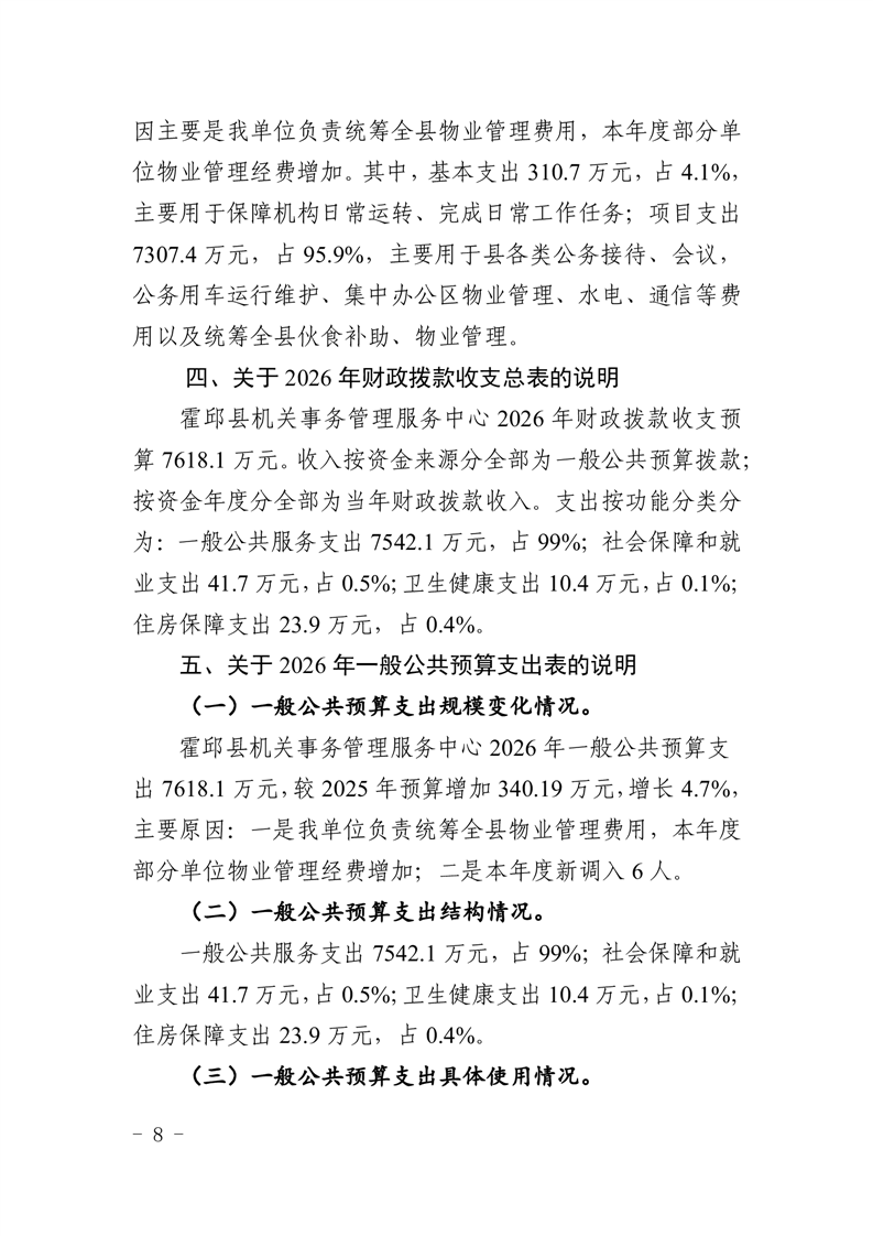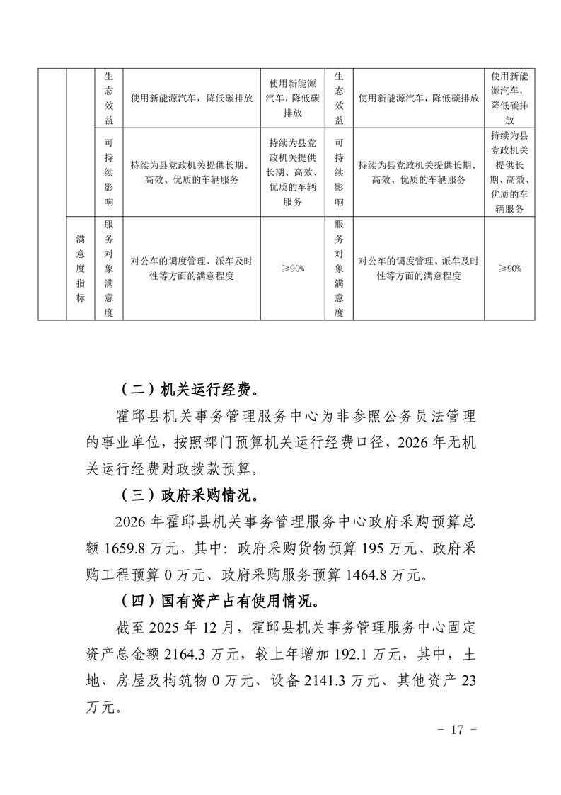 霍邱县机关事务管理服务中心2026年部门预算公开