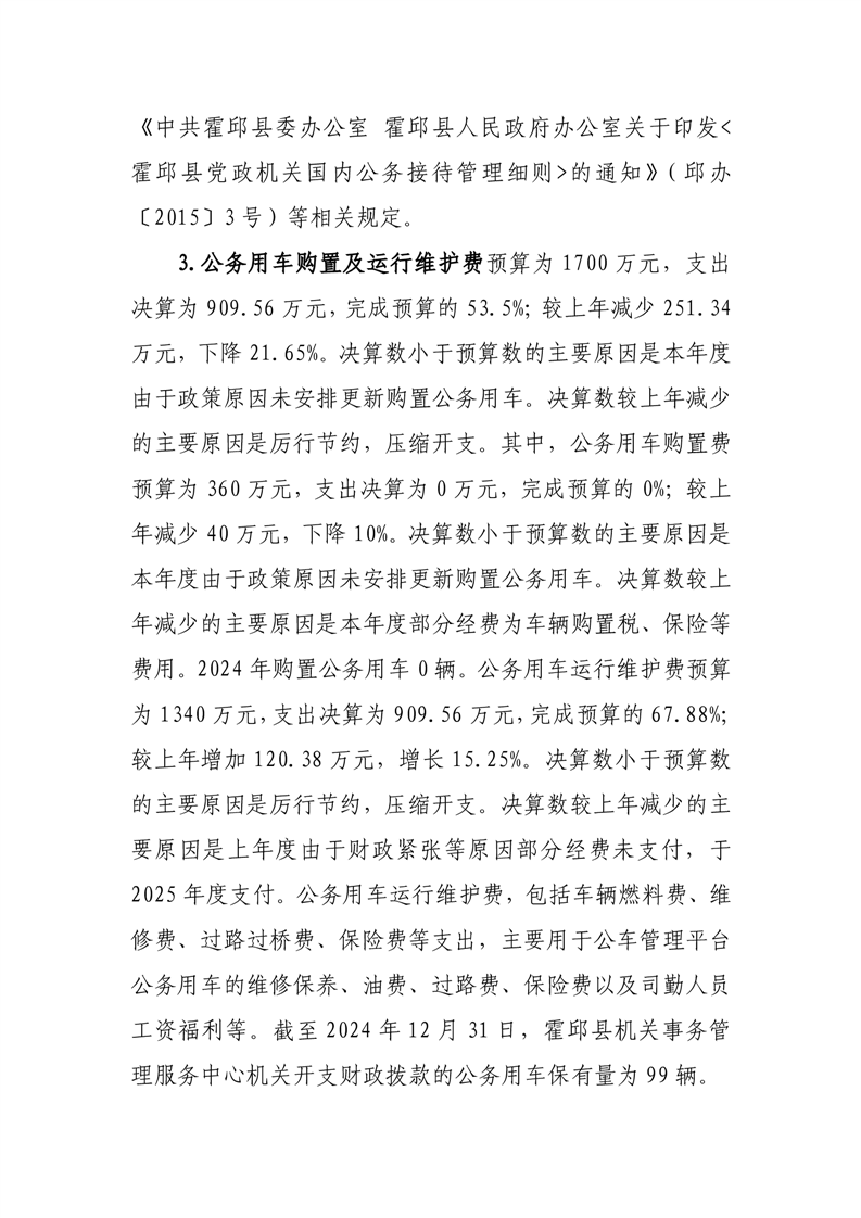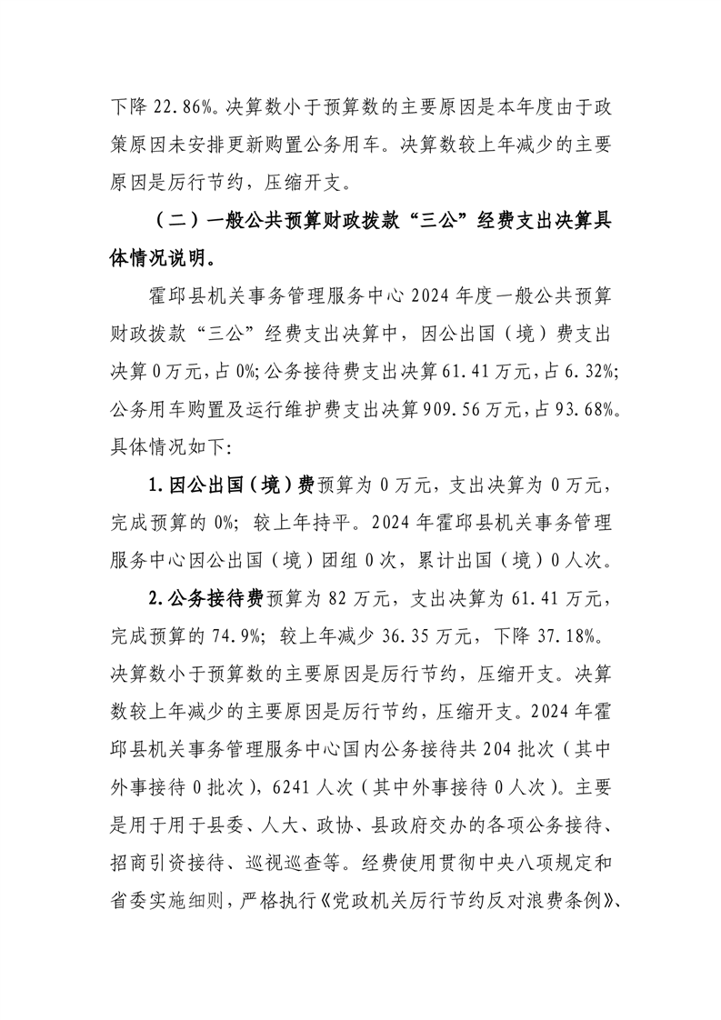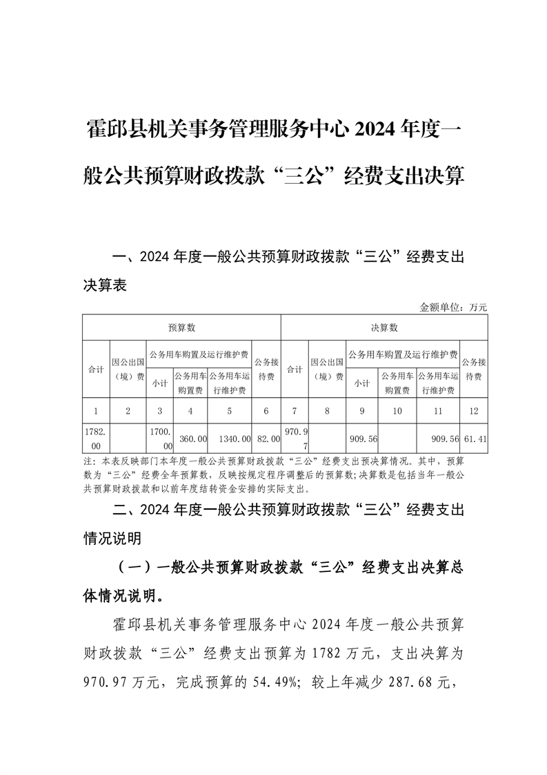 霍邱县机关事务管理服务中心2024年度一般公共预算财政拨款“三公”经费支出决算