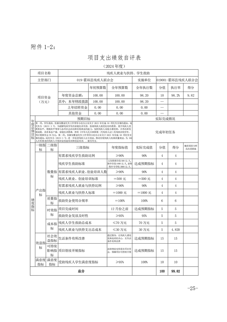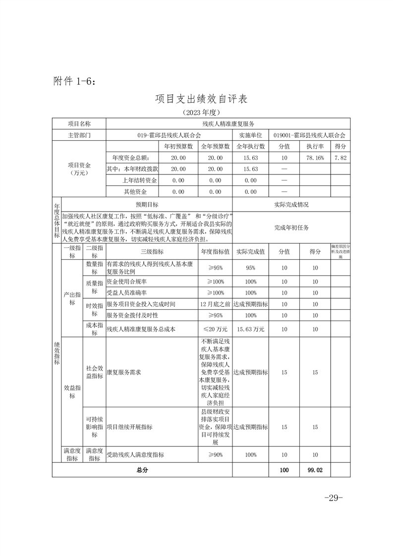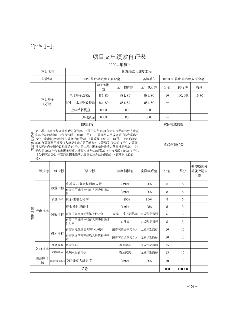 2024年度困难残疾人康复工程项目绩效评价报告(含各项目支出绩效自评表)