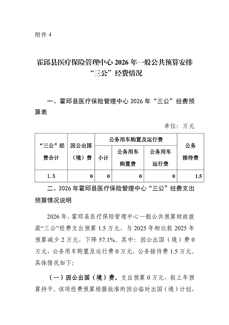 霍邱县医疗保险管理中心2026年一般公共预算安排“三公”经费情况
