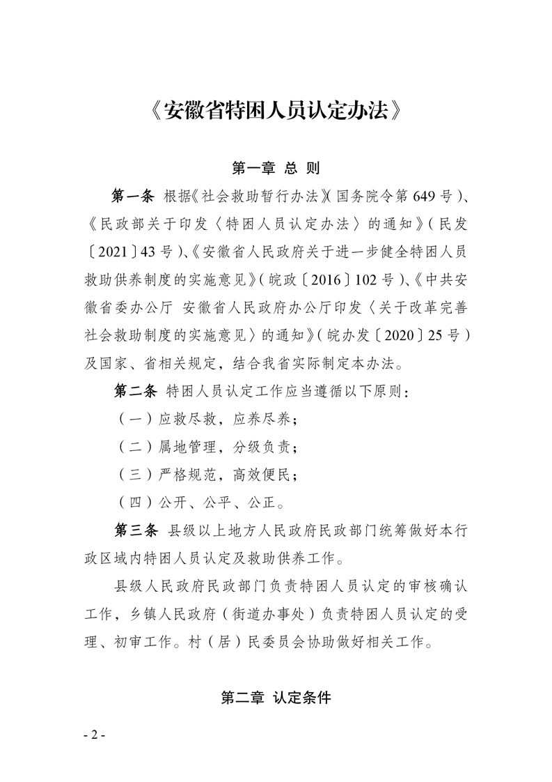 【政策法规】《安徽省特困人员认定办法》 (皖民社救字〔2021〕74号)(新增)