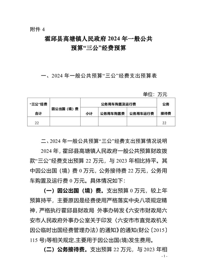 2024年高塘镇人民政府部门一般公共预算安排“三公”经费情况公开