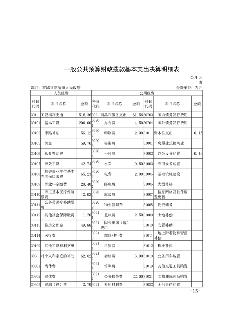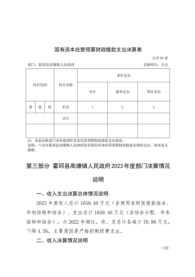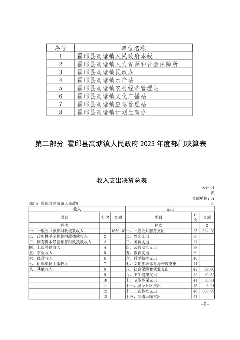 霍邱县高塘镇人民政府2023年度部门决算公开