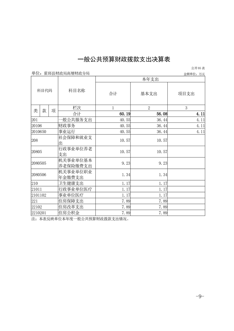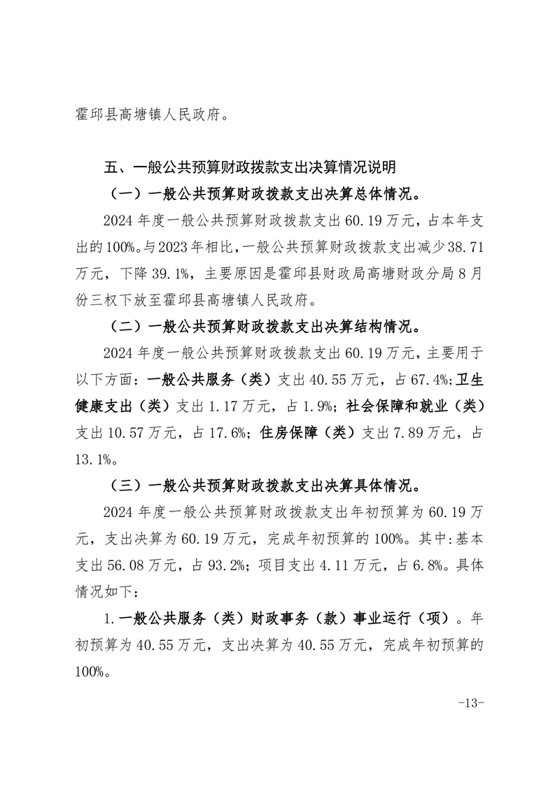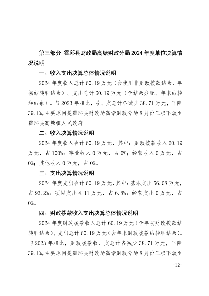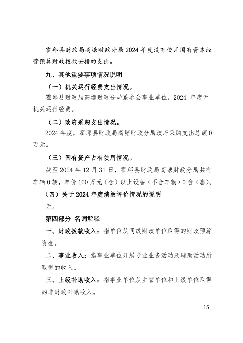 霍邱县财政局高塘财政分局2024年度决算公开