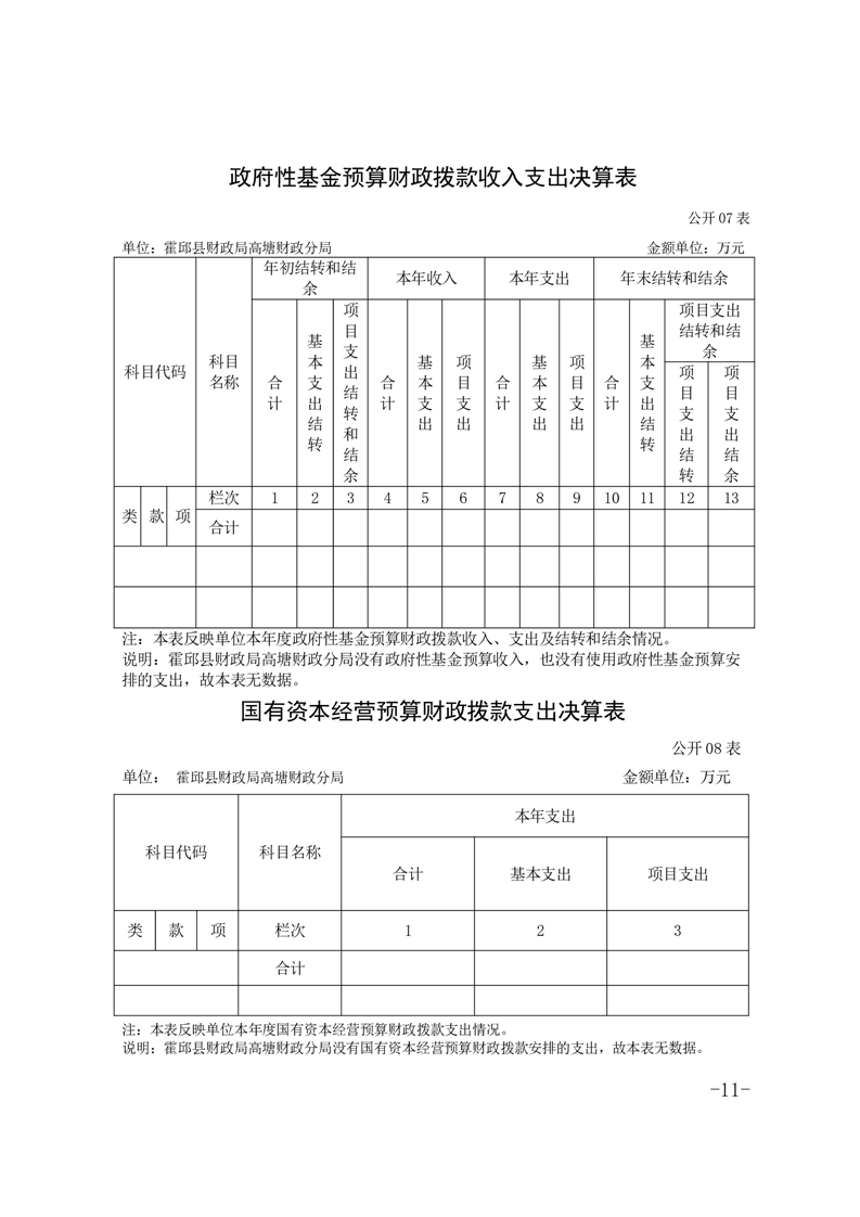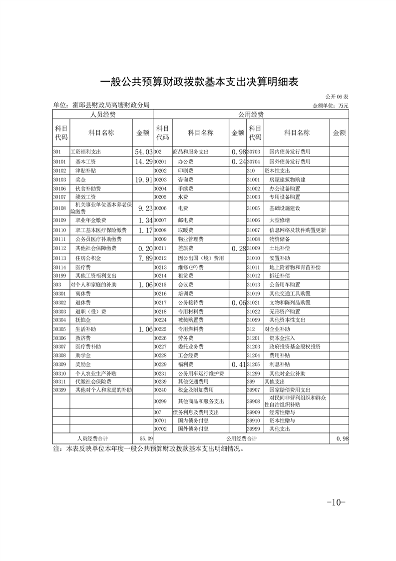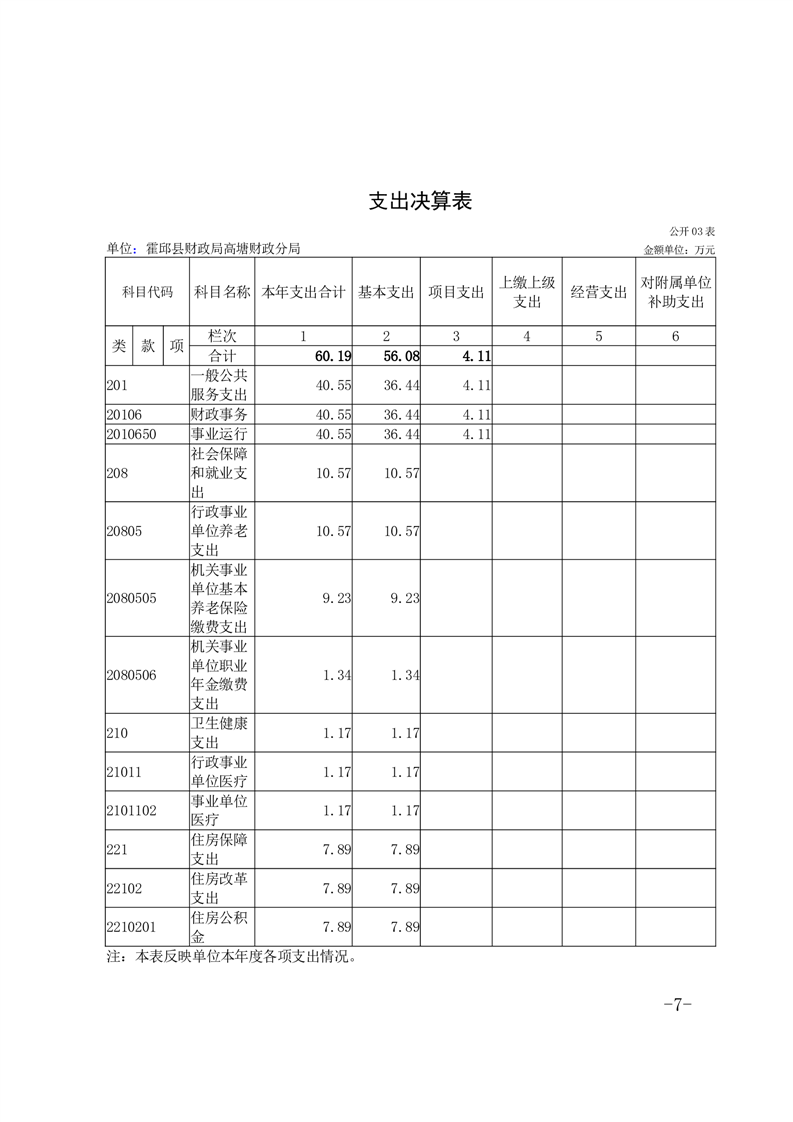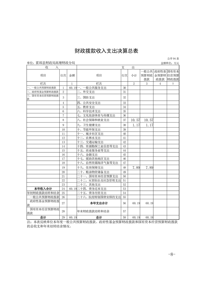 霍邱县财政局高塘财政分局2024年度决算公开