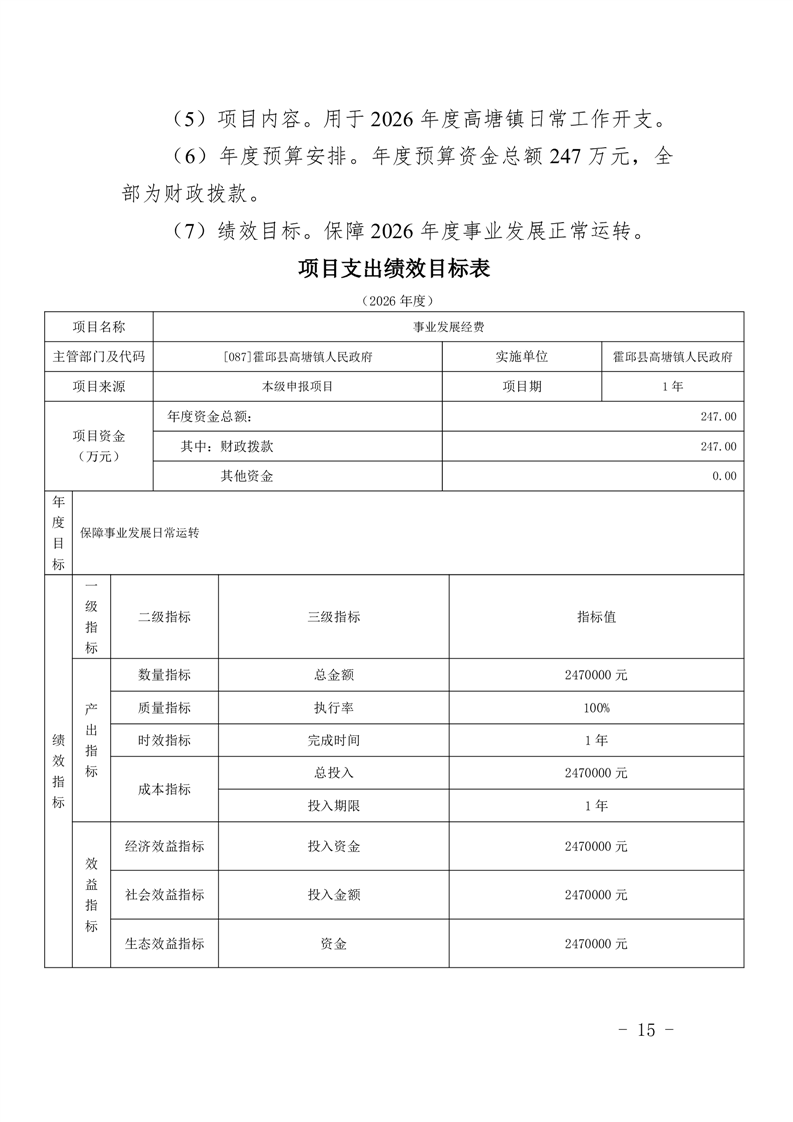 霍邱县高塘镇人民政府2026年部门项目支出绩效目标公开.pdf