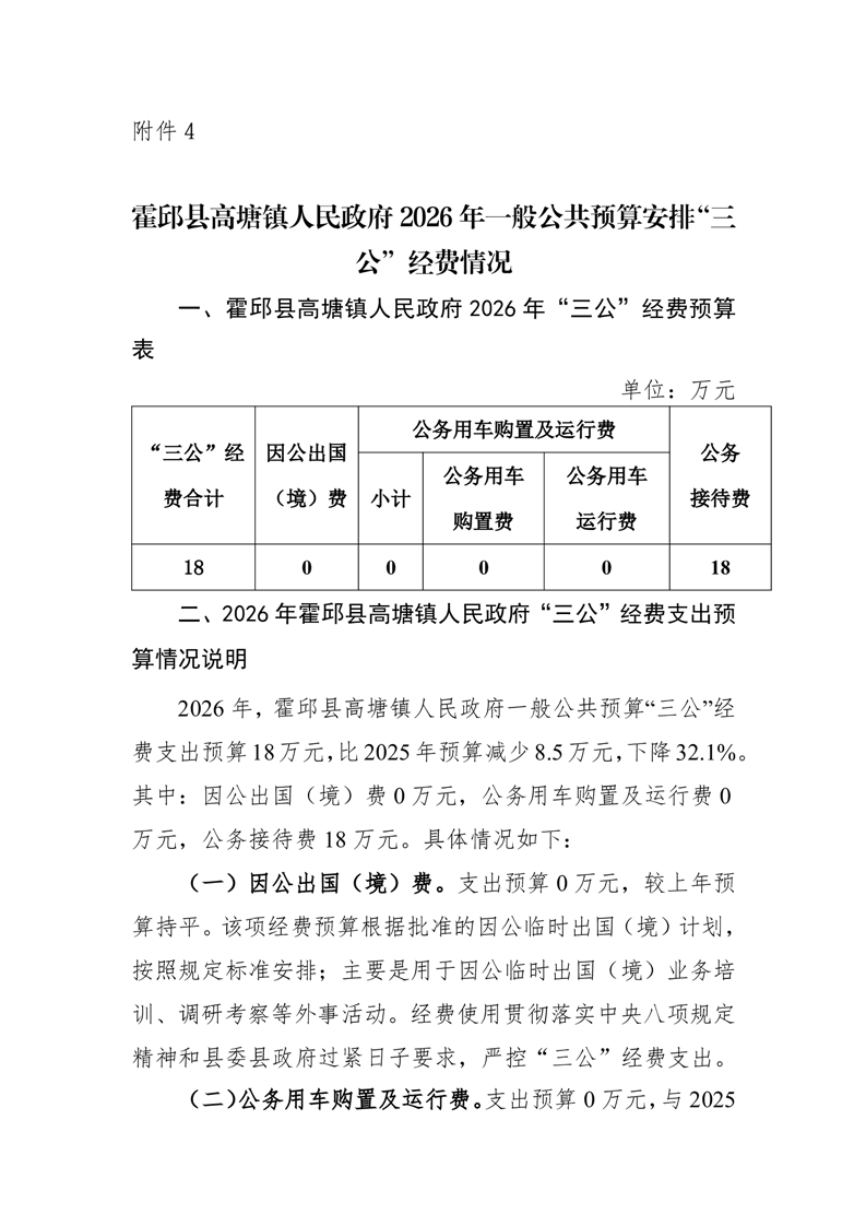 霍邱县高塘镇人民政府2026年部门一般公共预算安排“三公”经费情况公开.pdf