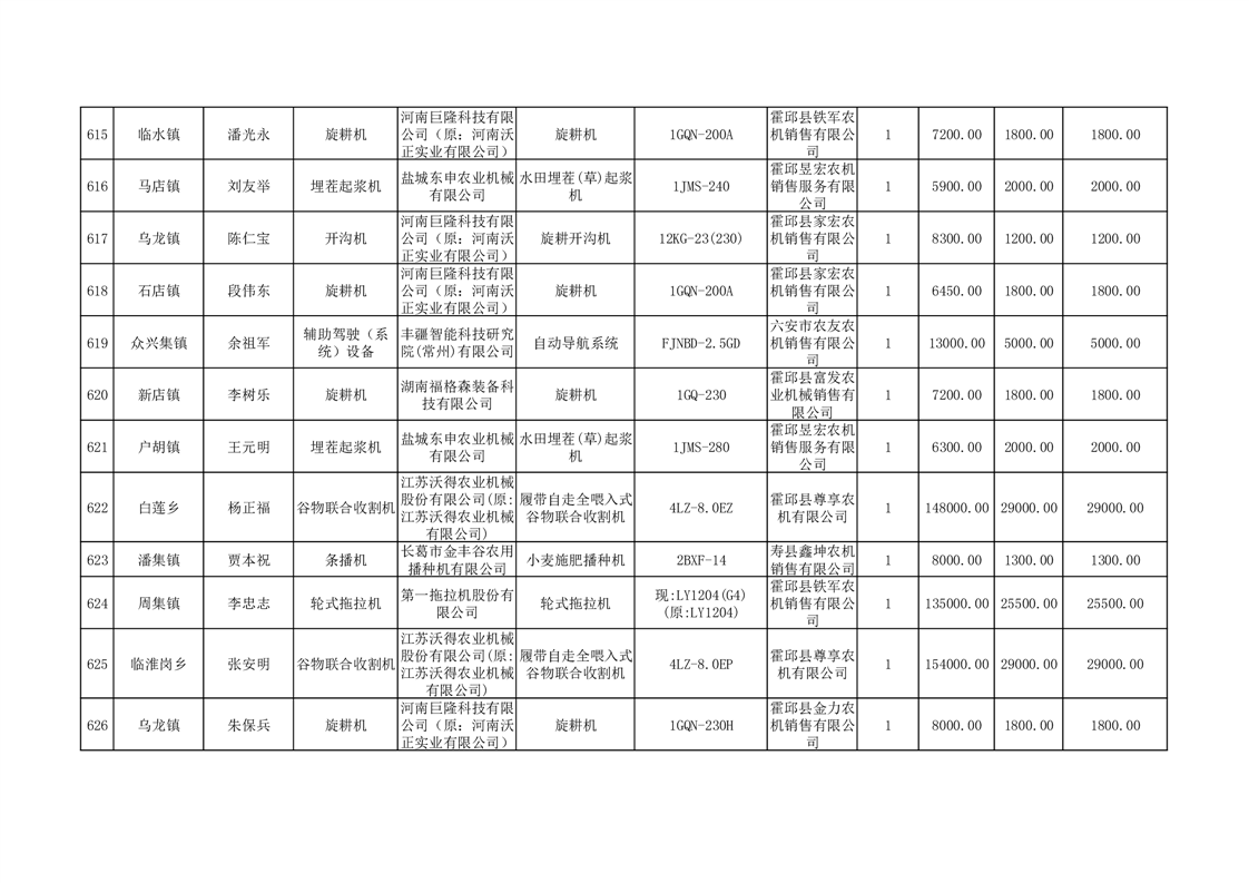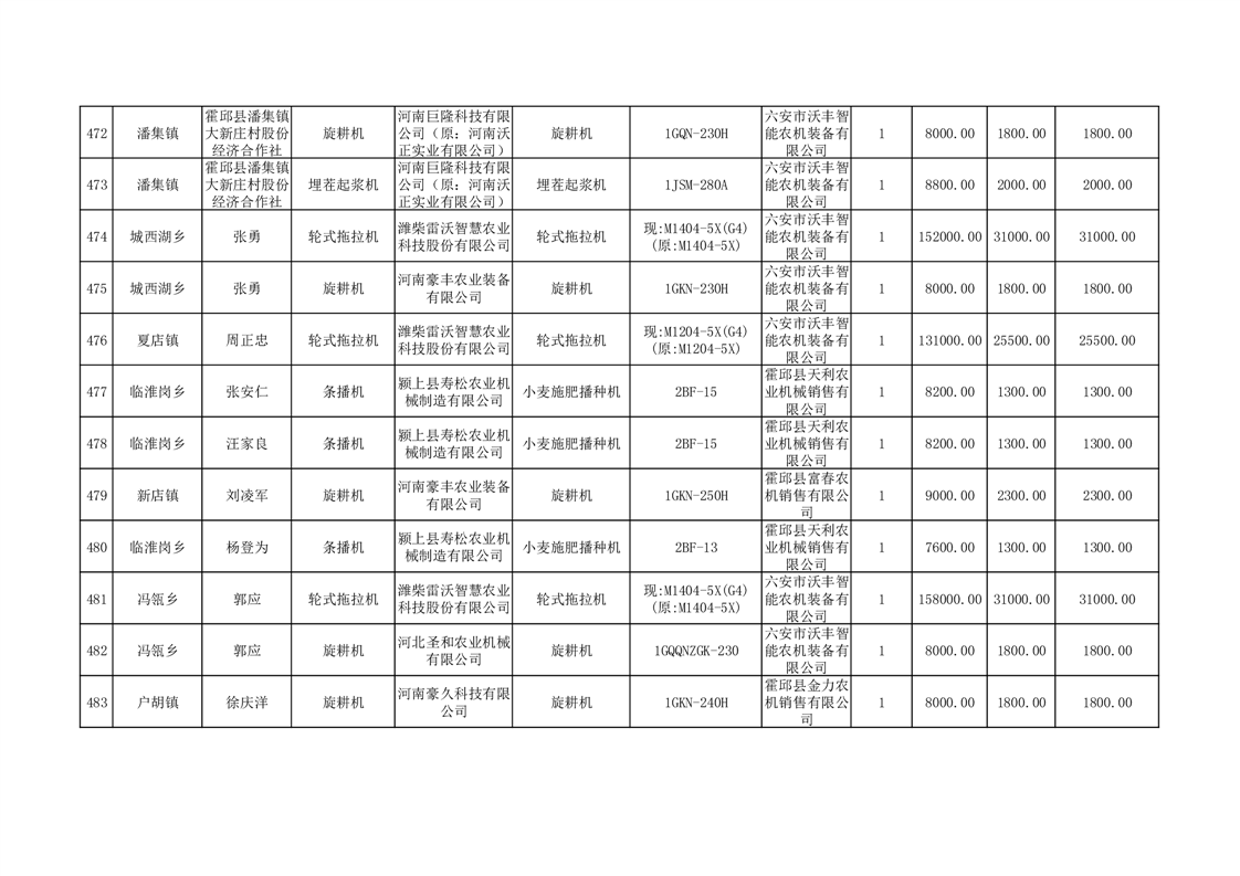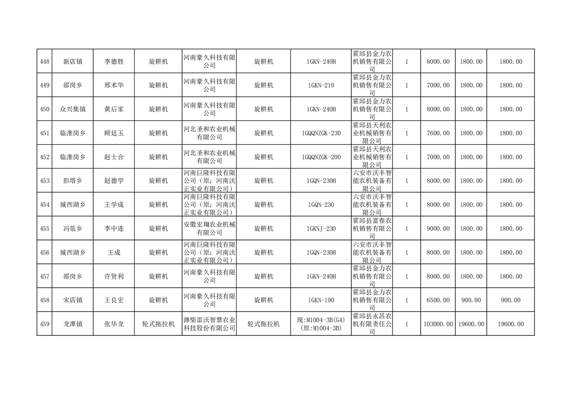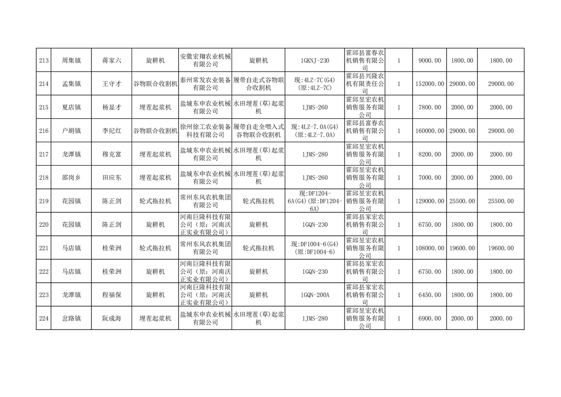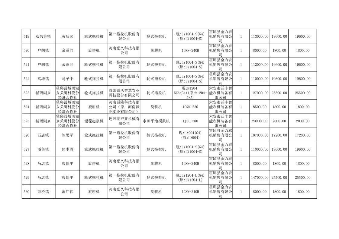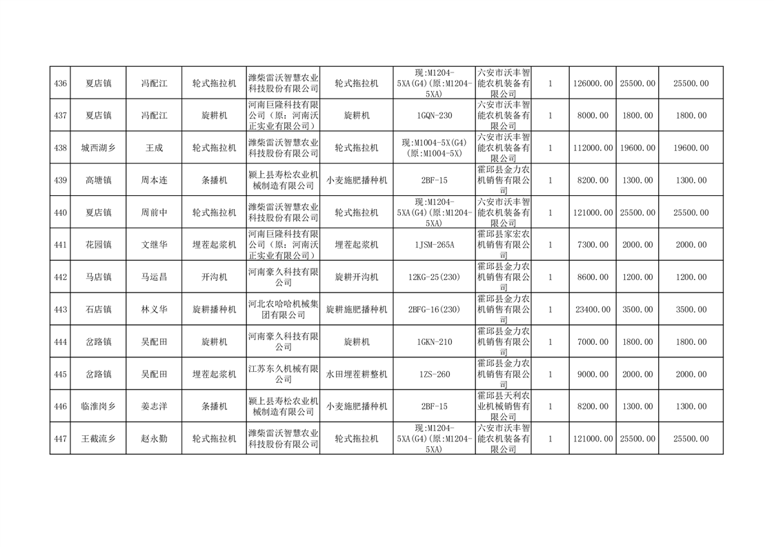 【补贴结果】霍邱县众兴集镇2024年第三批享受农机购置与应用补贴的购机者信息表