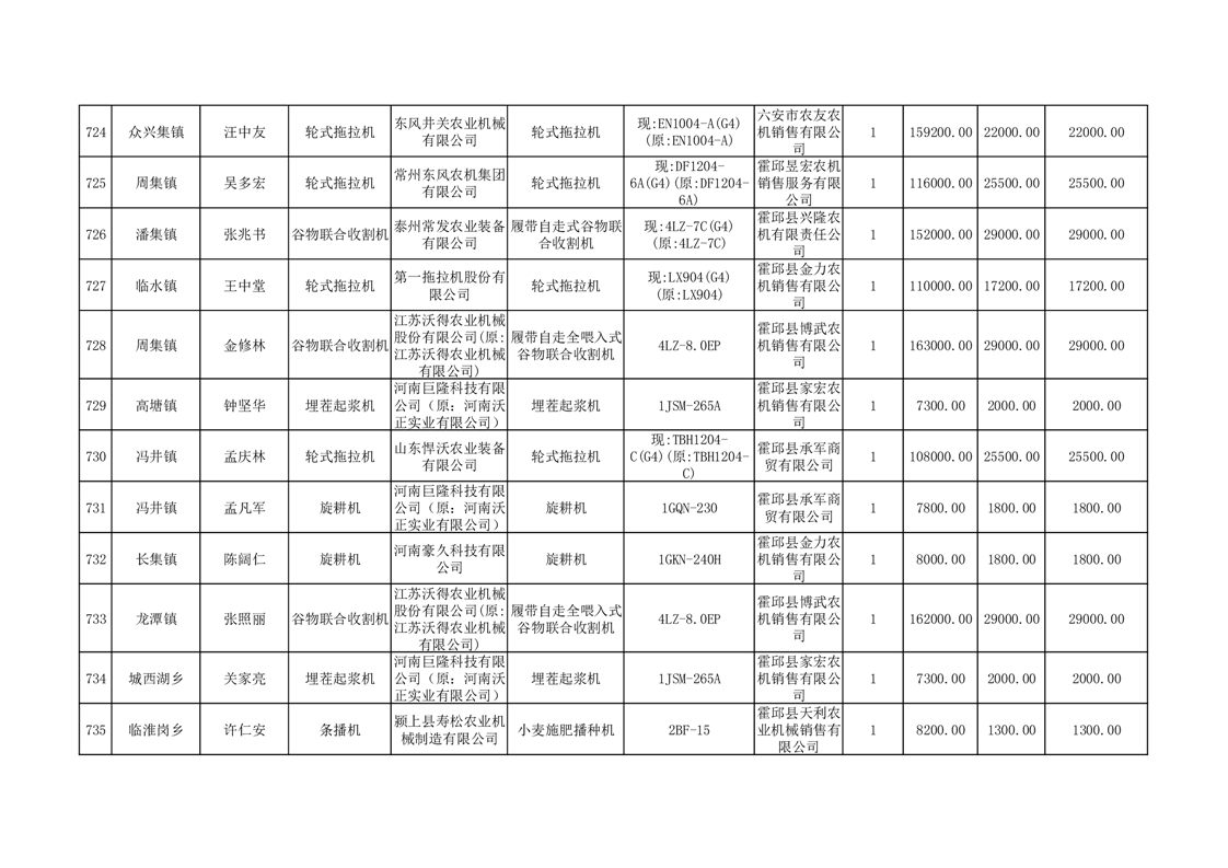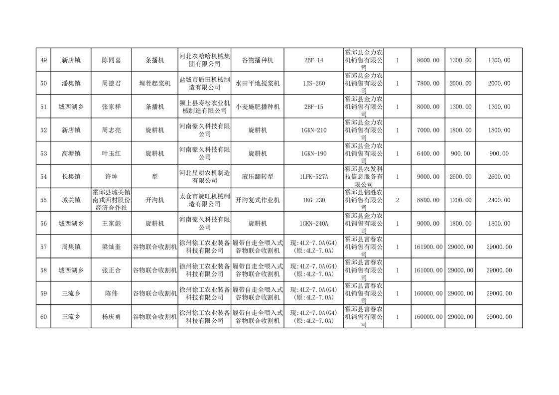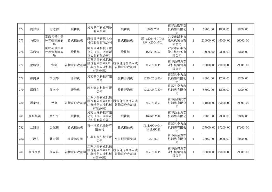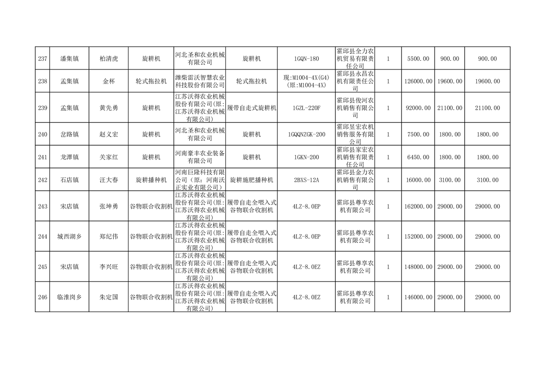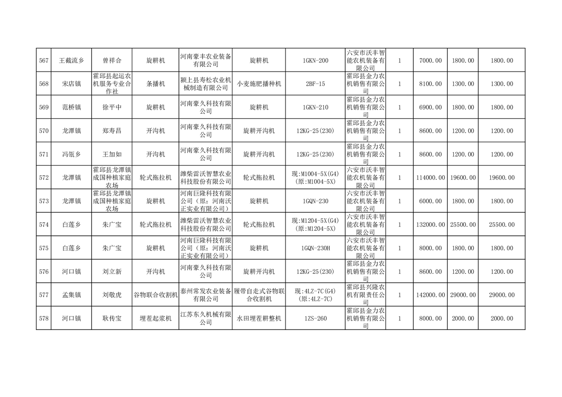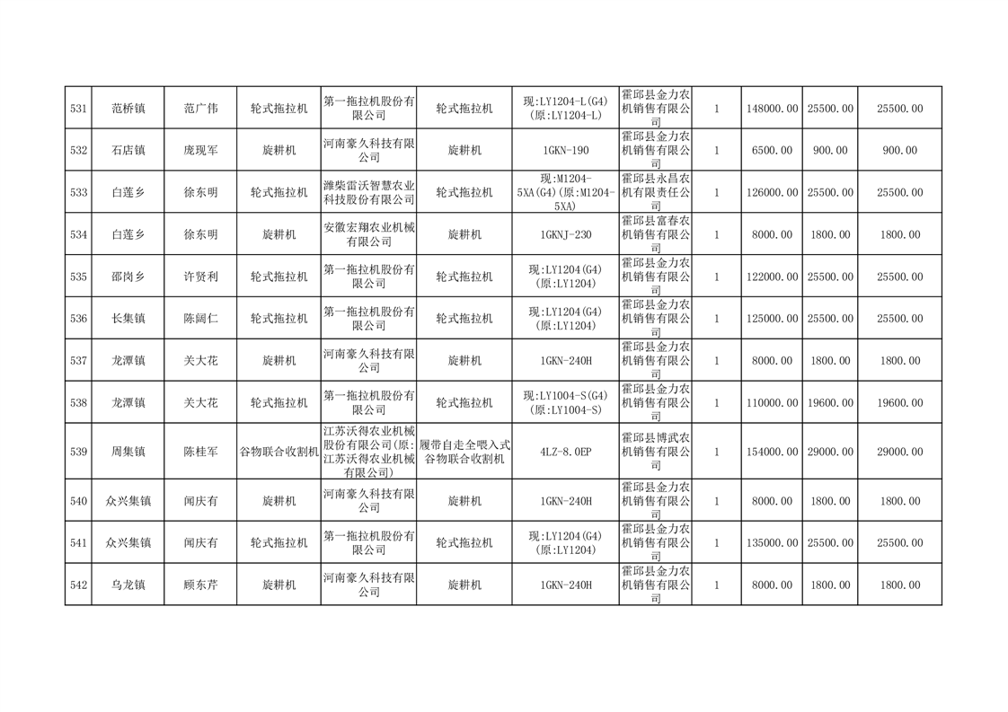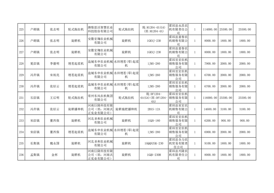 【补贴结果】霍邱县众兴集镇2024年第三批享受农机购置与应用补贴的购机者信息表