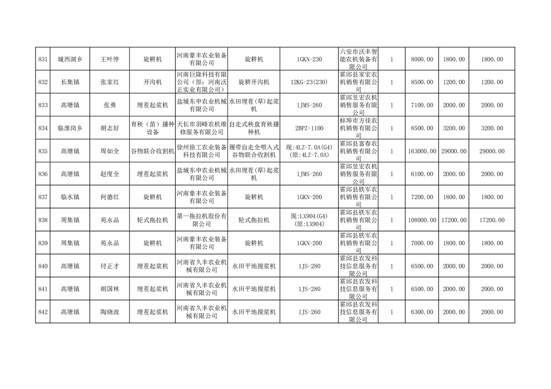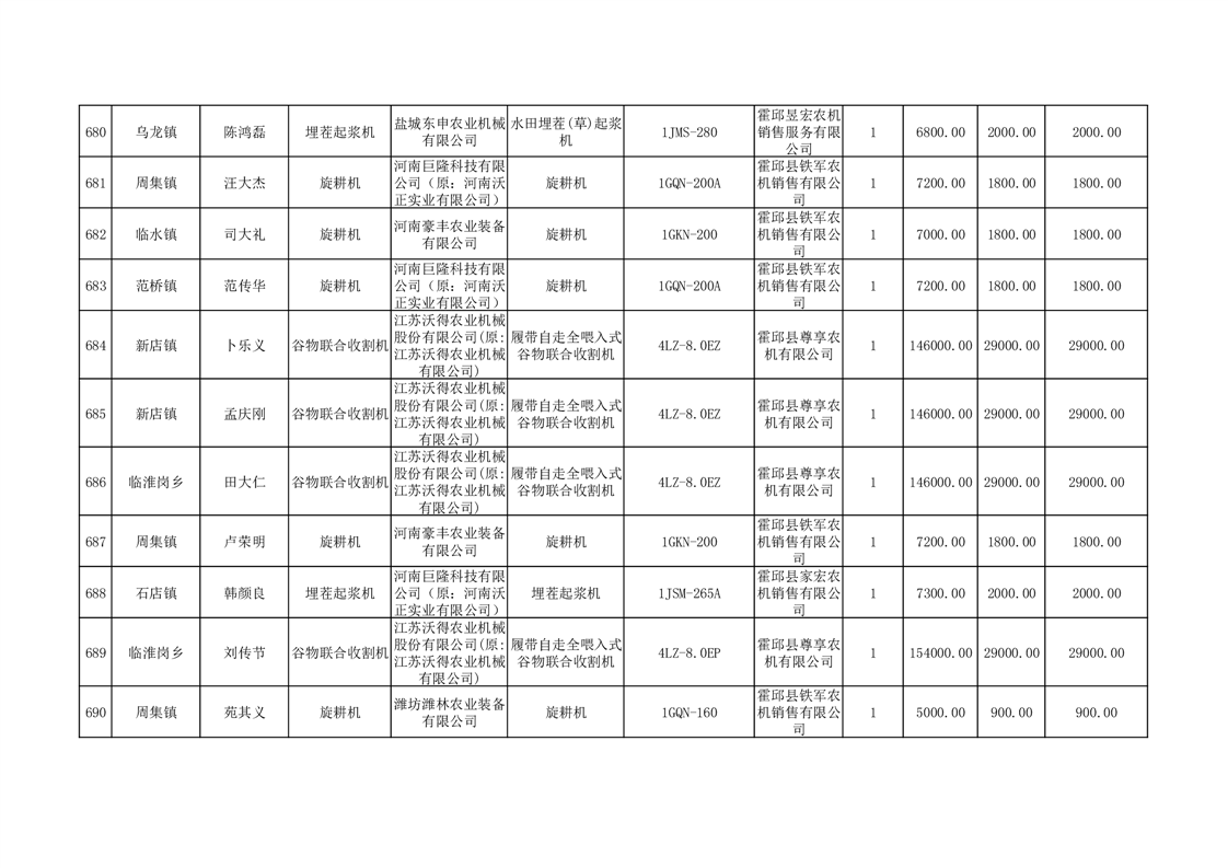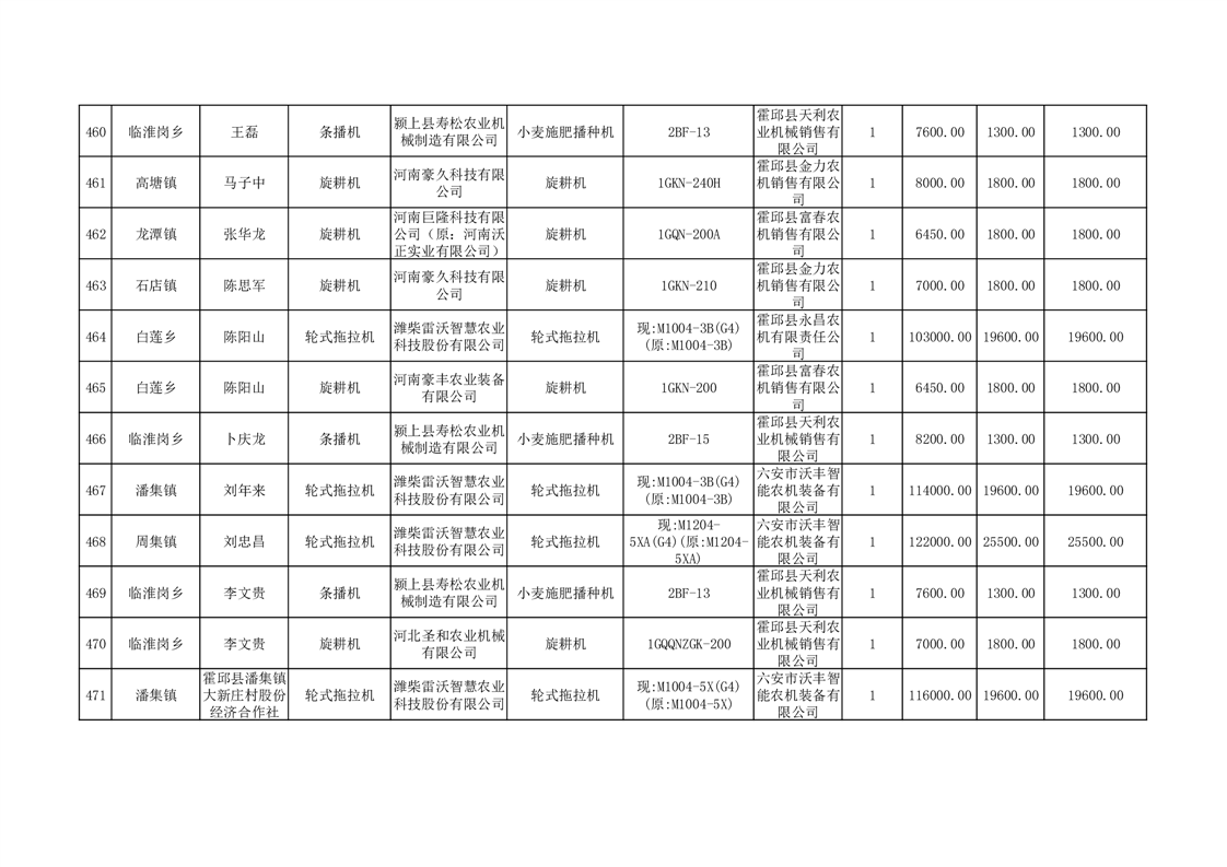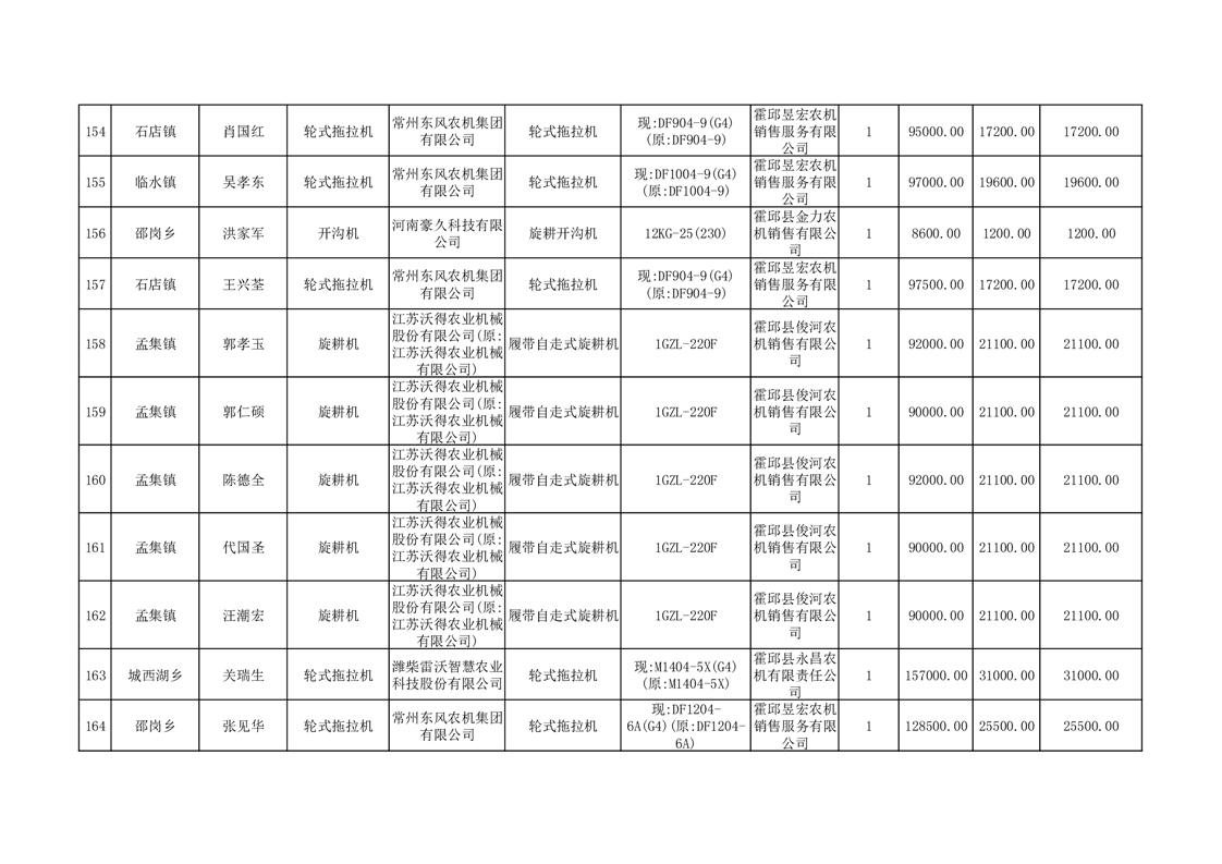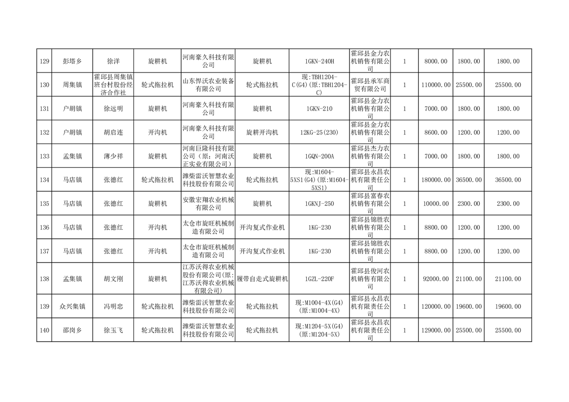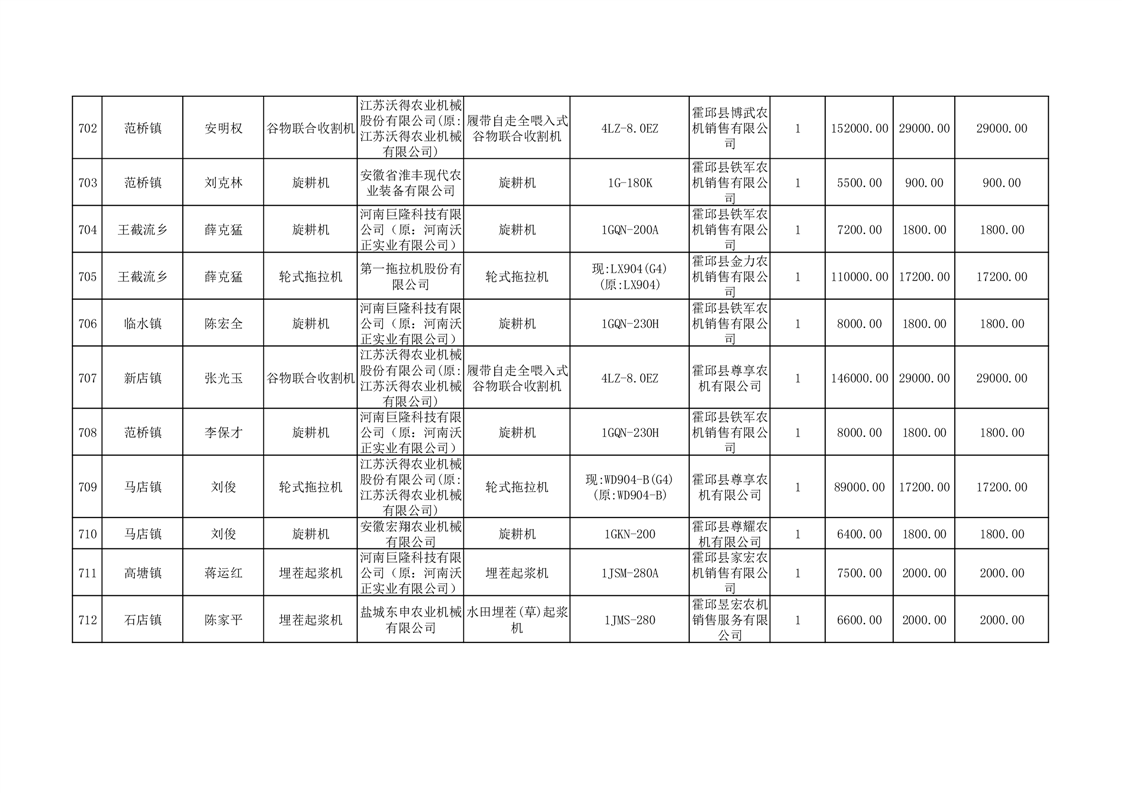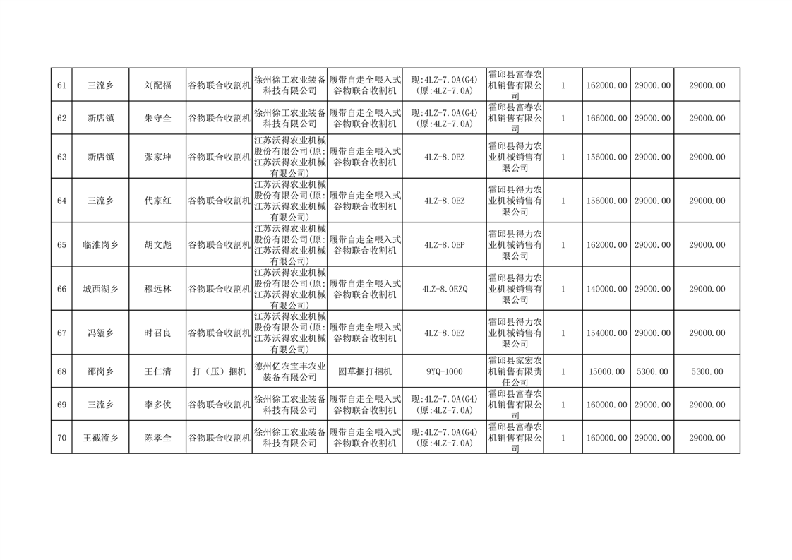 【补贴结果】霍邱县众兴集镇2024年第三批享受农机购置与应用补贴的购机者信息表