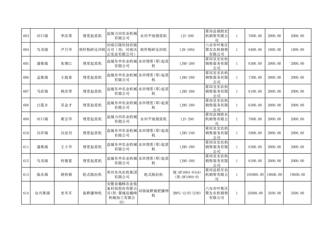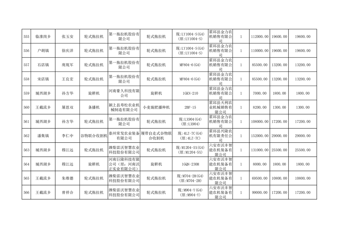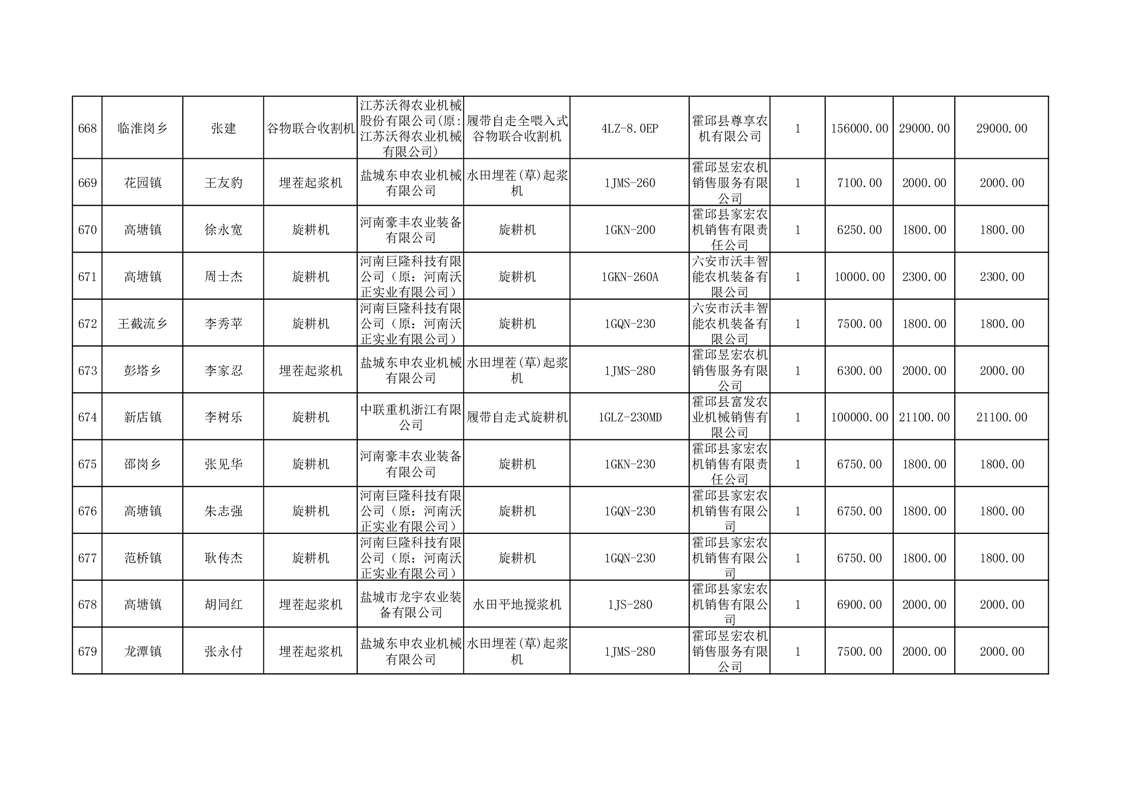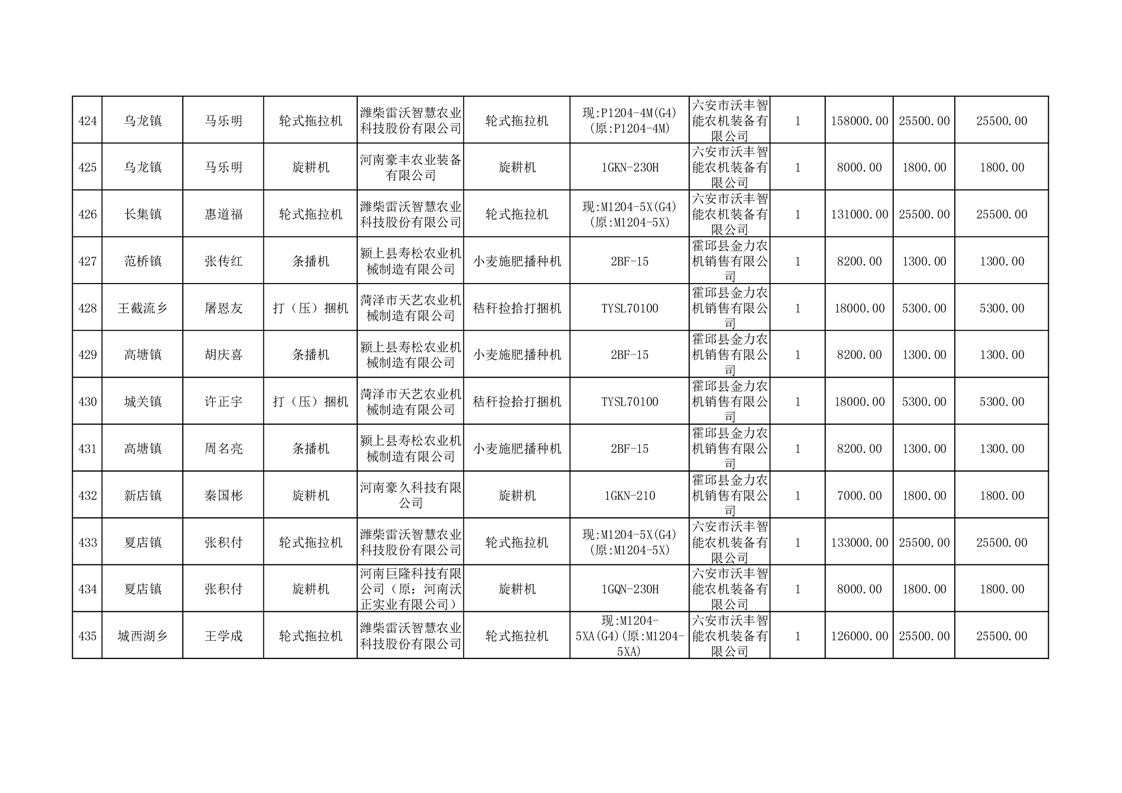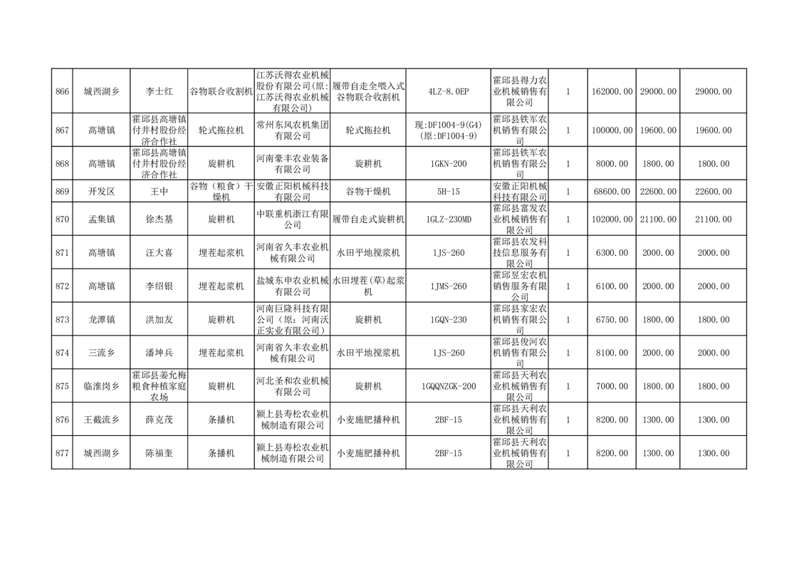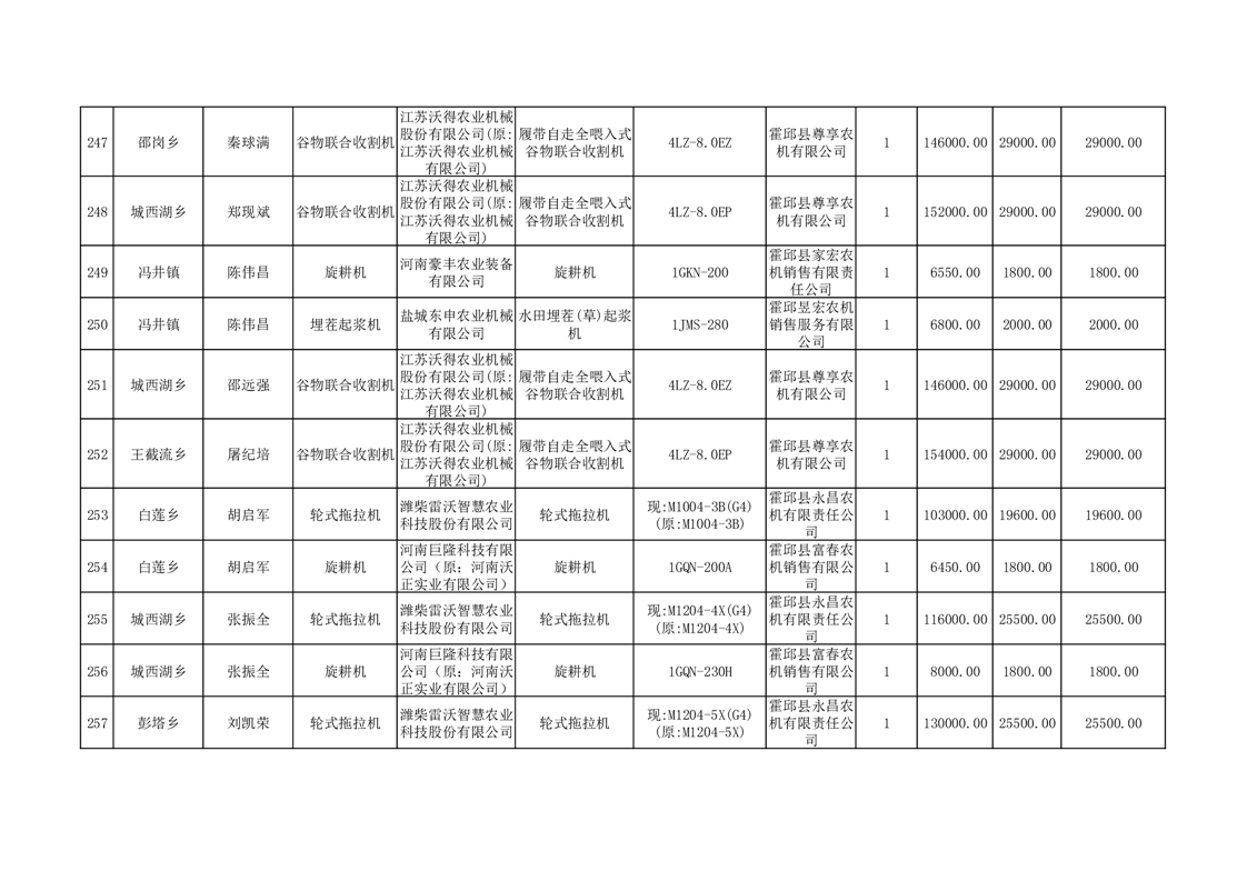 【补贴结果】霍邱县众兴集镇2024年第三批享受农机购置与应用补贴的购机者信息表