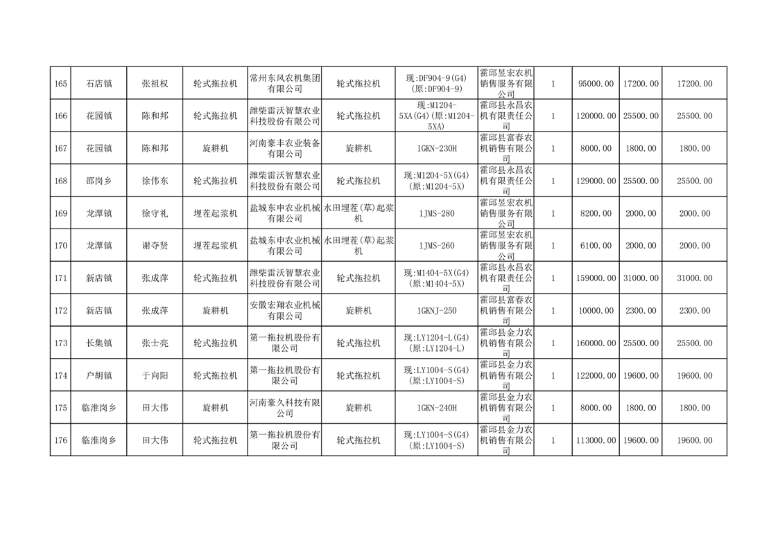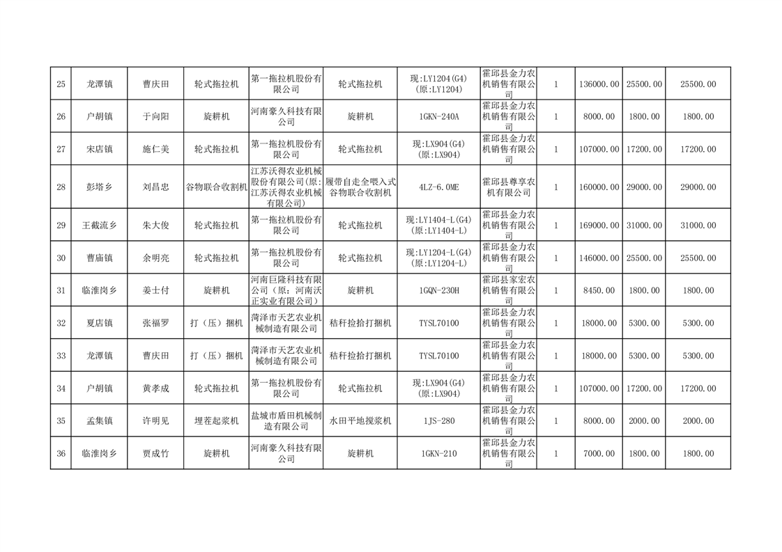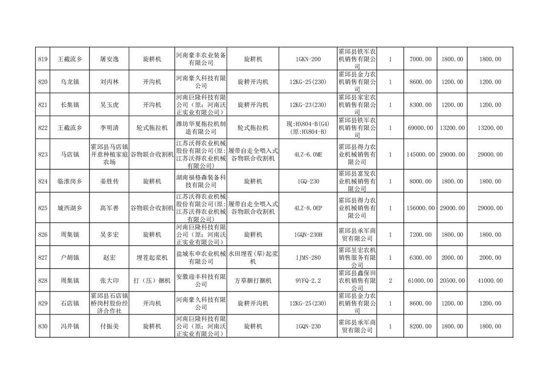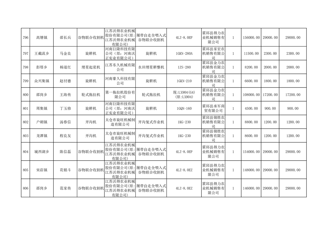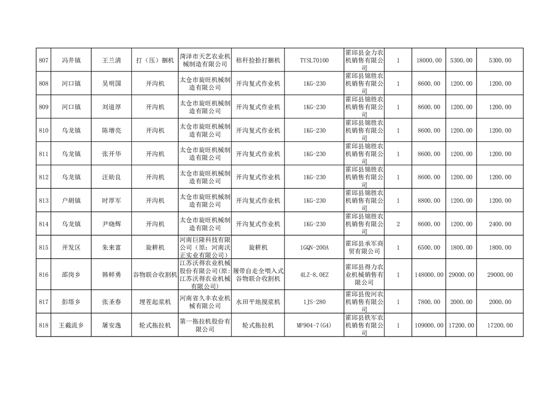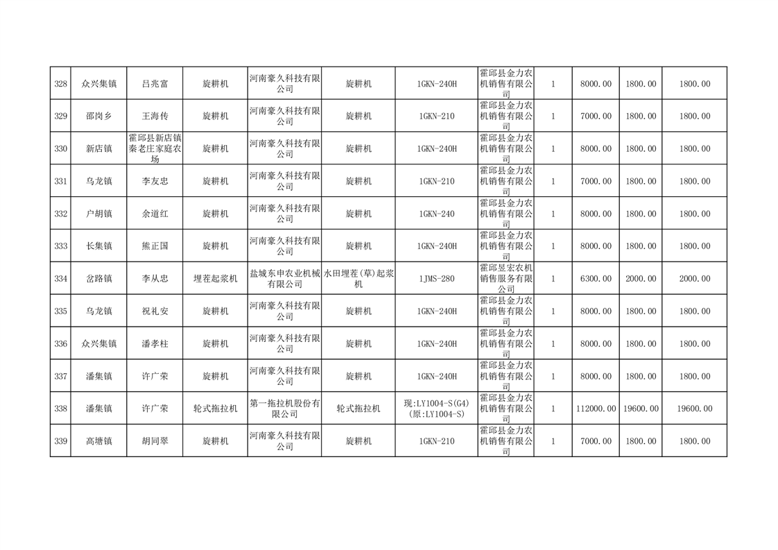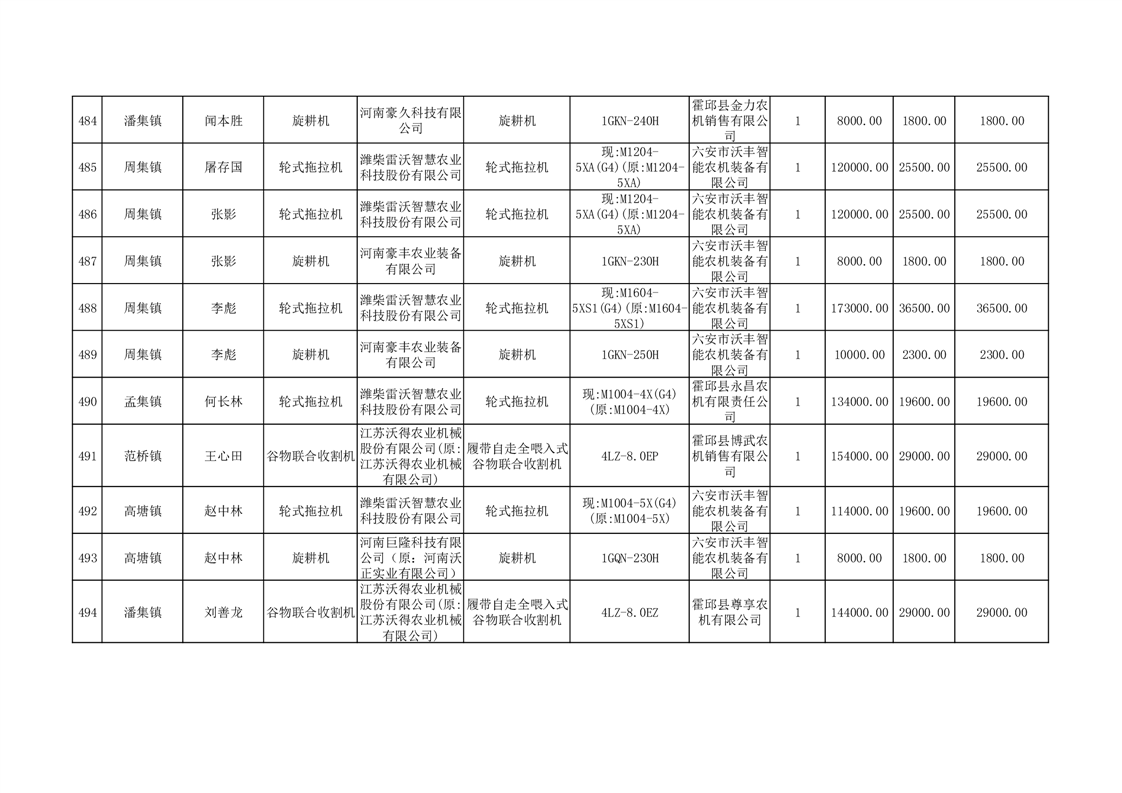 【补贴结果】霍邱县众兴集镇2024年第三批享受农机购置与应用补贴的购机者信息表