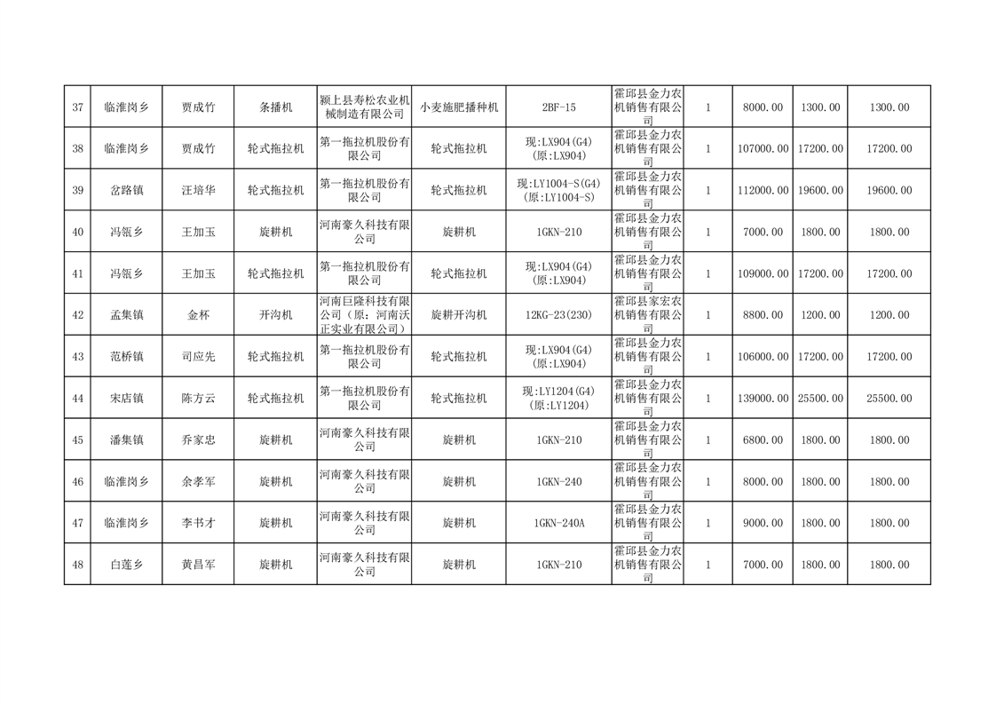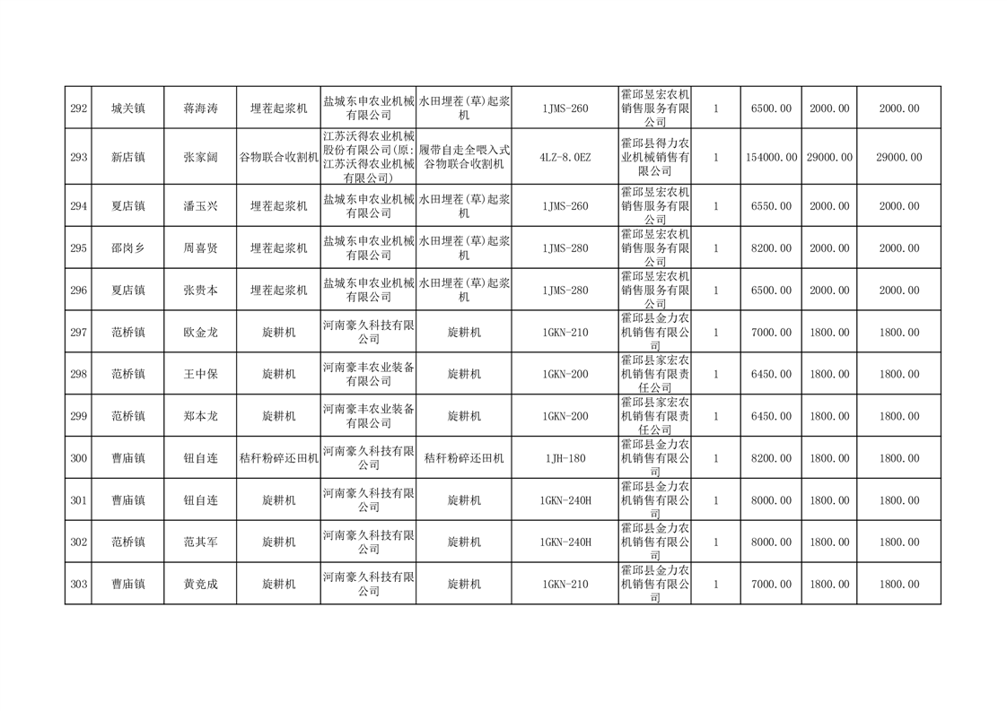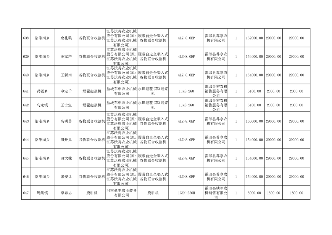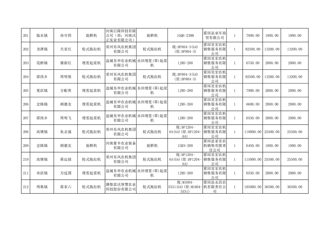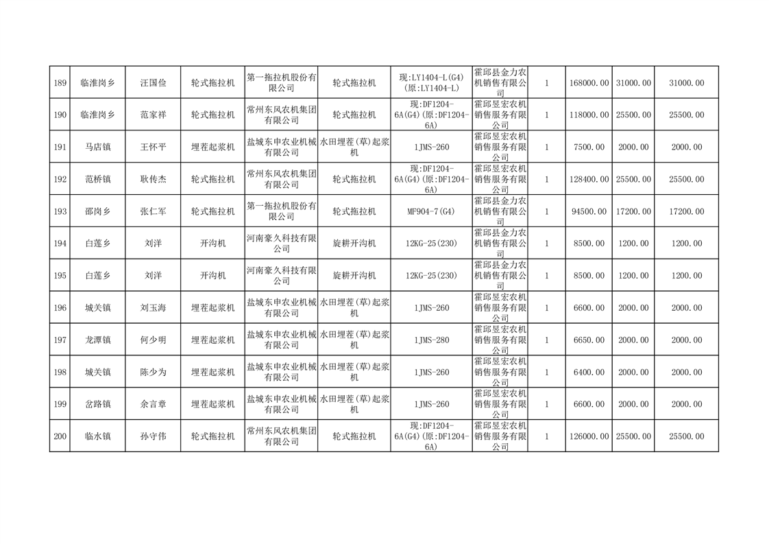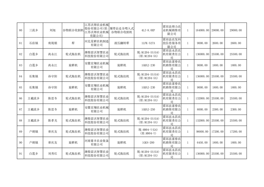 【补贴结果】霍邱县众兴集镇2024年第三批享受农机购置与应用补贴的购机者信息表