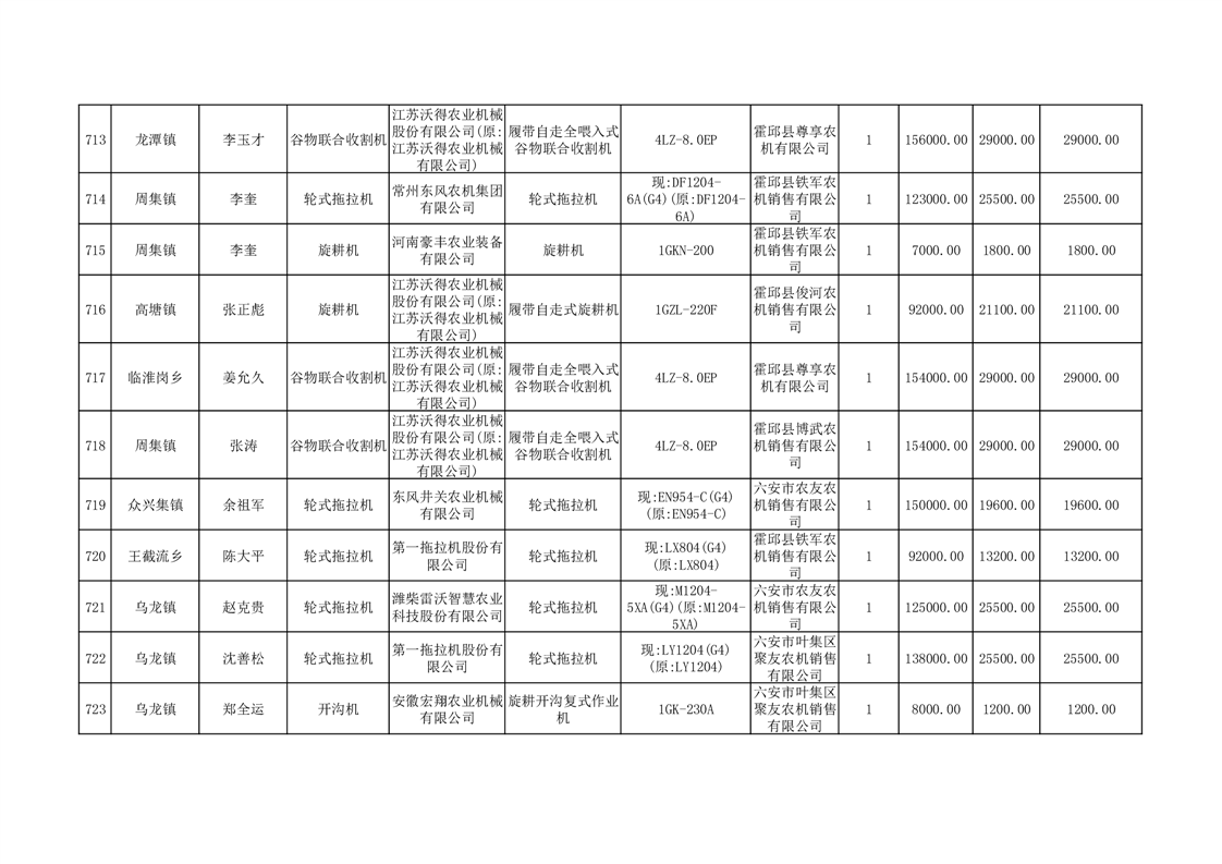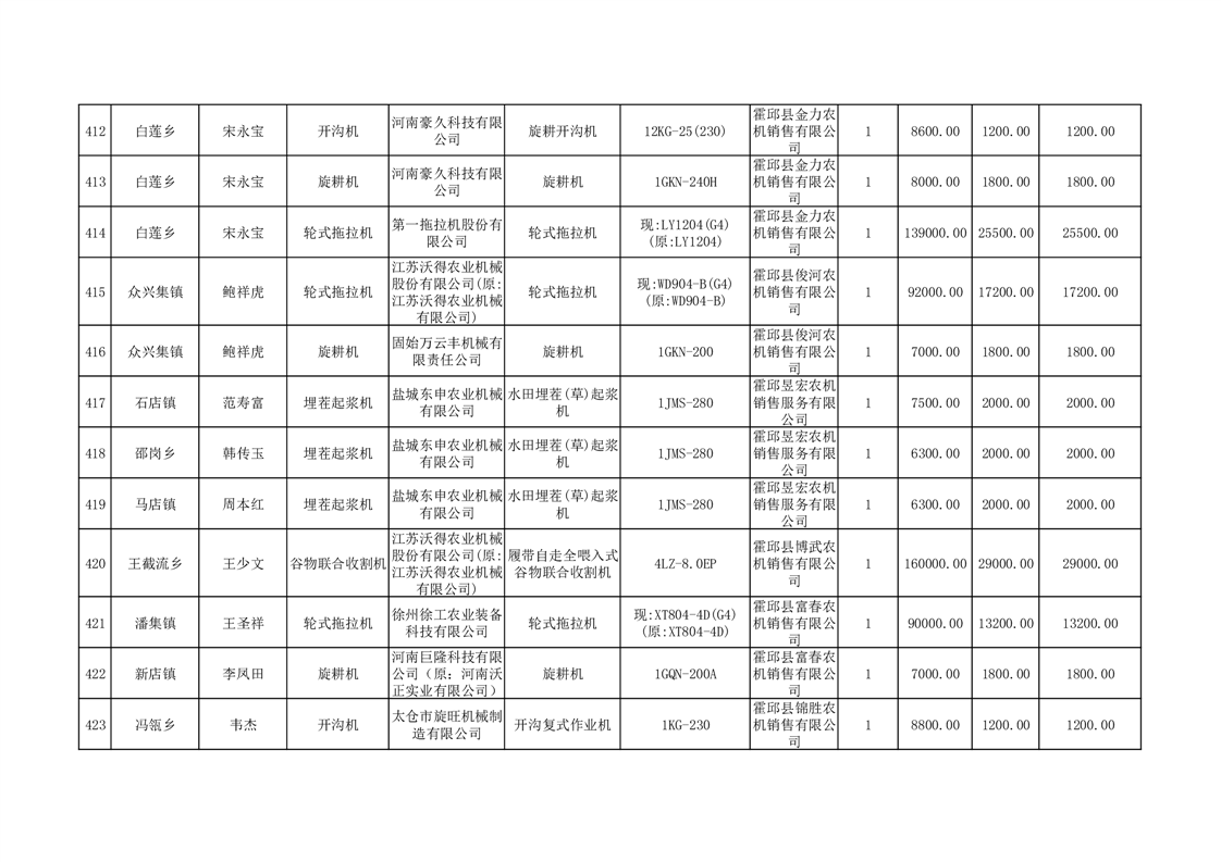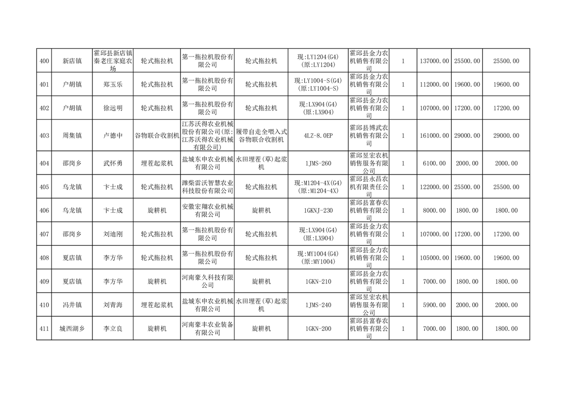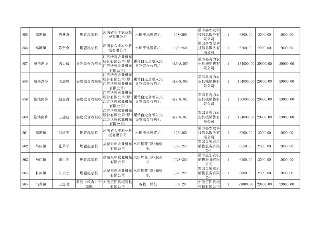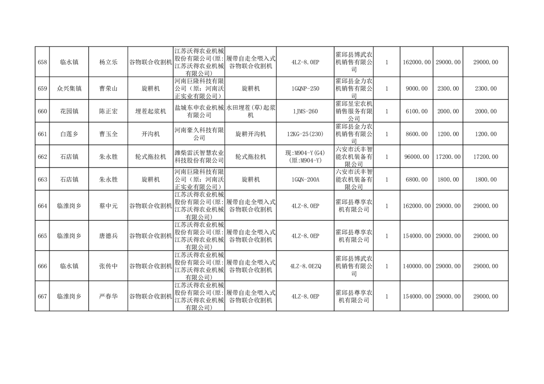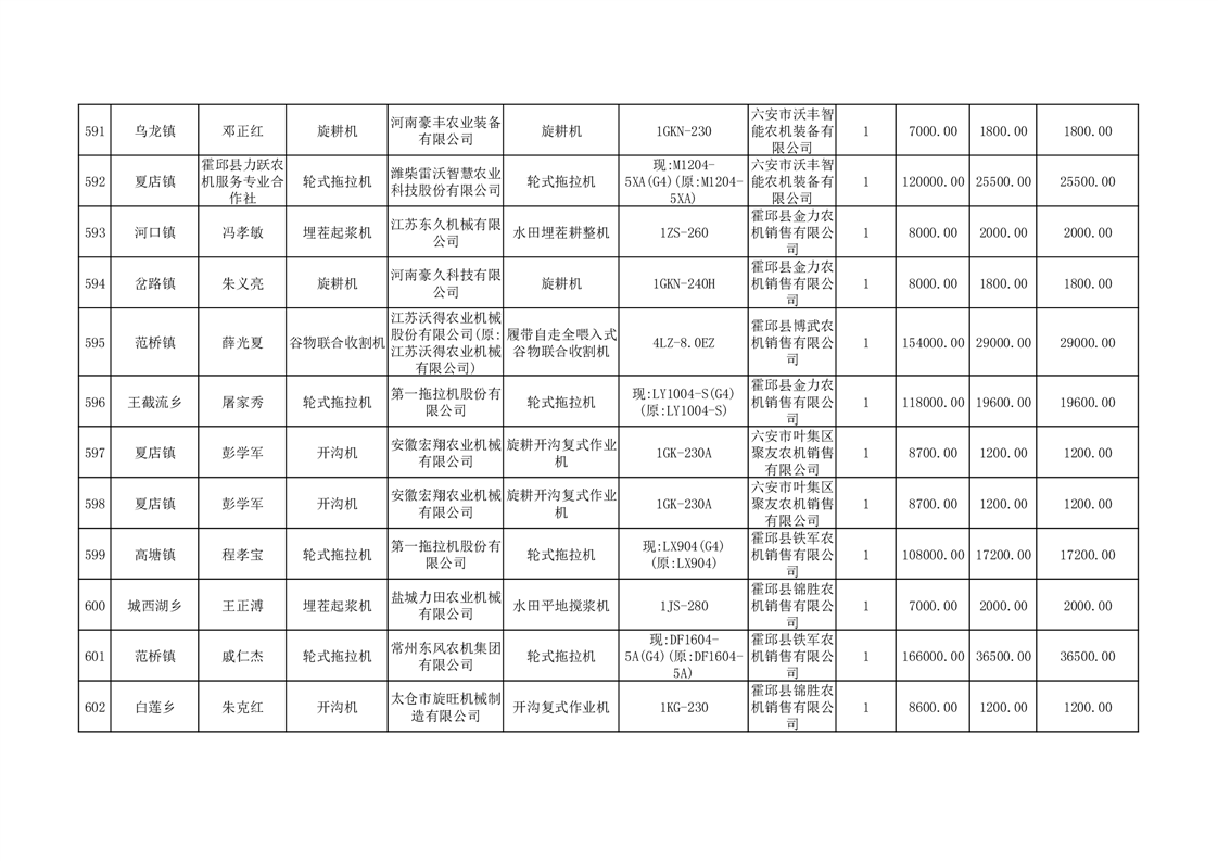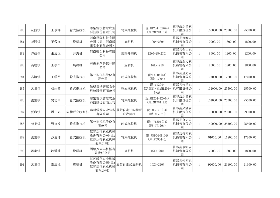 【补贴结果】霍邱县众兴集镇2024年第三批享受农机购置与应用补贴的购机者信息表