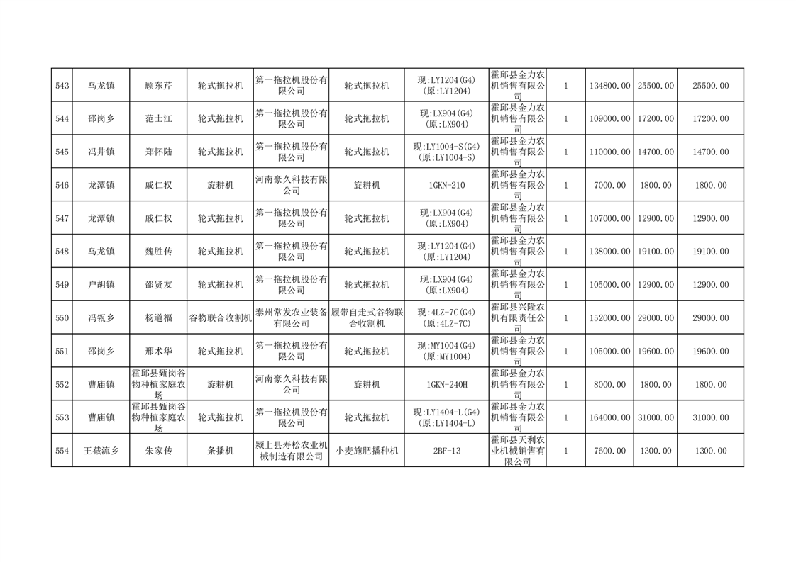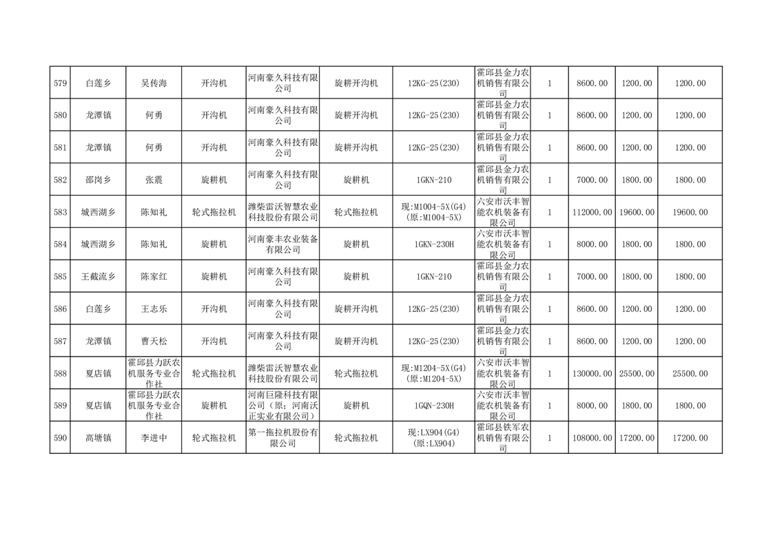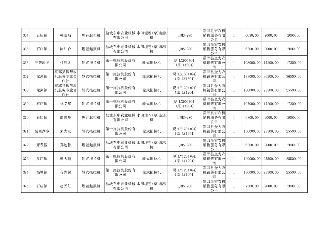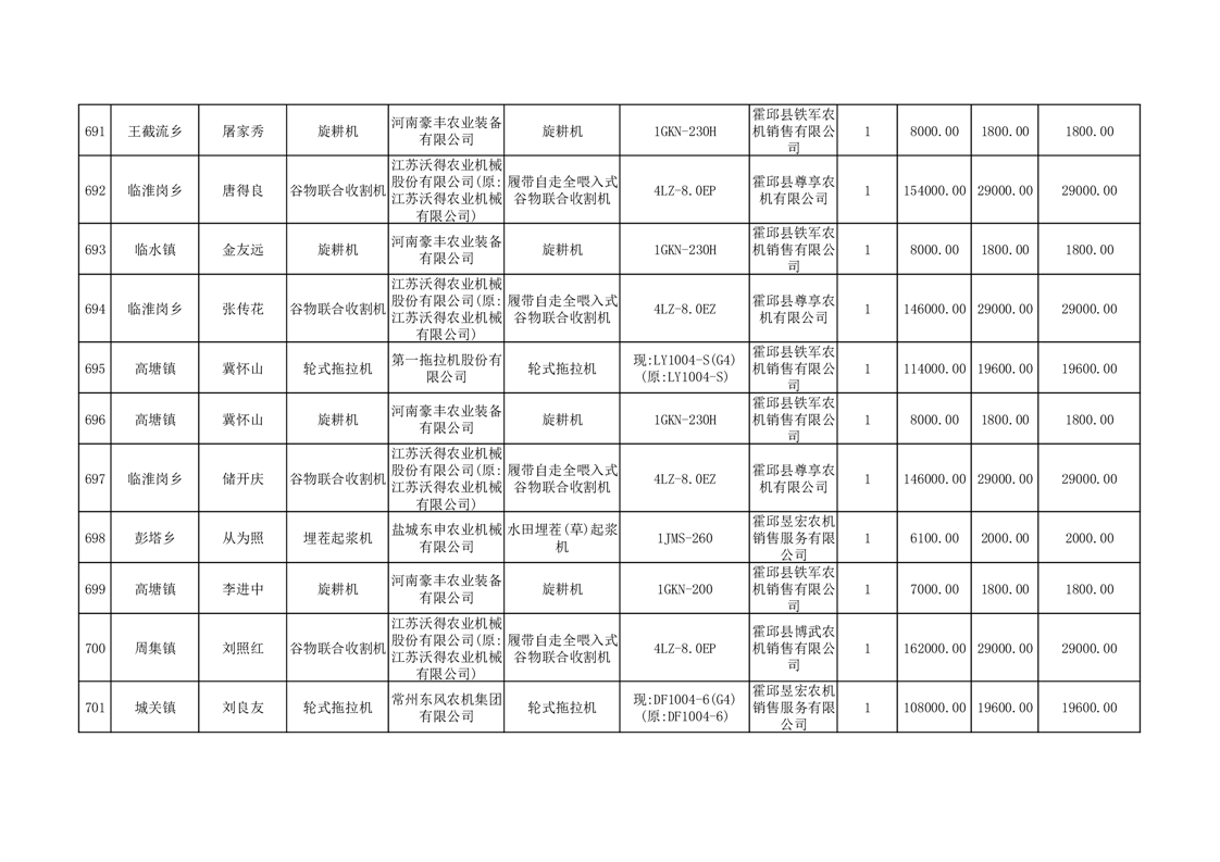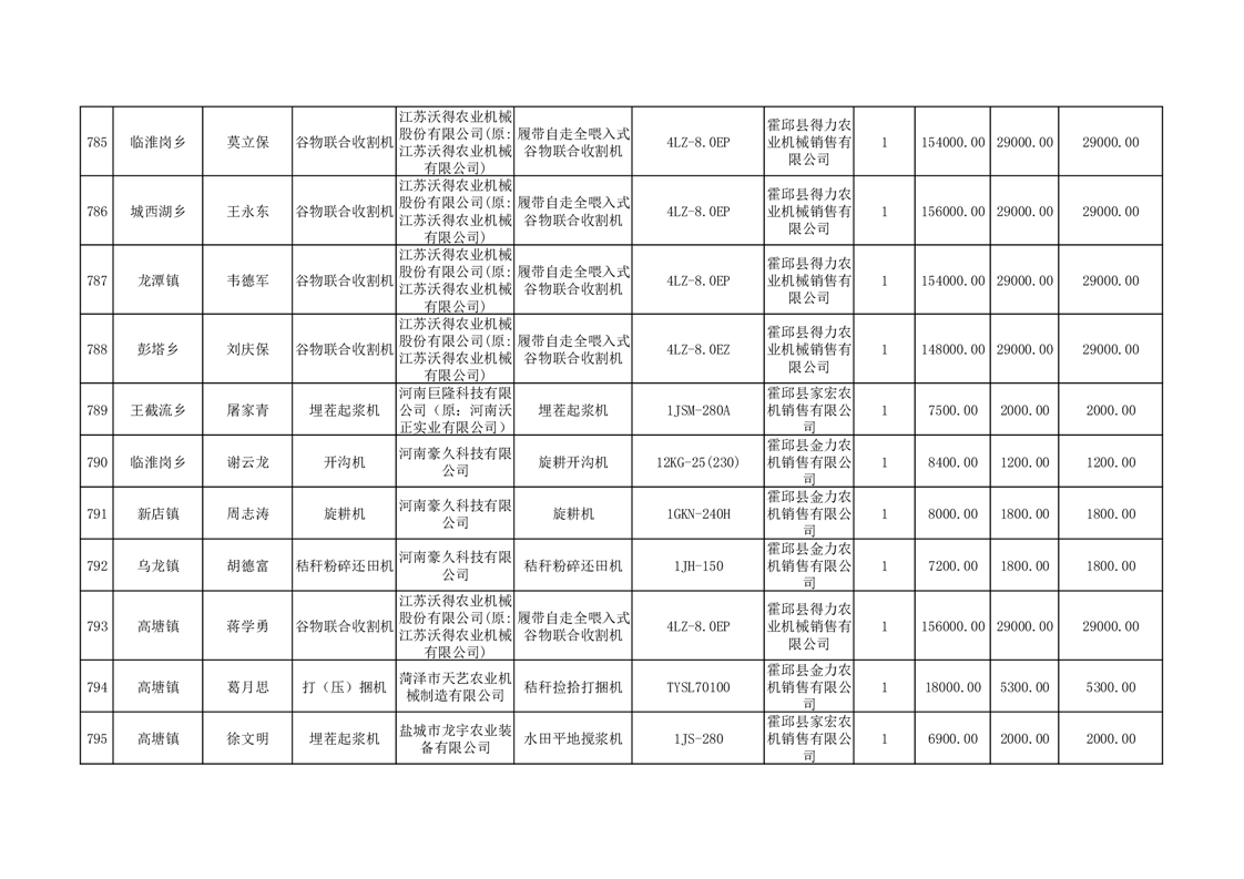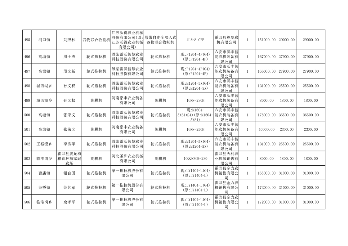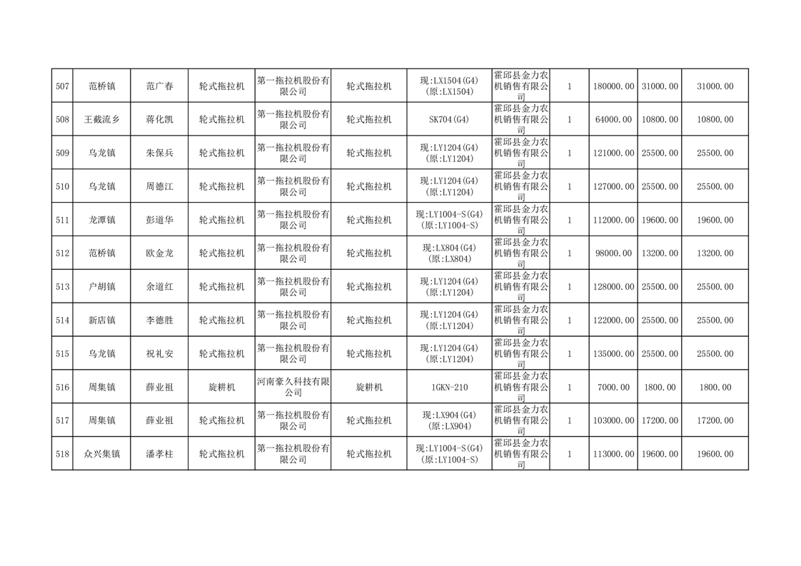 【补贴结果】霍邱县众兴集镇2024年第三批享受农机购置与应用补贴的购机者信息表