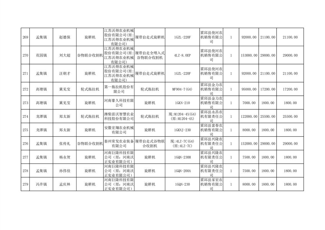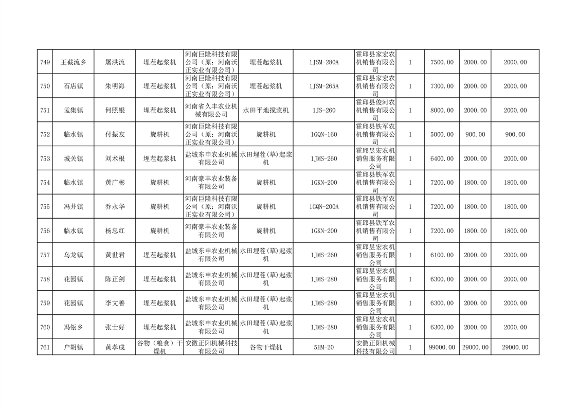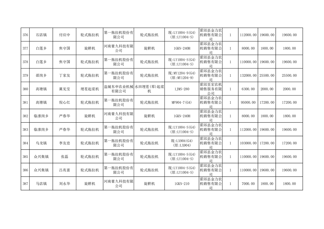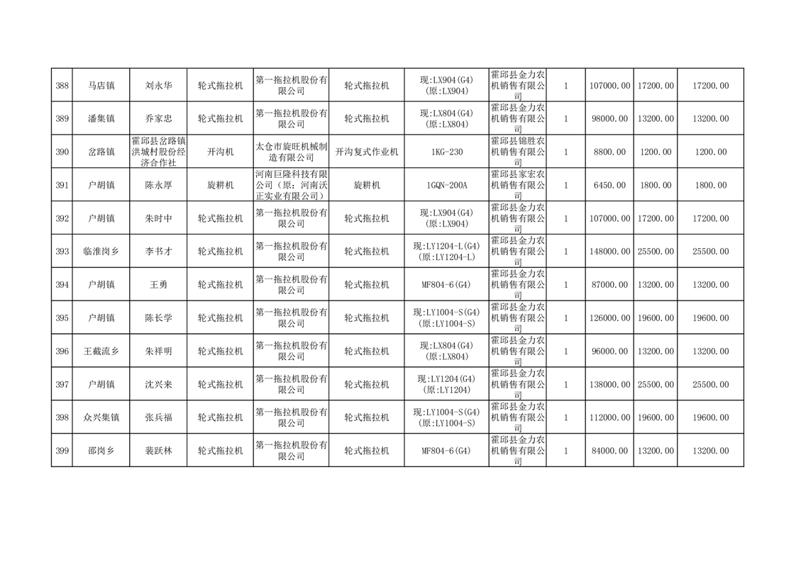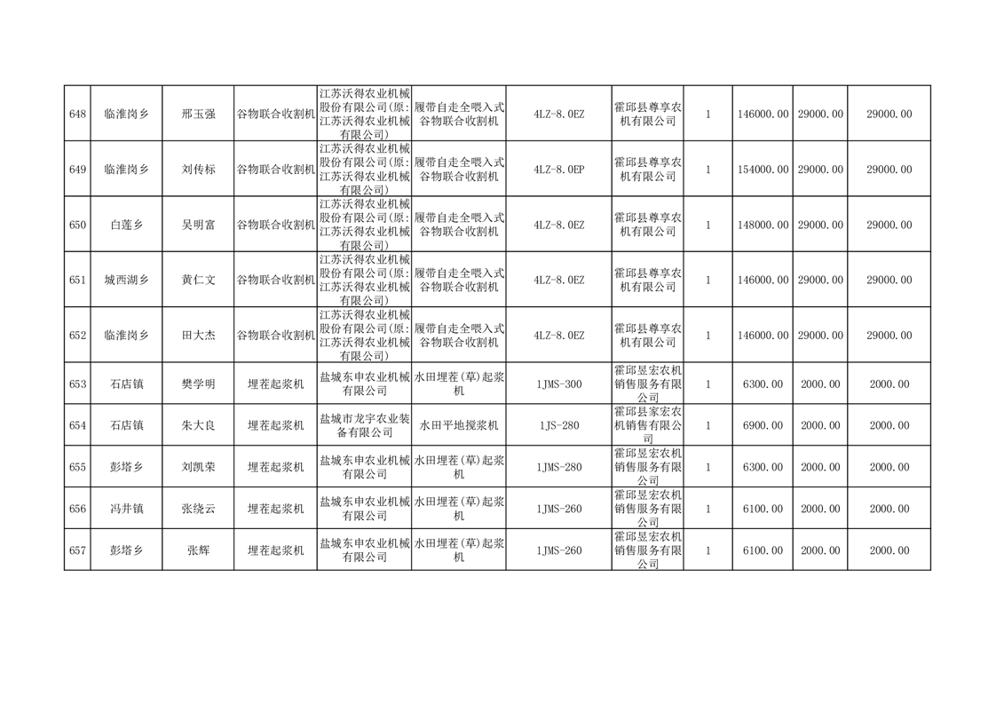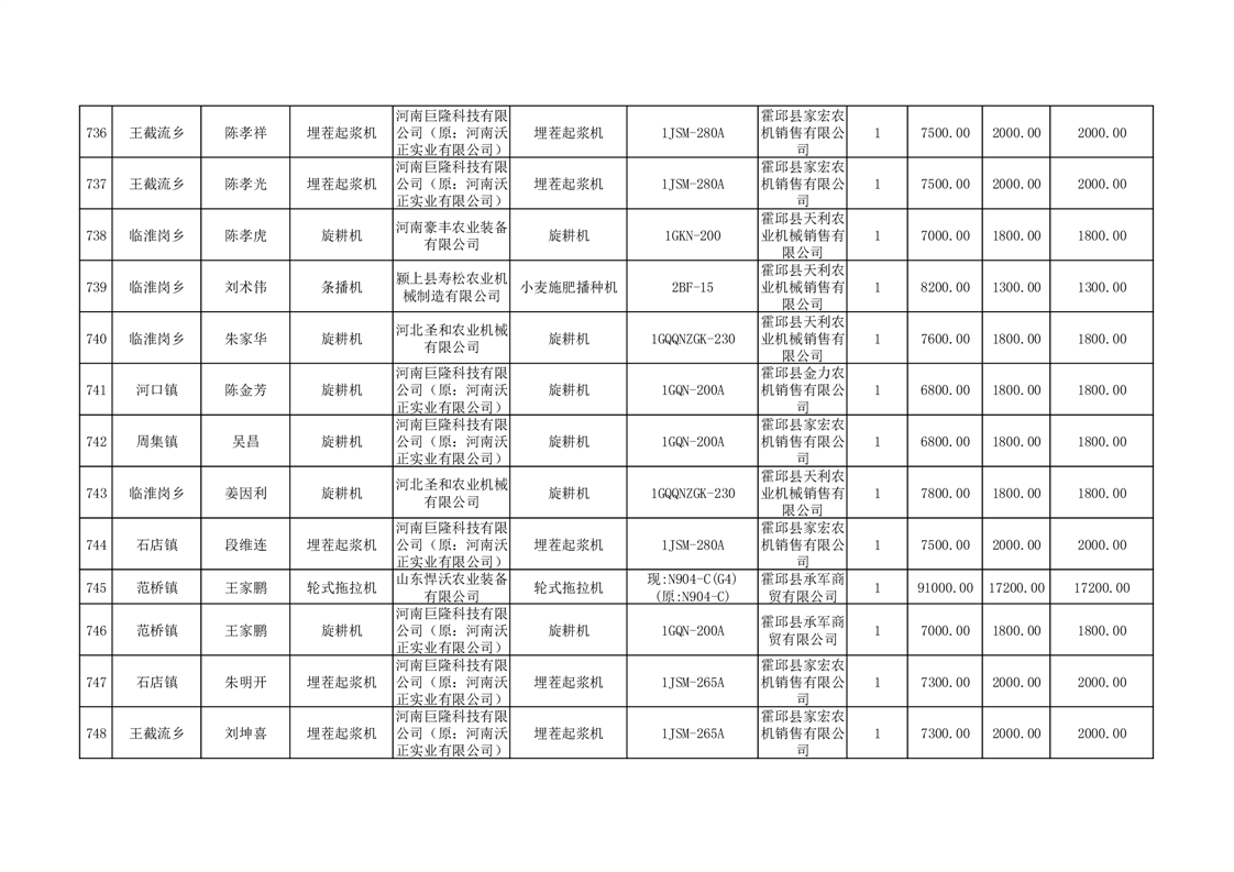 【补贴结果】霍邱县众兴集镇2024年第三批享受农机购置与应用补贴的购机者信息表