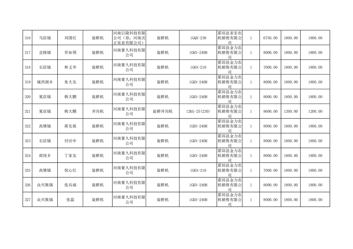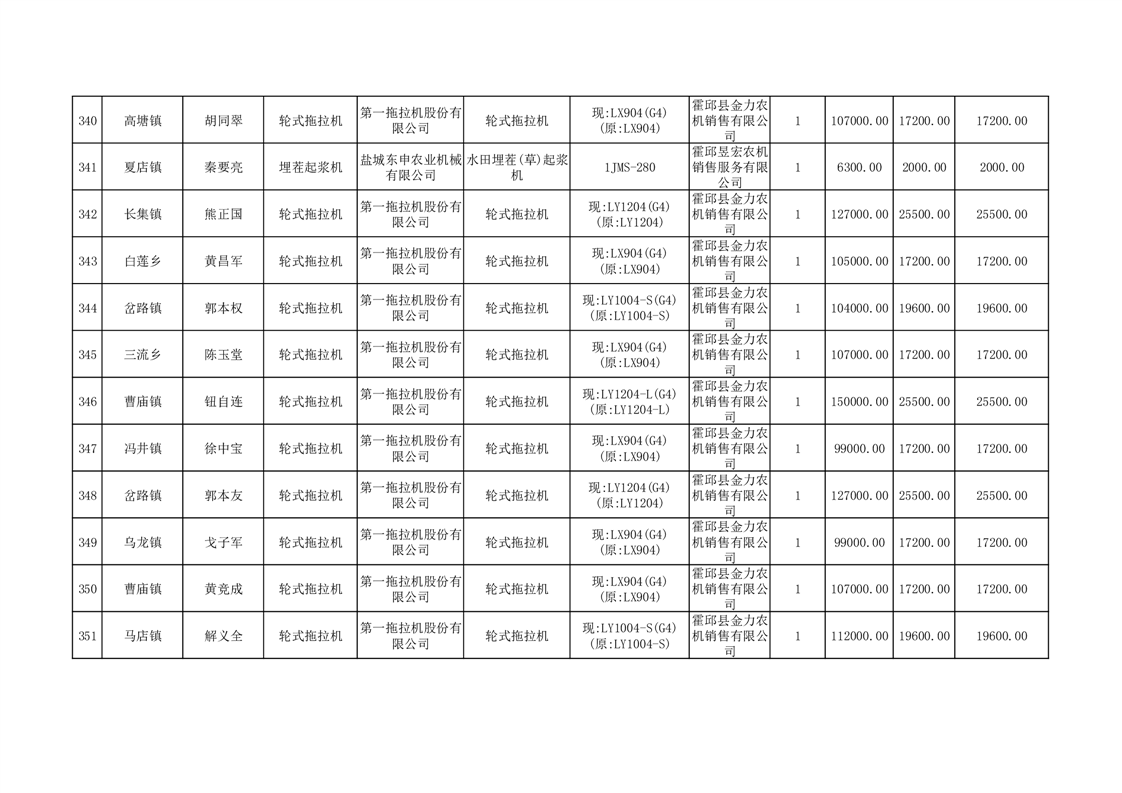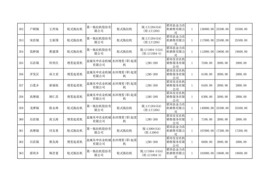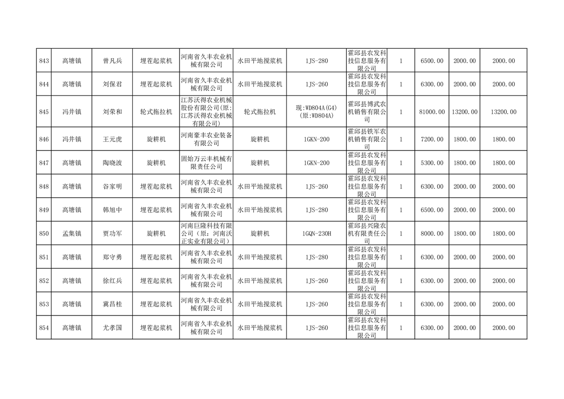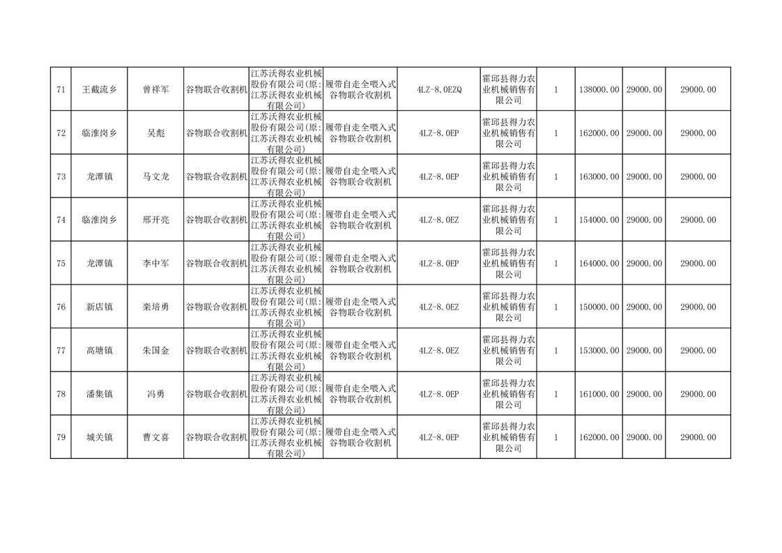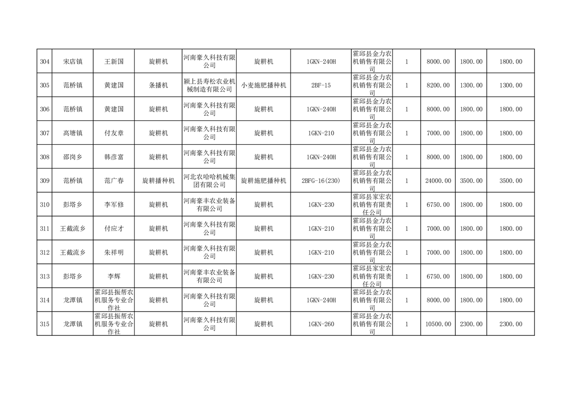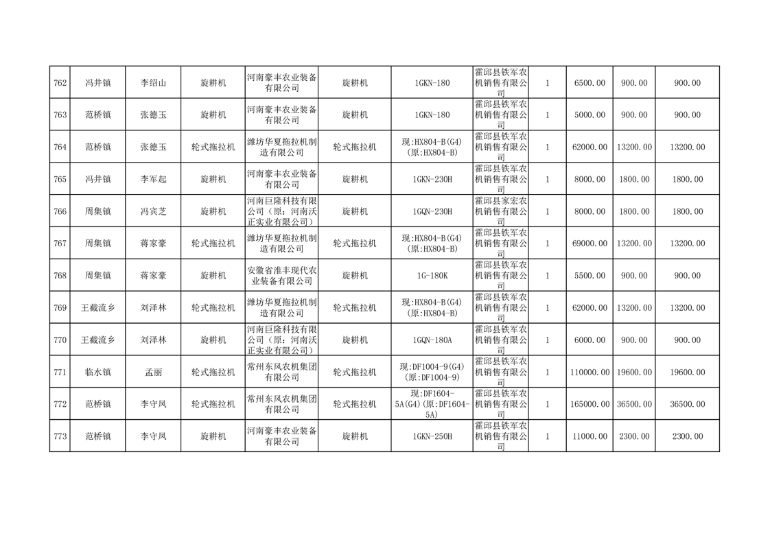 【补贴结果】霍邱县众兴集镇2024年第三批享受农机购置与应用补贴的购机者信息表