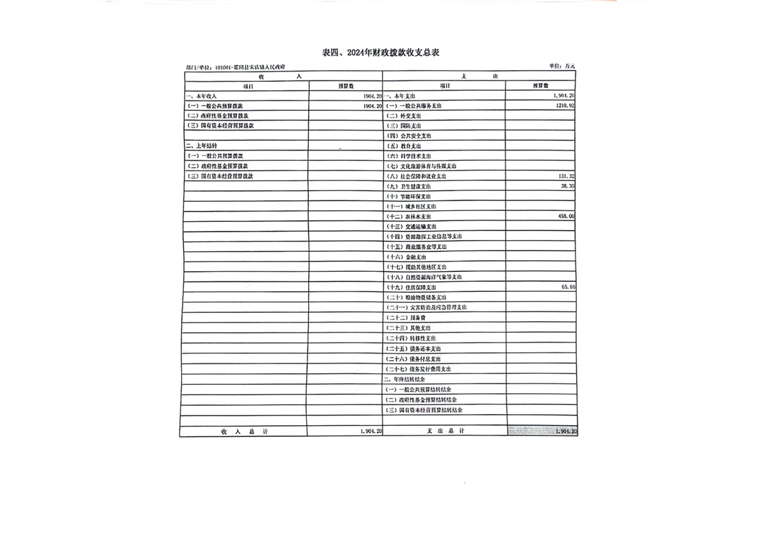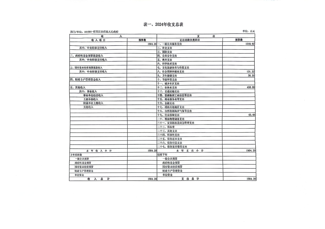 霍邱县宋店镇人民政府2024年部门预算公开