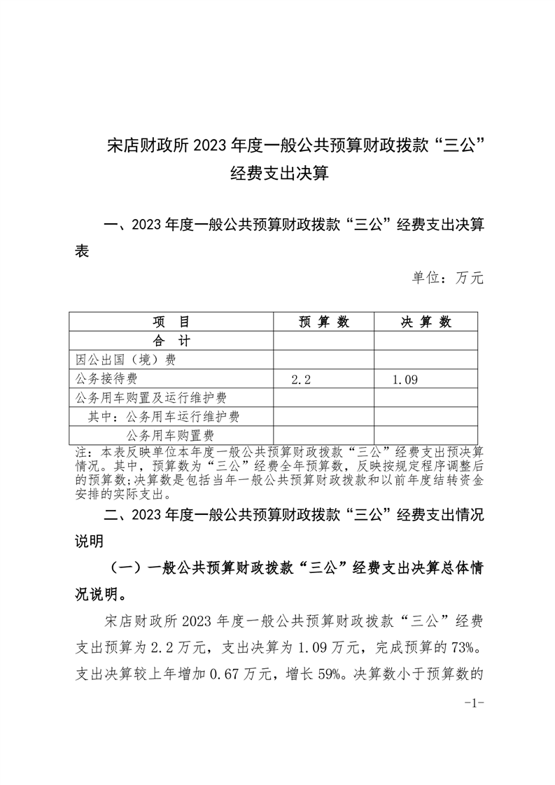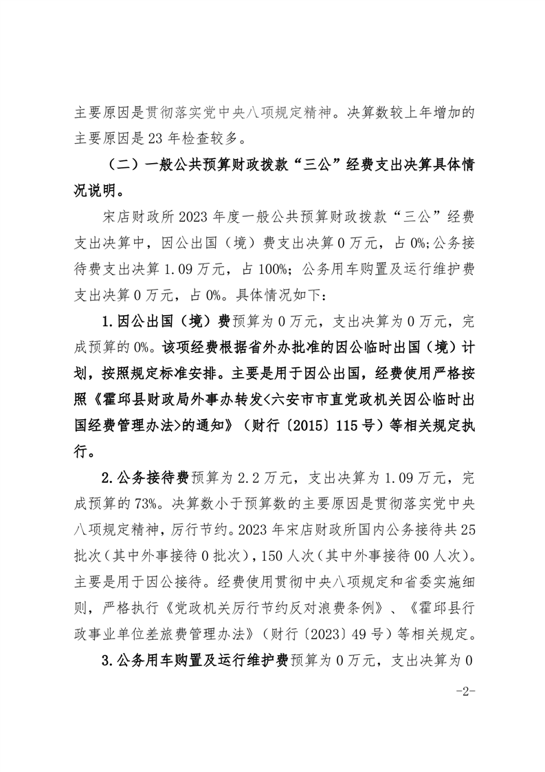 宋店镇人民政府2023年度一般公共预算财政拨款“三公”经费支出决算