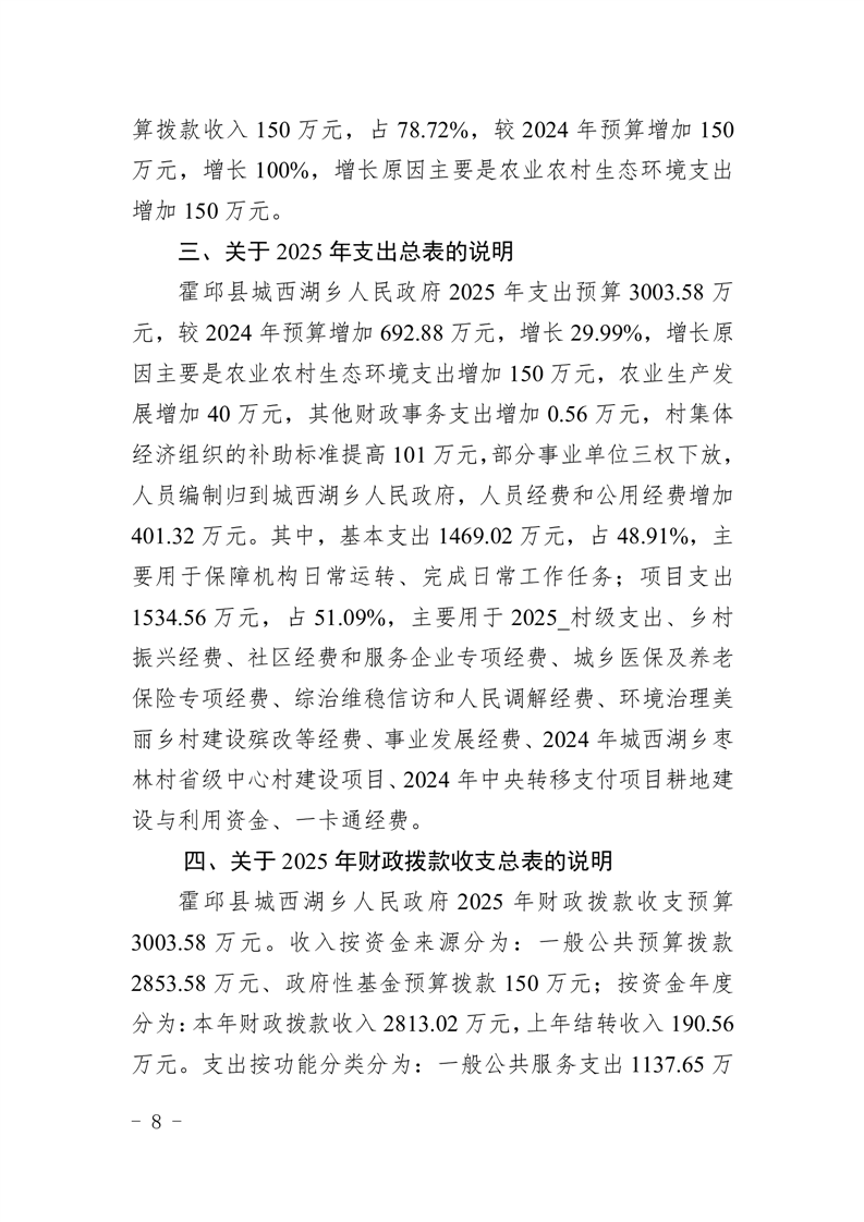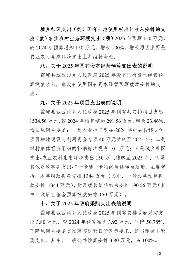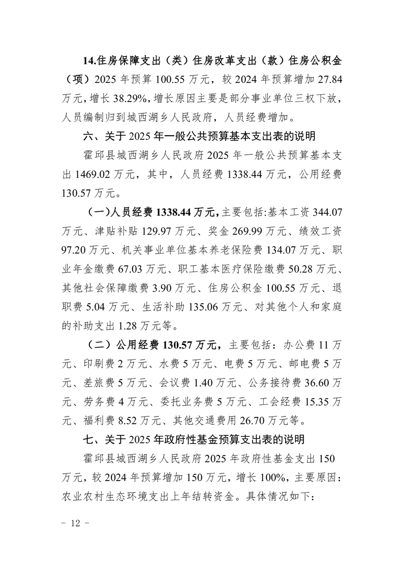霍邱县城西湖乡人民政府2025年部门预算