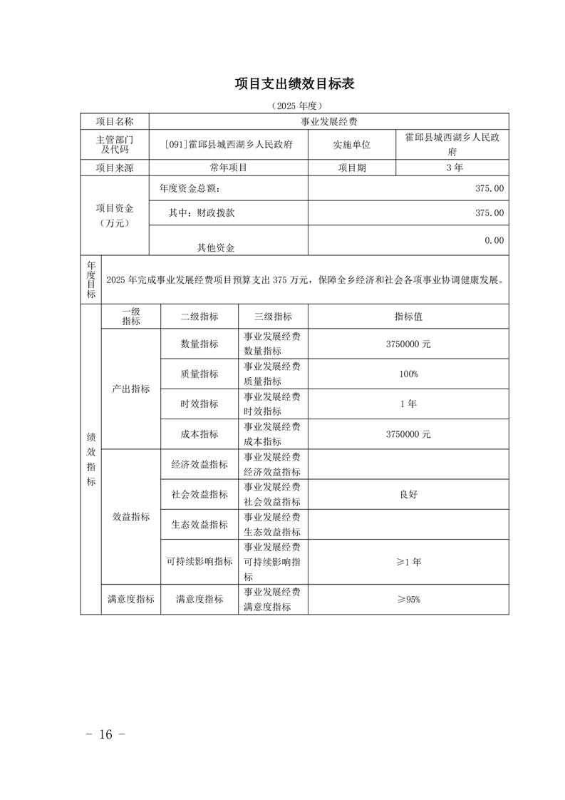 附件2:霍邱县城西湖乡人民政府2025年项目支出绩效目标表.pdf