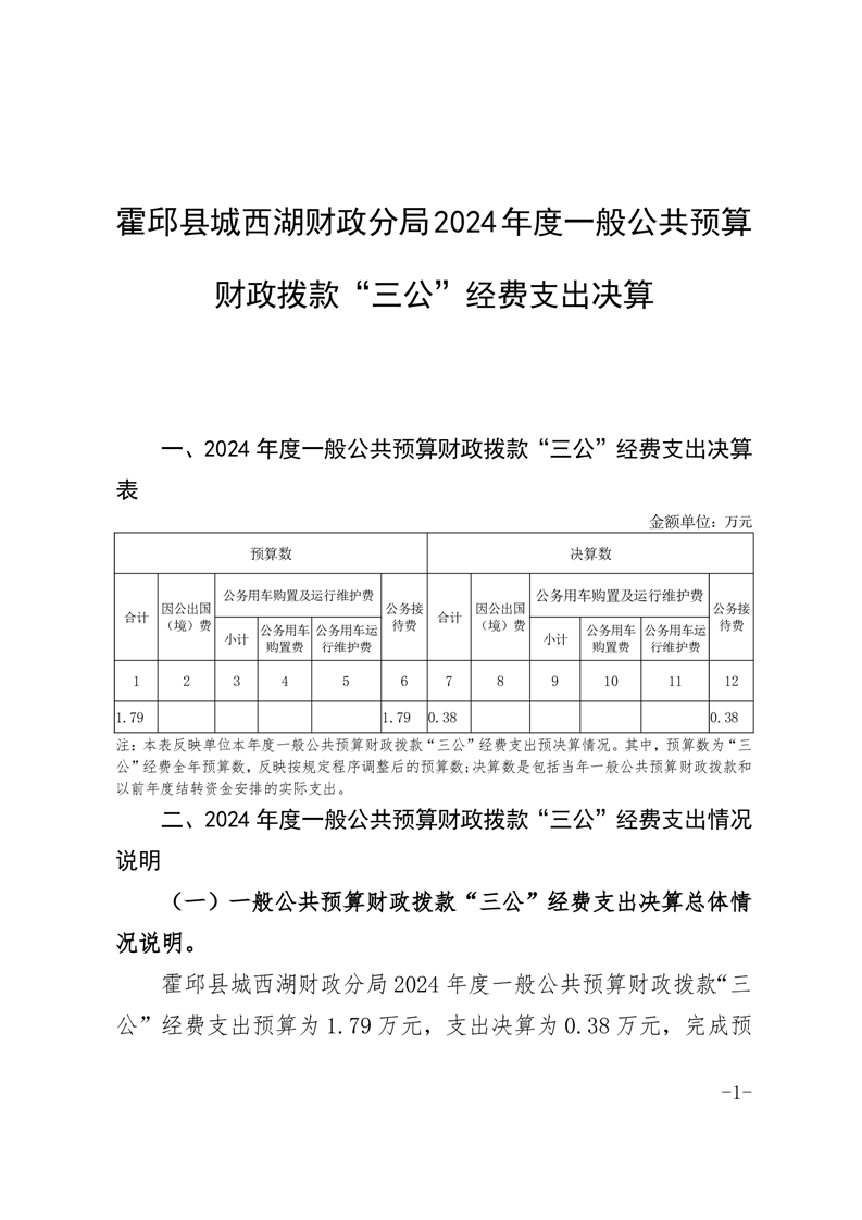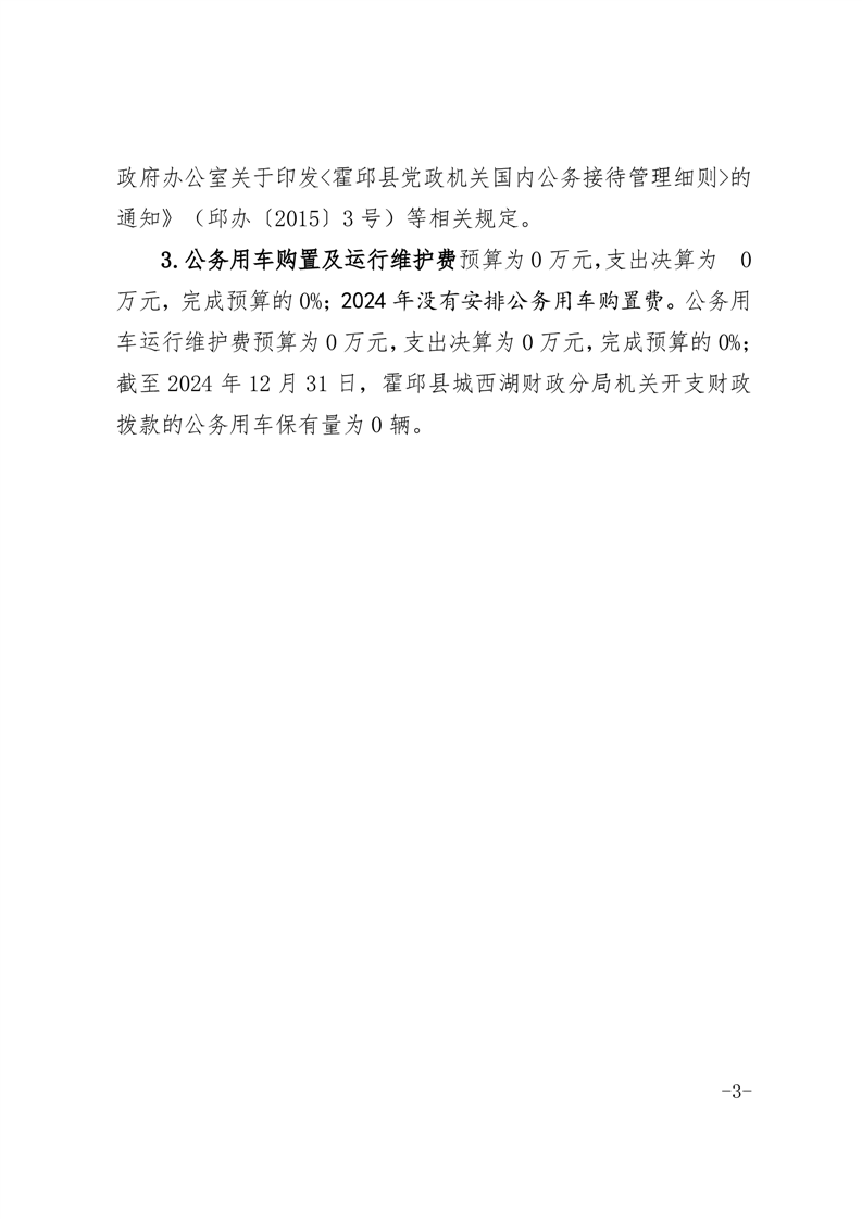 霍邱县城西湖财政分局2024年度一般公共预算财政拨款“三公”经费支出决算公开