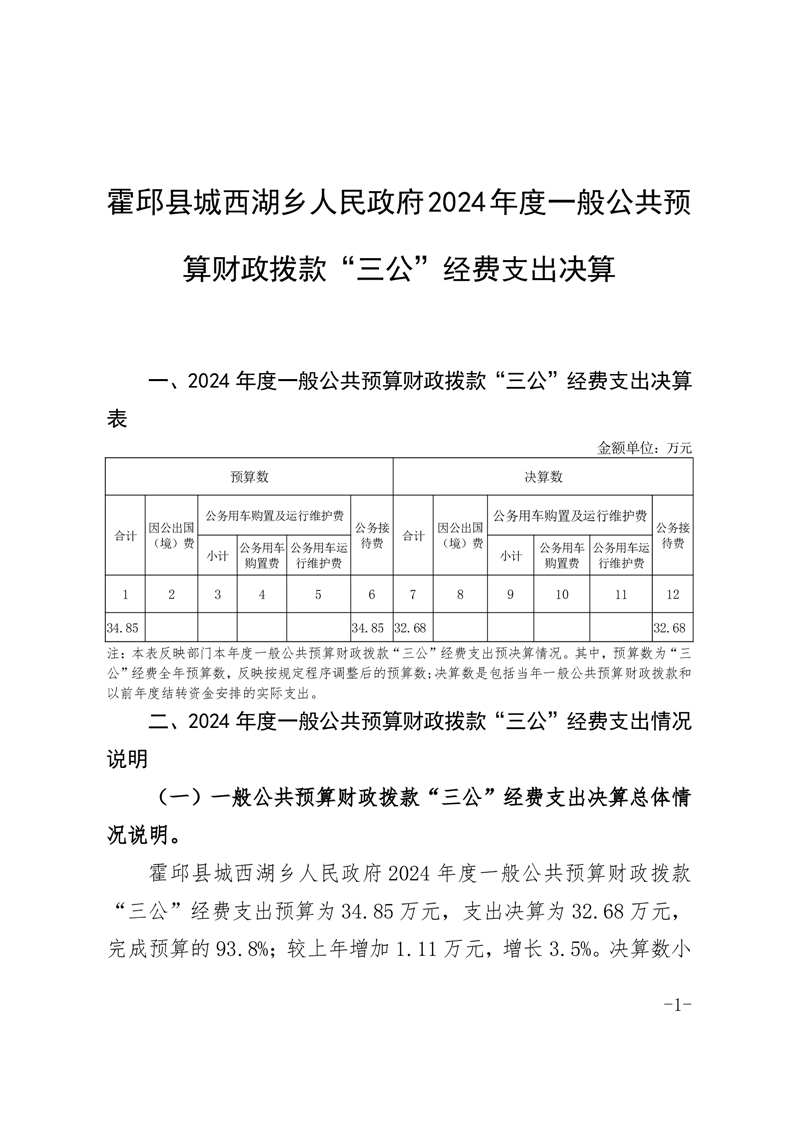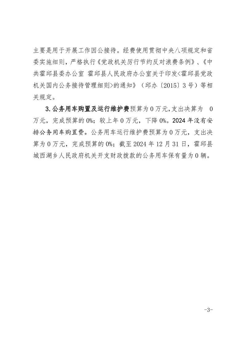 霍邱县城西湖乡人民政府2024年度一般公共预算财政拨款“三公”经费支出决算公开