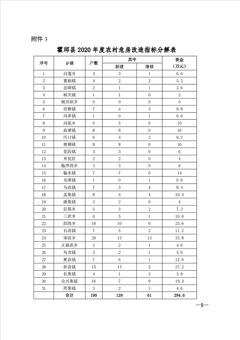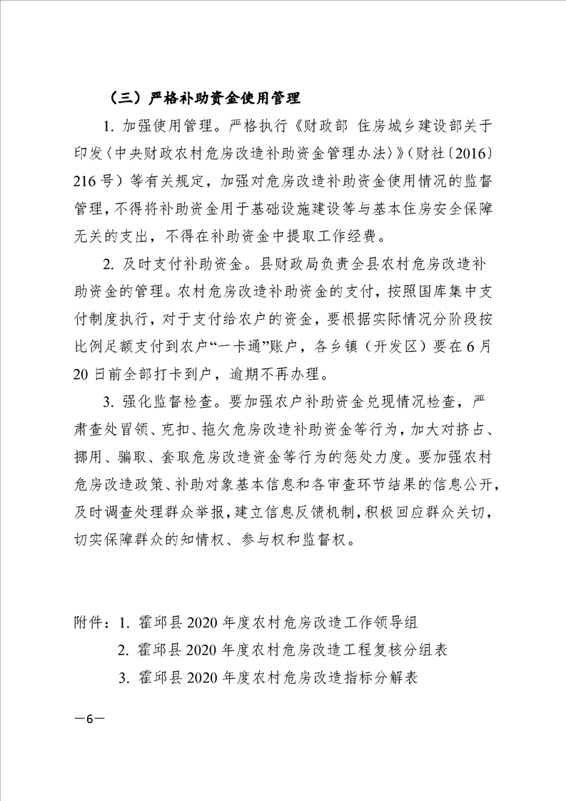 【管理办法】关于印发霍邱县农村危房改造实施方案的通知