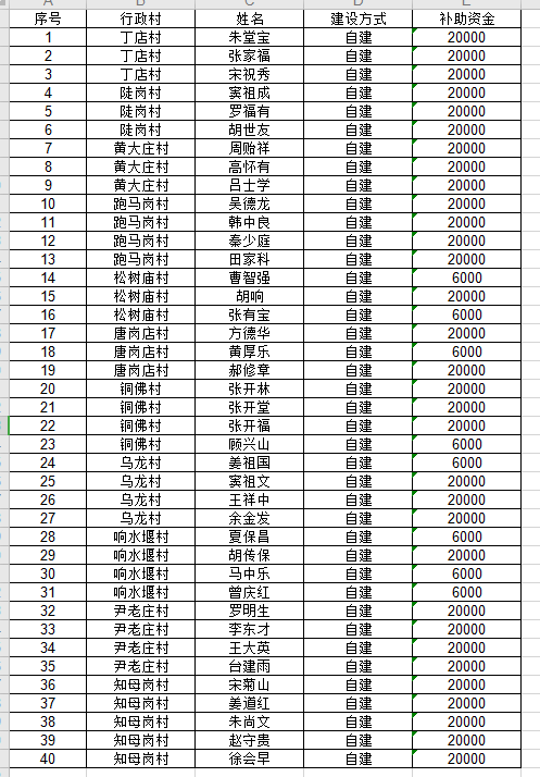 霍邱县乌龙镇2019年农村危房改造打卡花名册