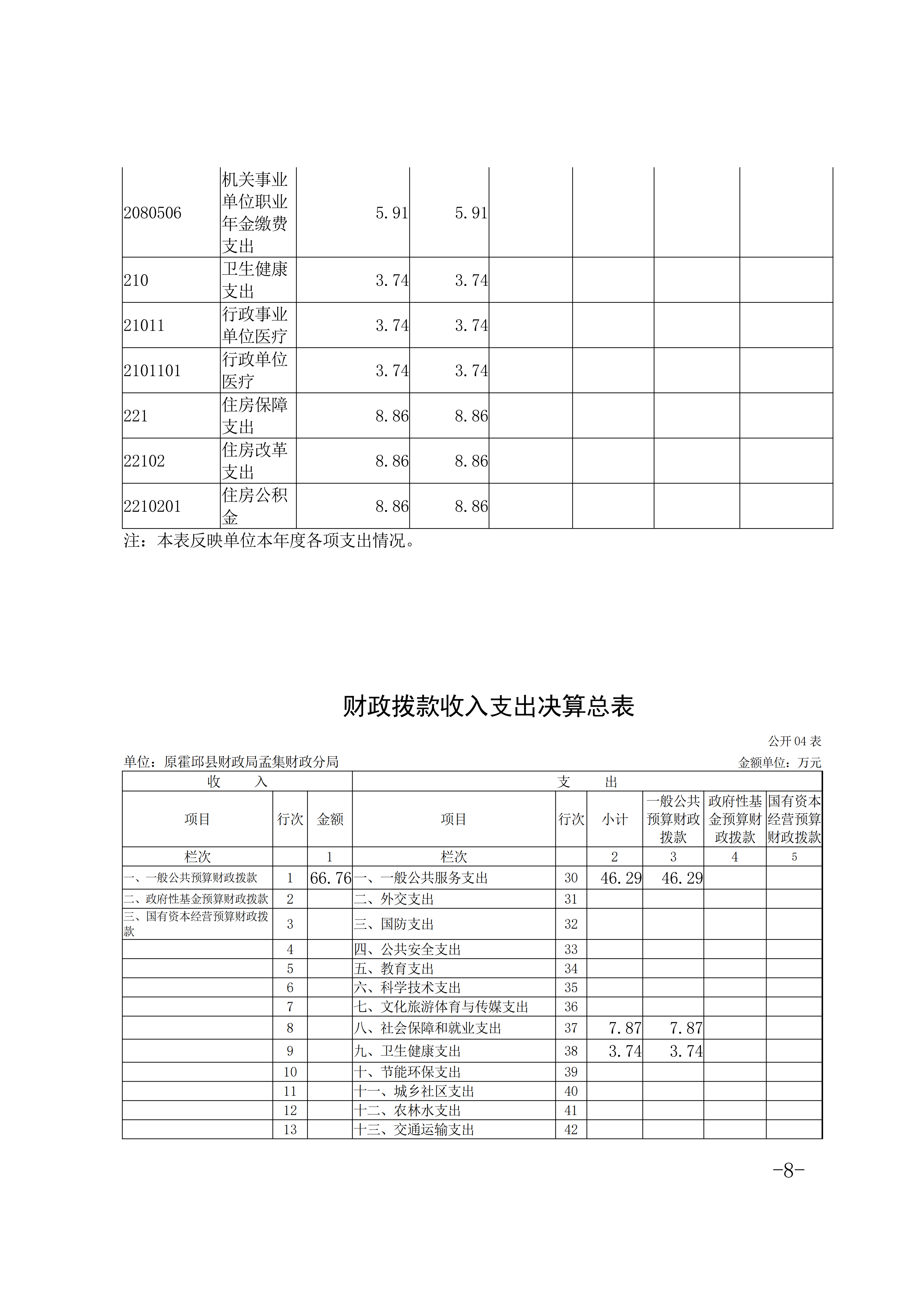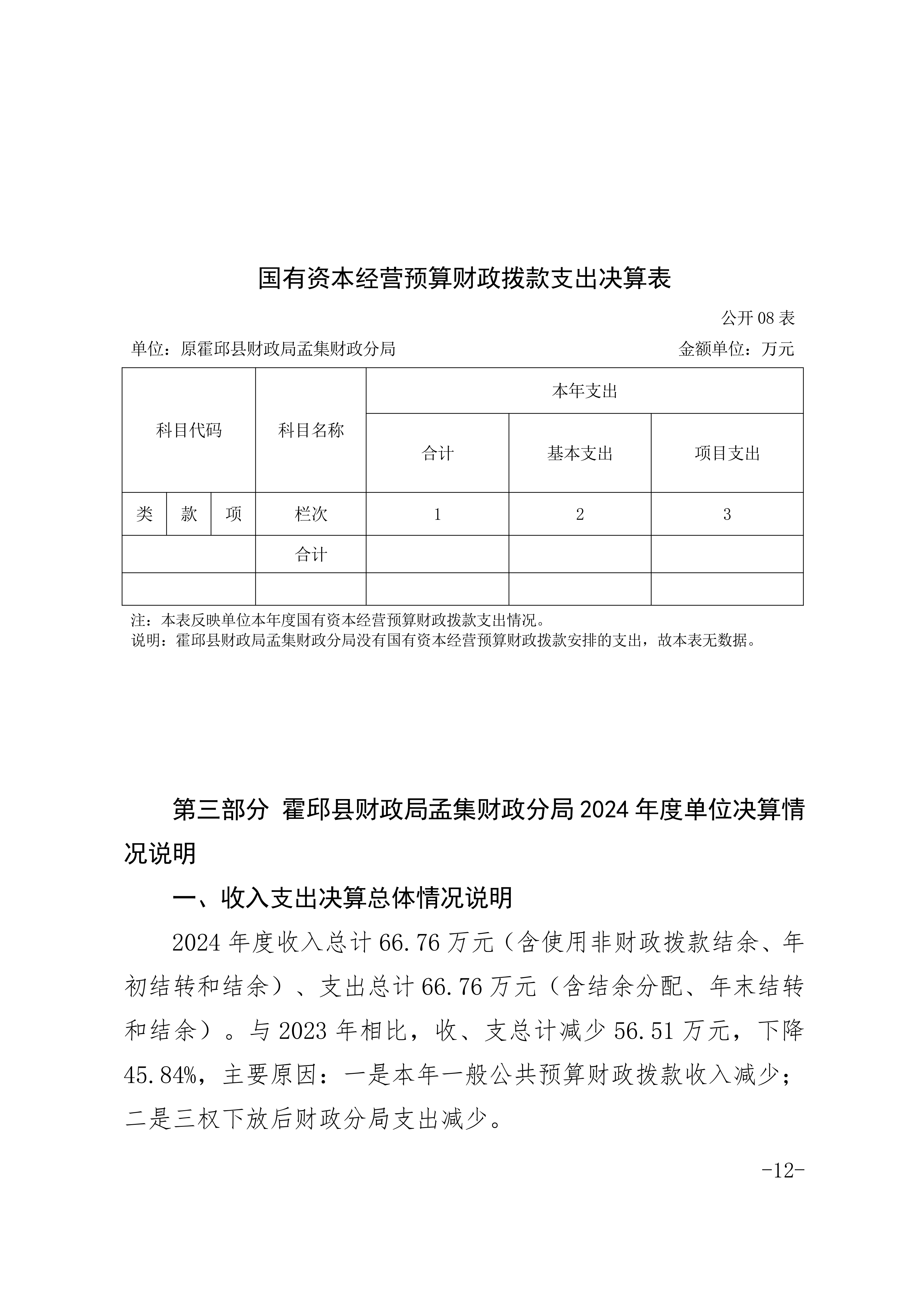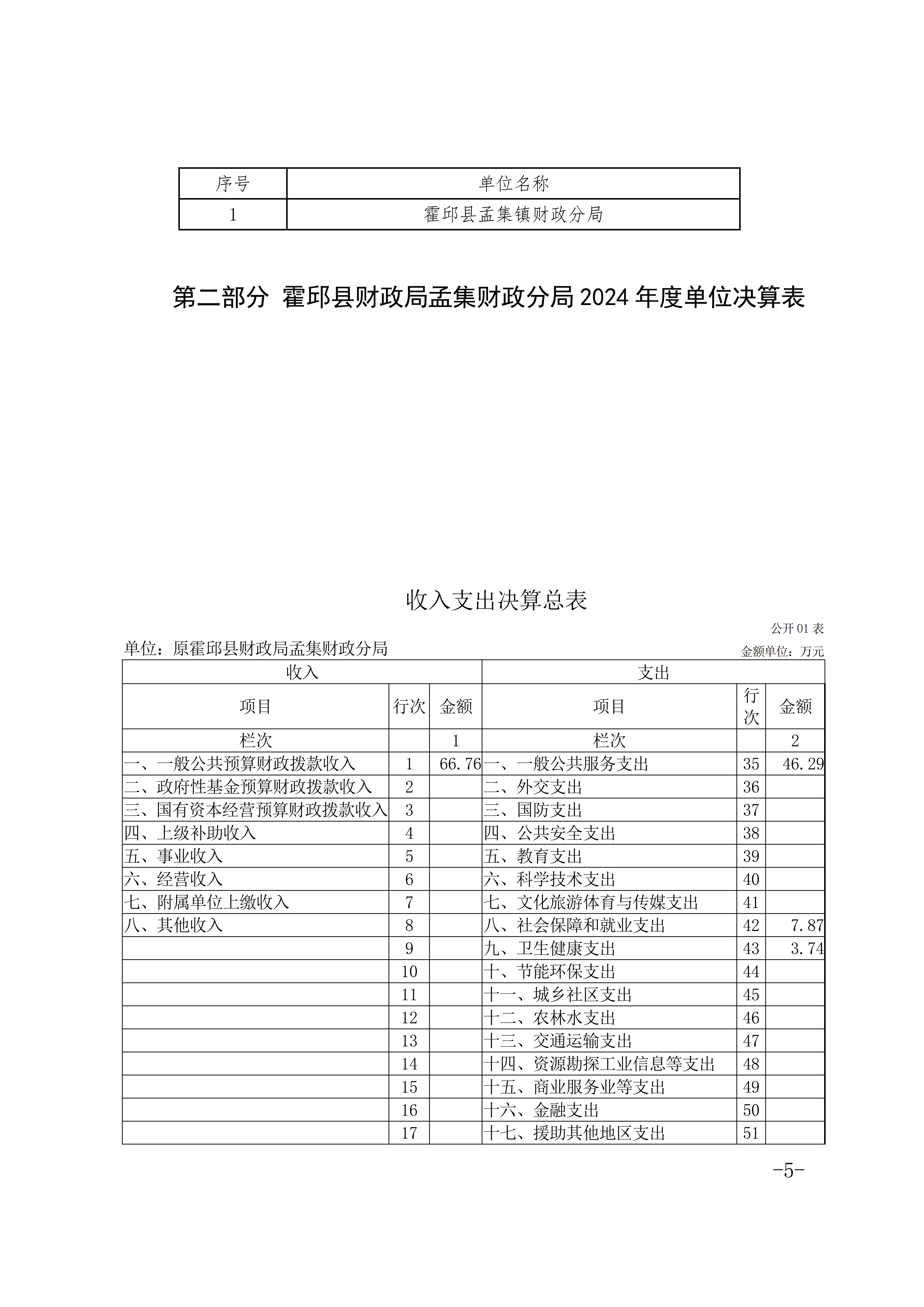 霍邱县财政局孟集财政分局 2024 年度单位决算