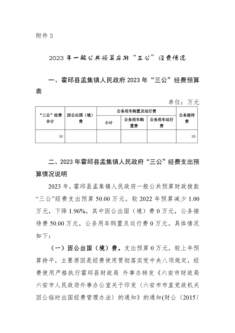 霍邱县孟集镇人民政府2023年一般公共预算安排“三公”经费情况