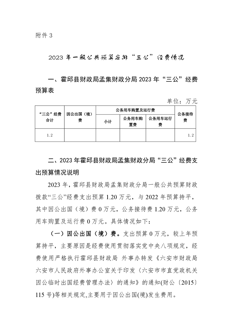 2023年孟集财政分局一般公共预算安排“三公”经费情况