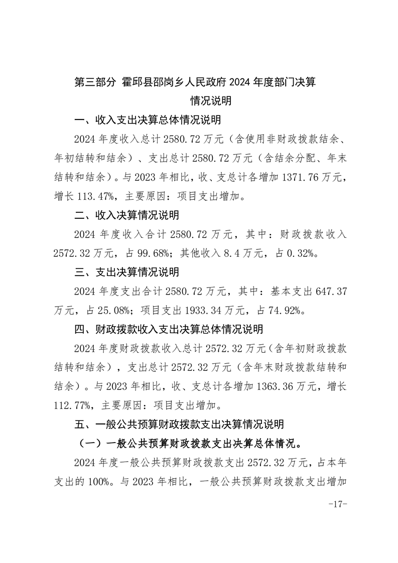 霍邱县邵岗乡人民政府2024年度部门决算