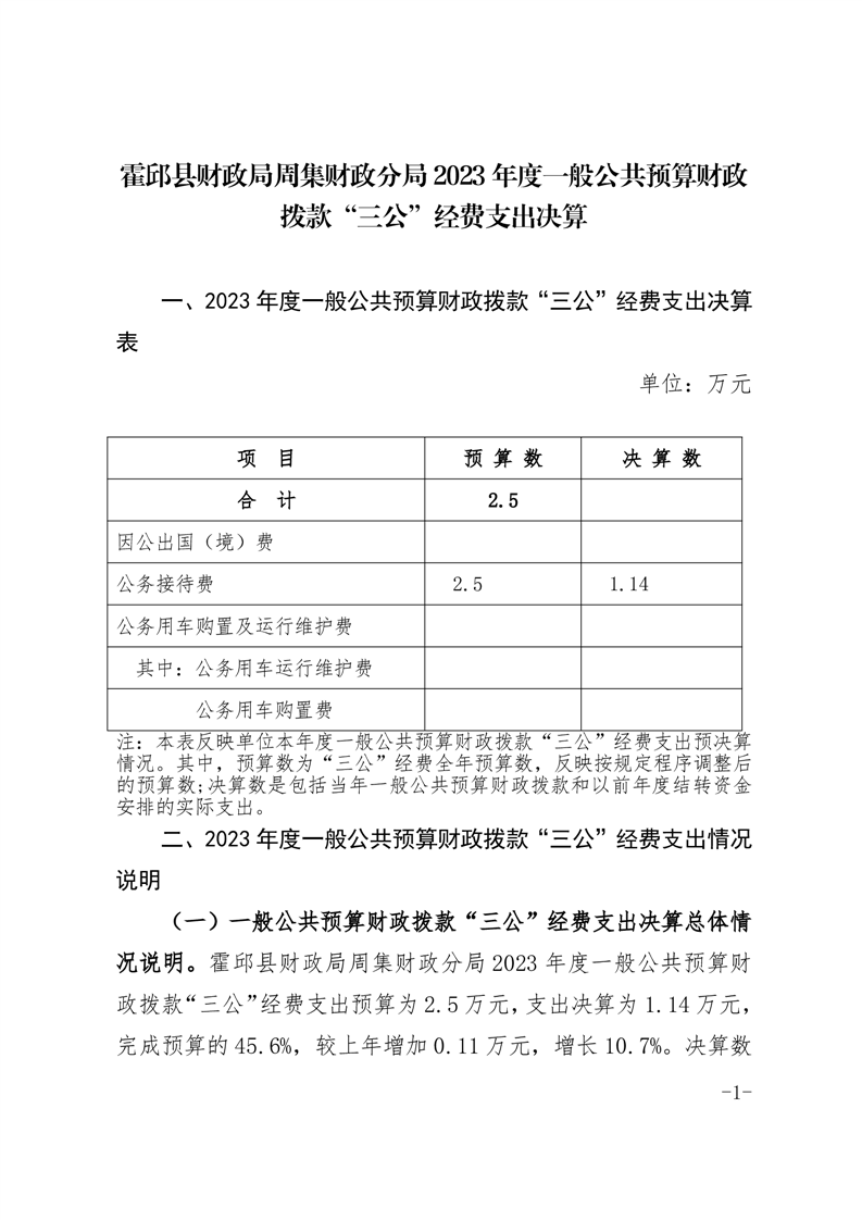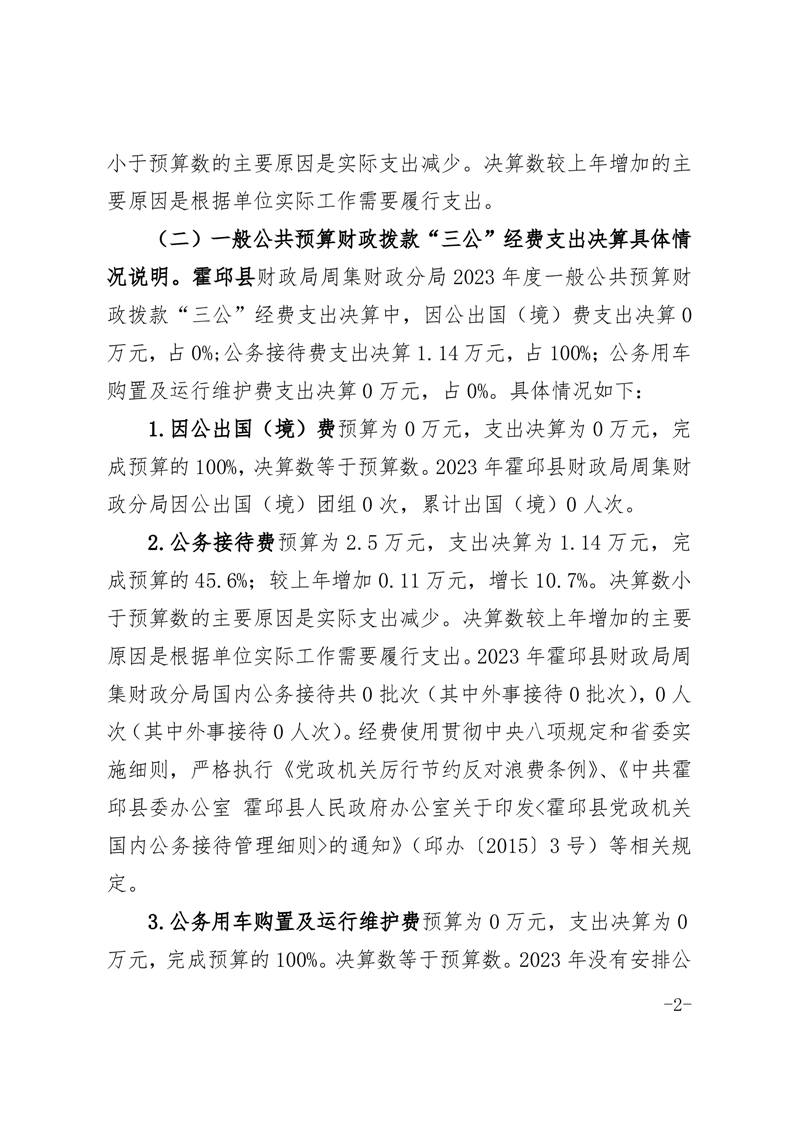 霍邱县财政局周集财政分局 2023 年度一般公共预算财政