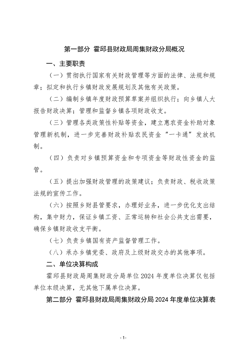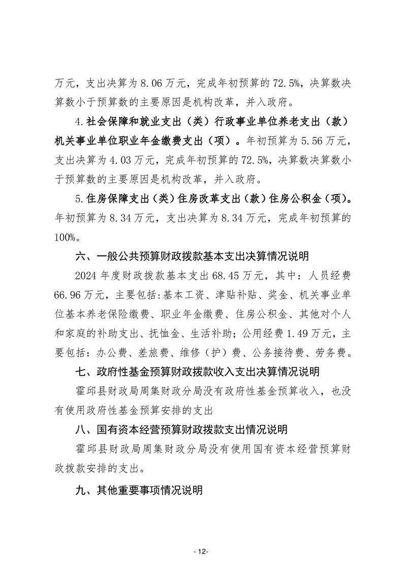 霍邱县财政局周集财政分局2024年度单位决算