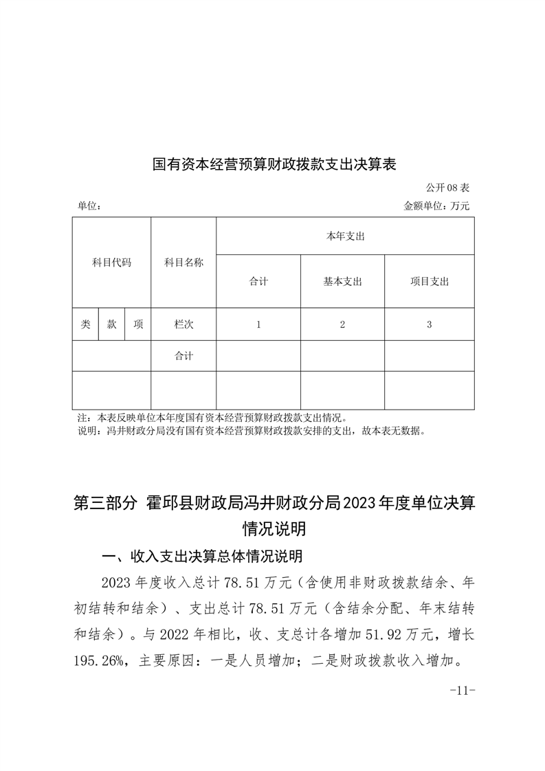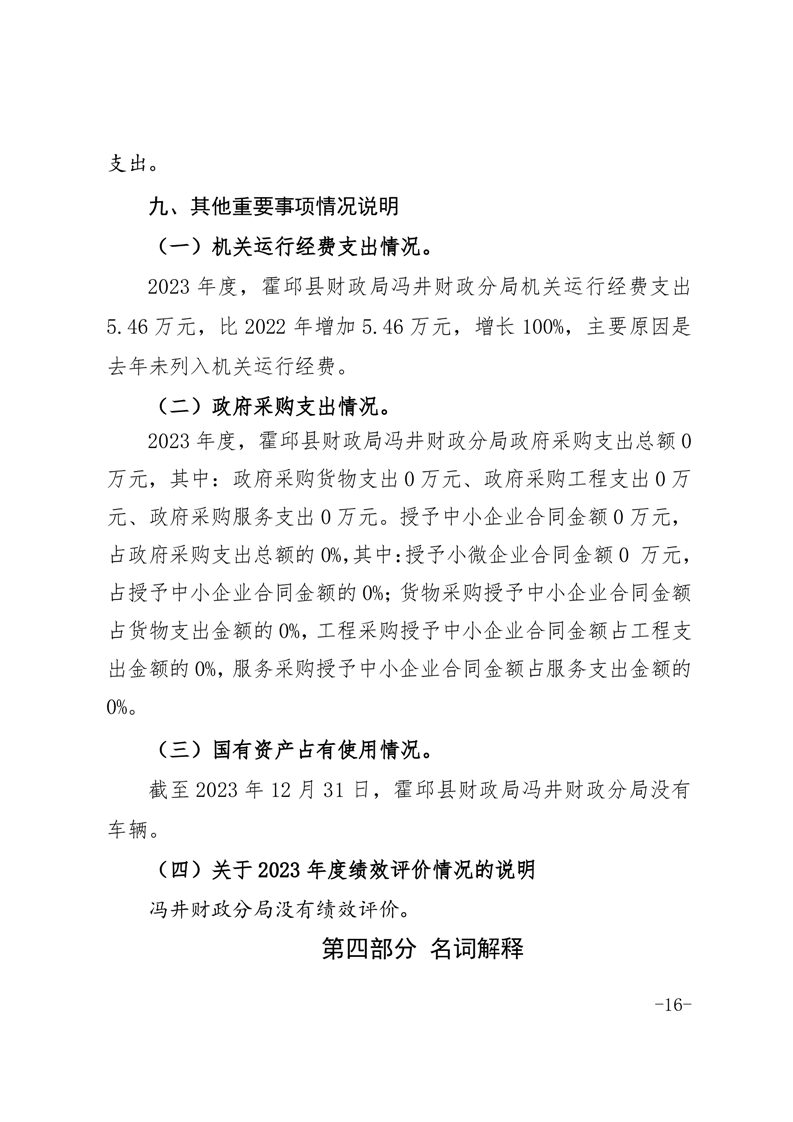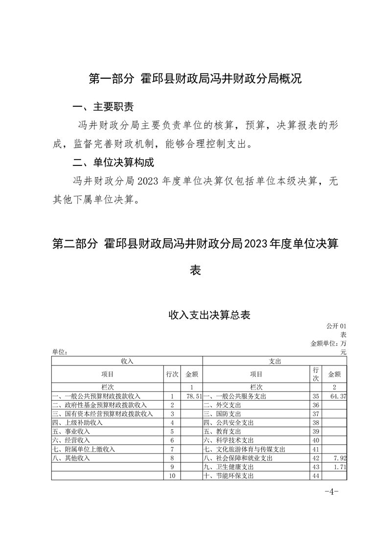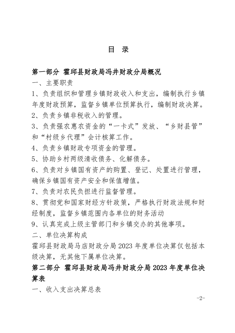 霍邱县冯井镇财政分局2023年单位决算公开