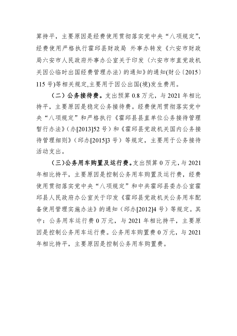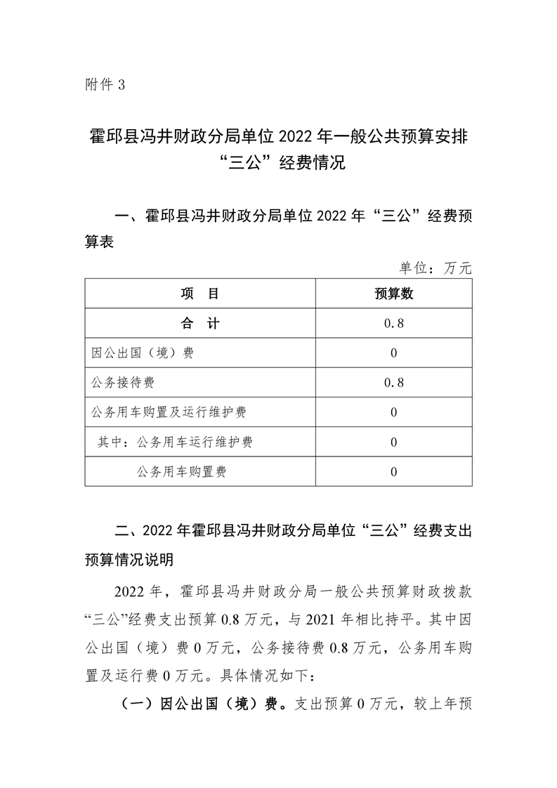 2022年霍邱县冯井财政分局一般公共预算安排“三公”经费情况
