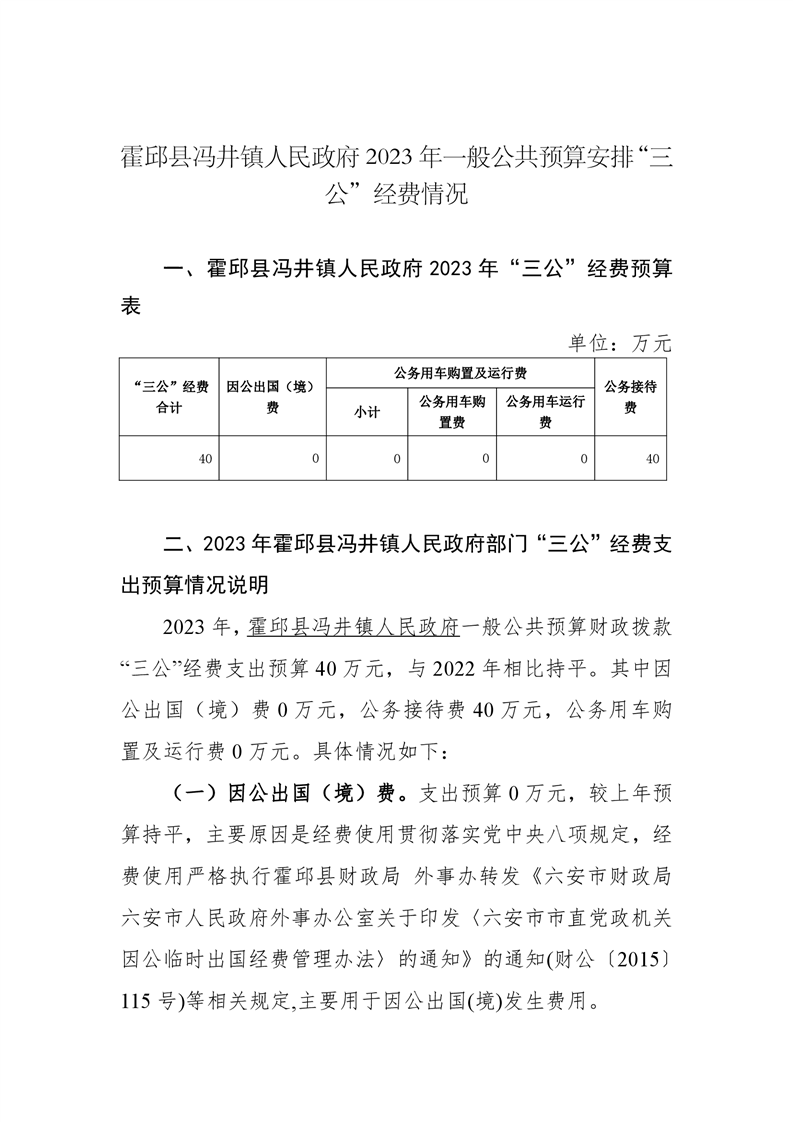 冯井镇人民政府2023年部门单位一般公共预算安排“三公”经费情况