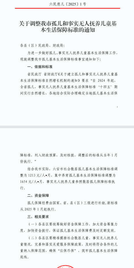 关于调整我市孤儿和事实无人抚养儿童基本生活保障标准的通知