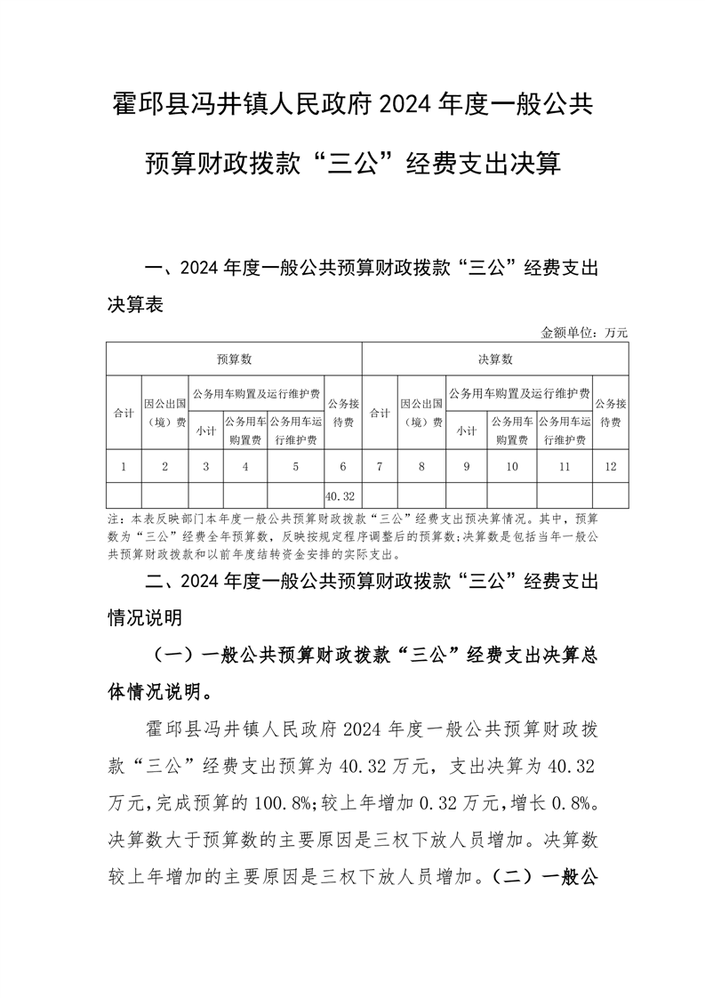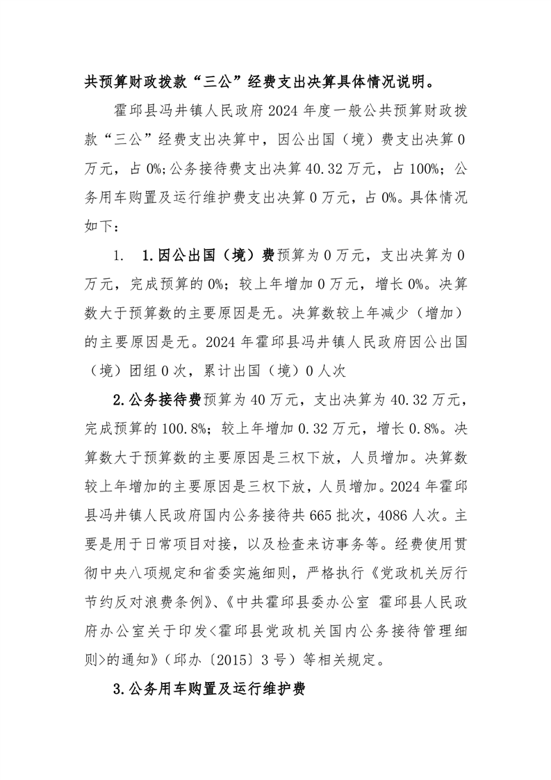 霍邱县冯井镇人民政府2024年度三公经费决算公开