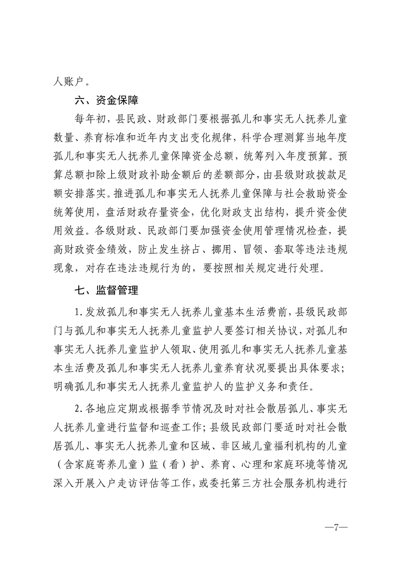 孤儿和事实无人抚养儿童基本生活保障资金管理和使用