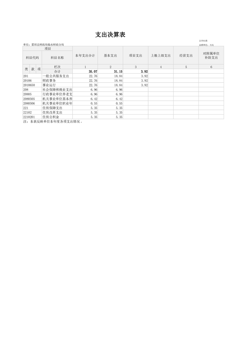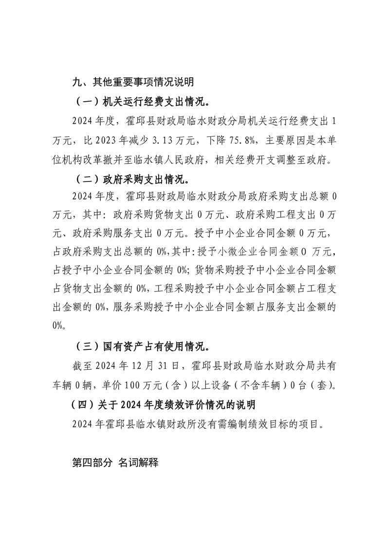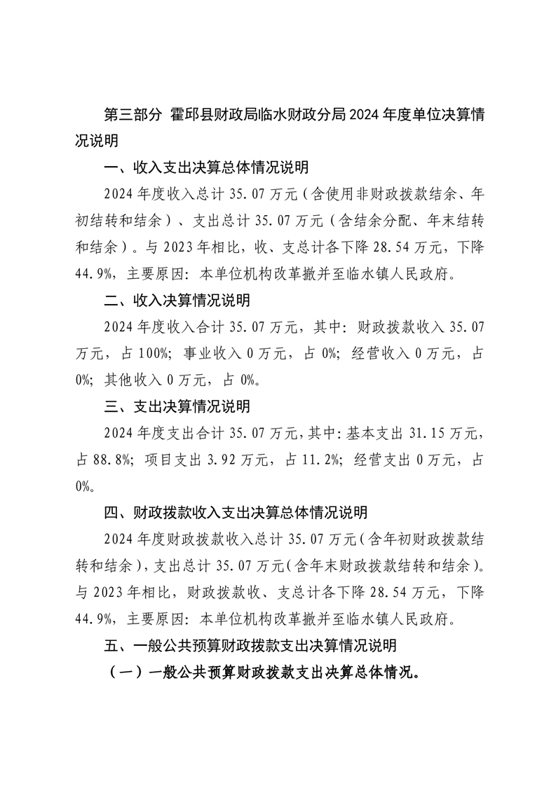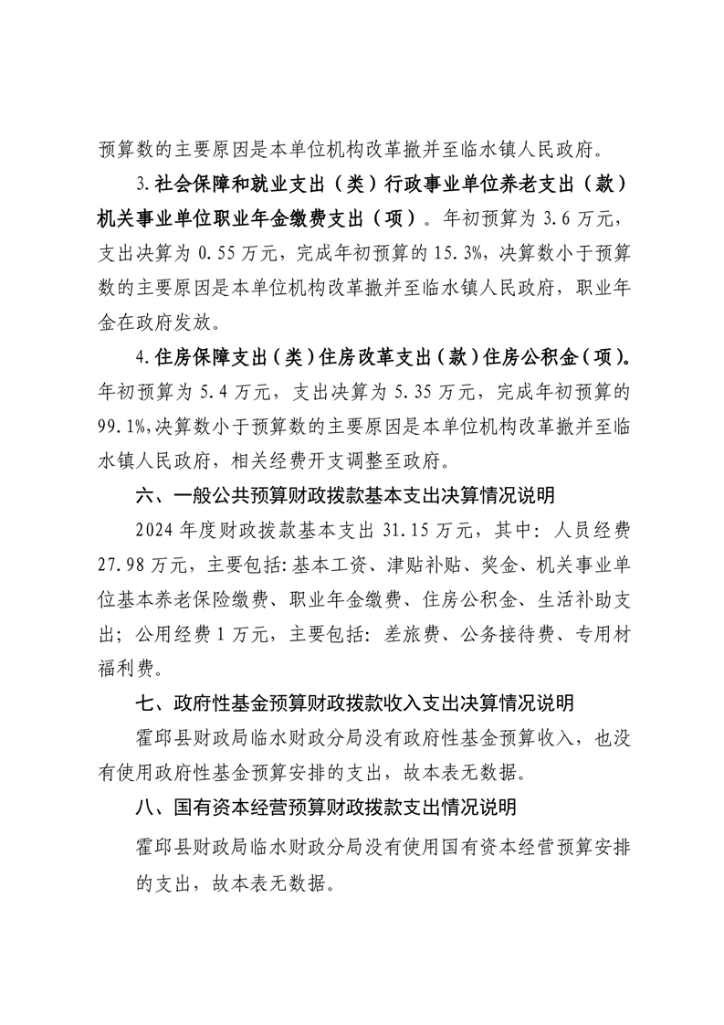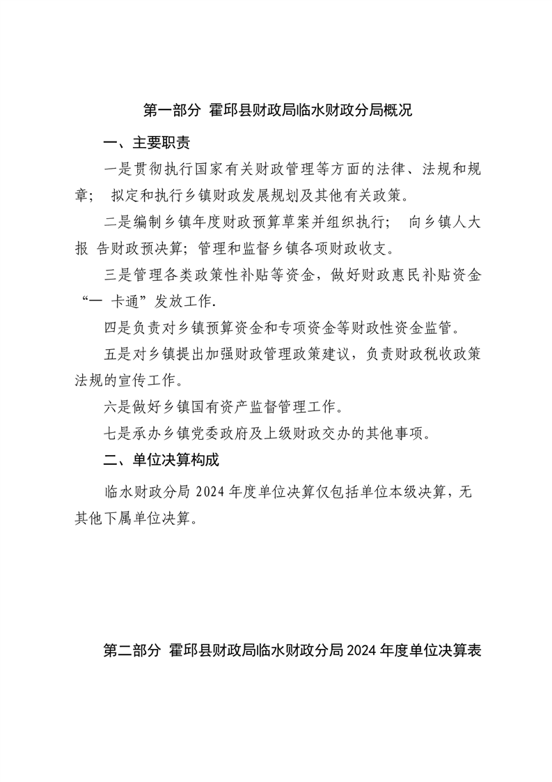 【财政决算】霍邱县财政局临水财政分局2024年度单位决算