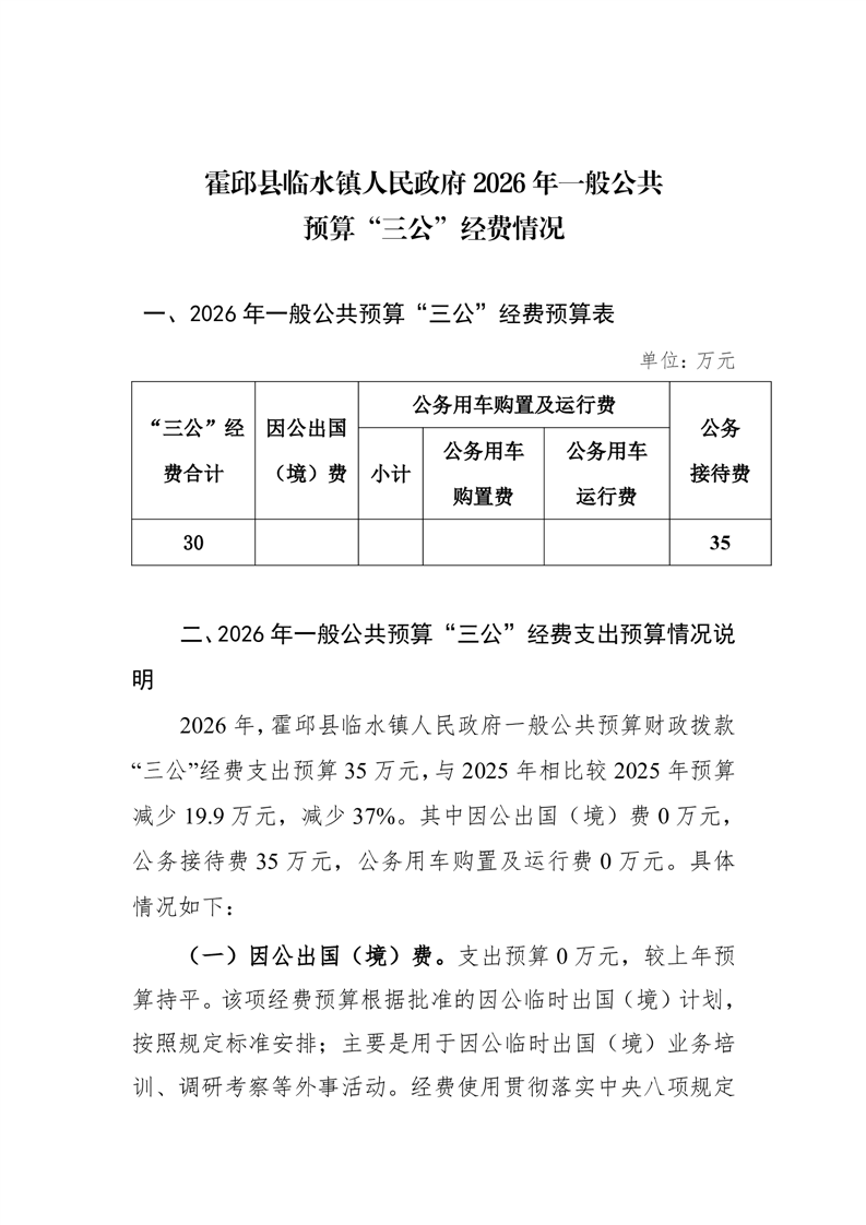 【三公经费】霍邱县临水镇人民政府2026年一般公共预算安排“三公”经费情况