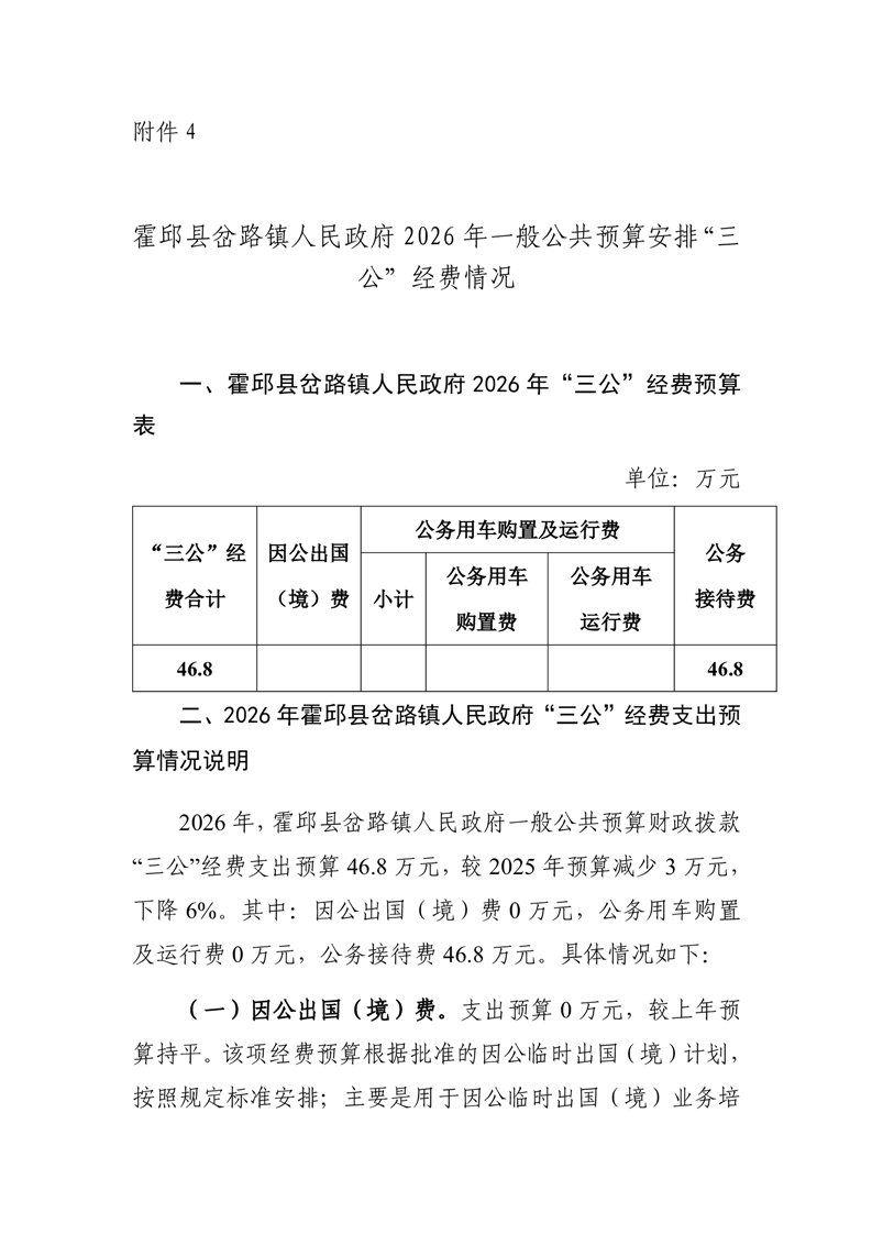 霍邱县岔路镇人民政府2026年一般公共预算安排“三公”经费预算