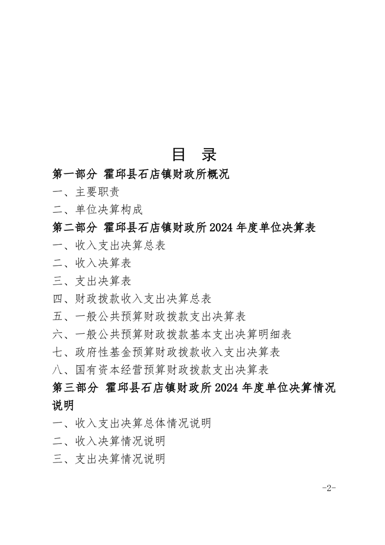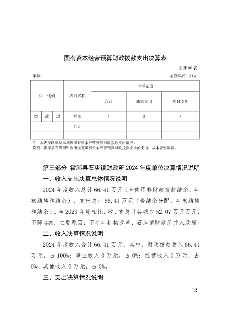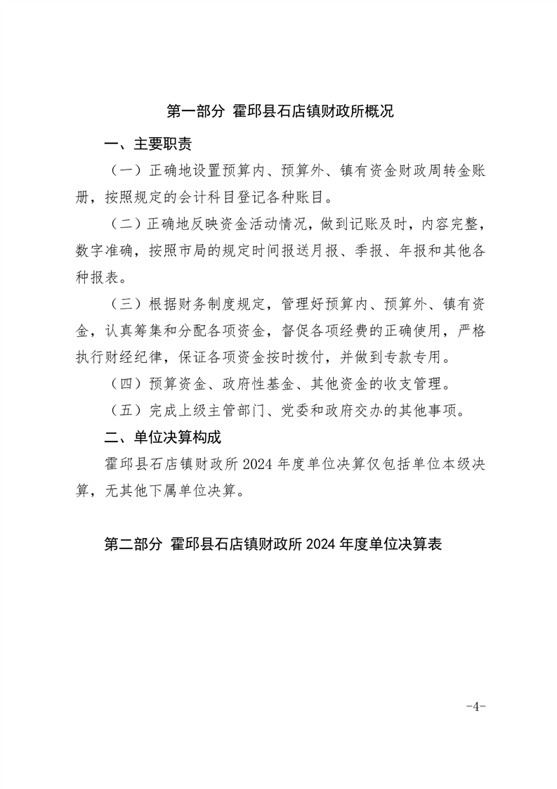 霍邱县石店镇财政所 2024 年度单位决算