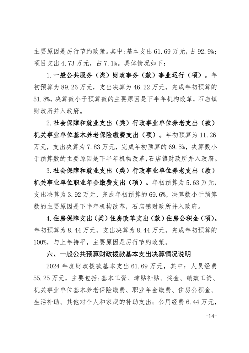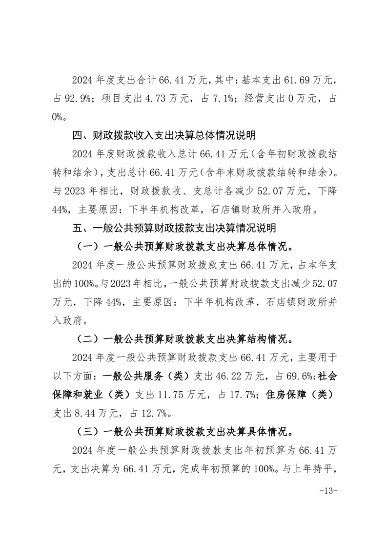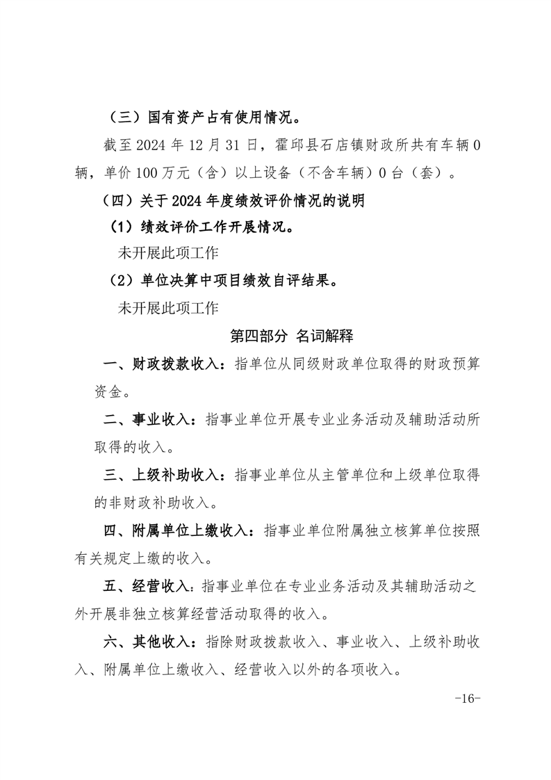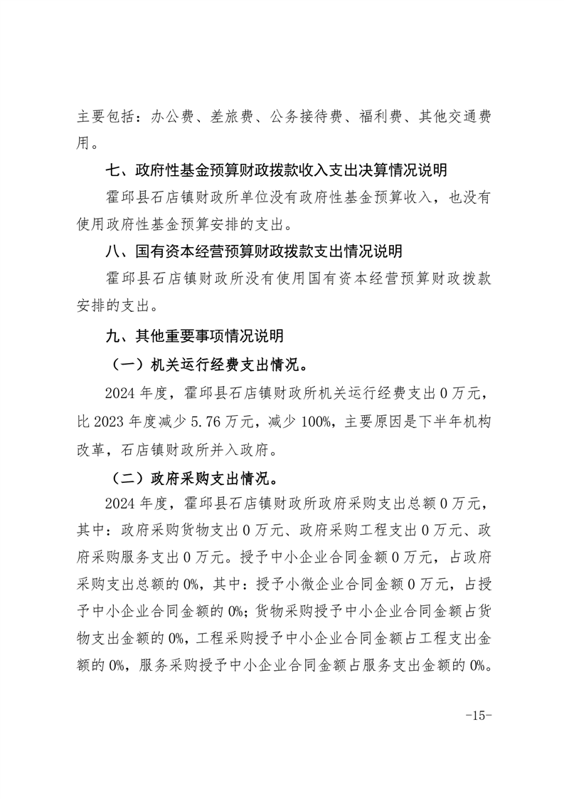 霍邱县石店镇财政所 2024 年度单位决算