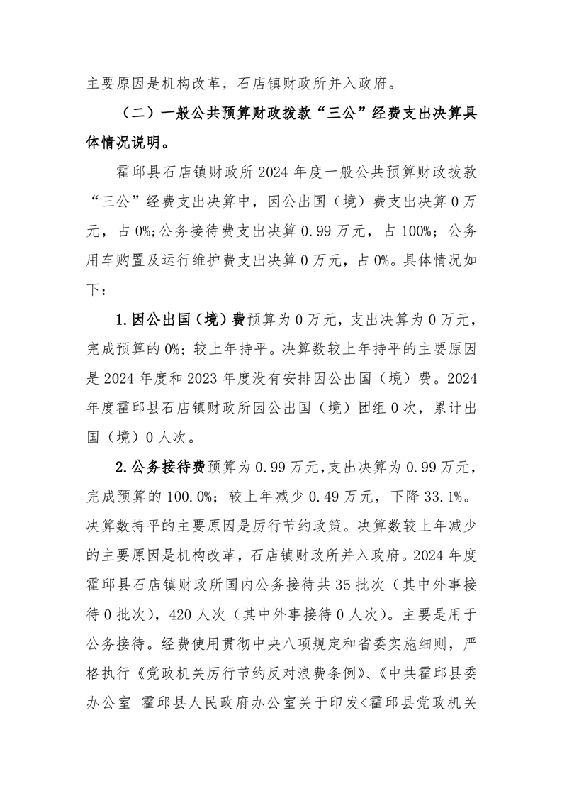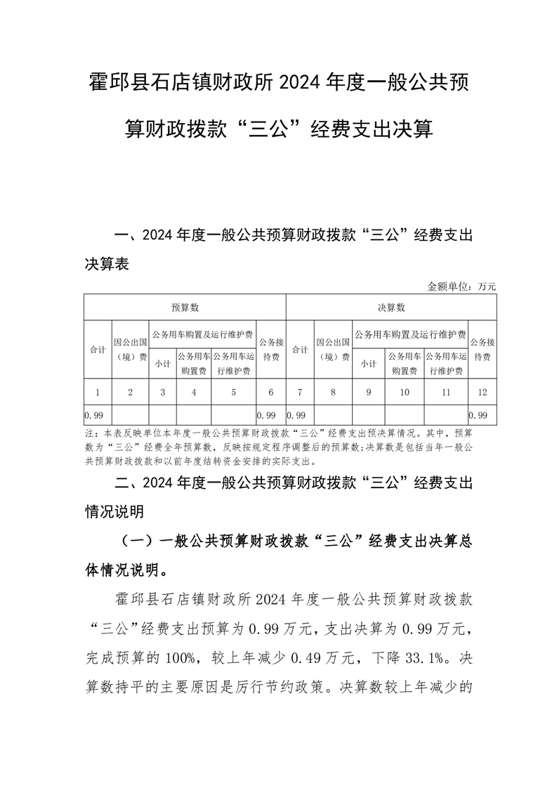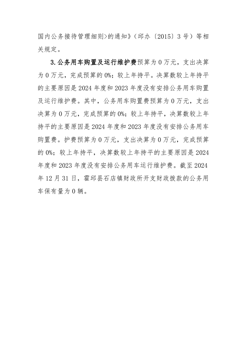 霍邱县石店镇财政所 2024 年度一般公共预算财政拨款“三公”经费支出决算